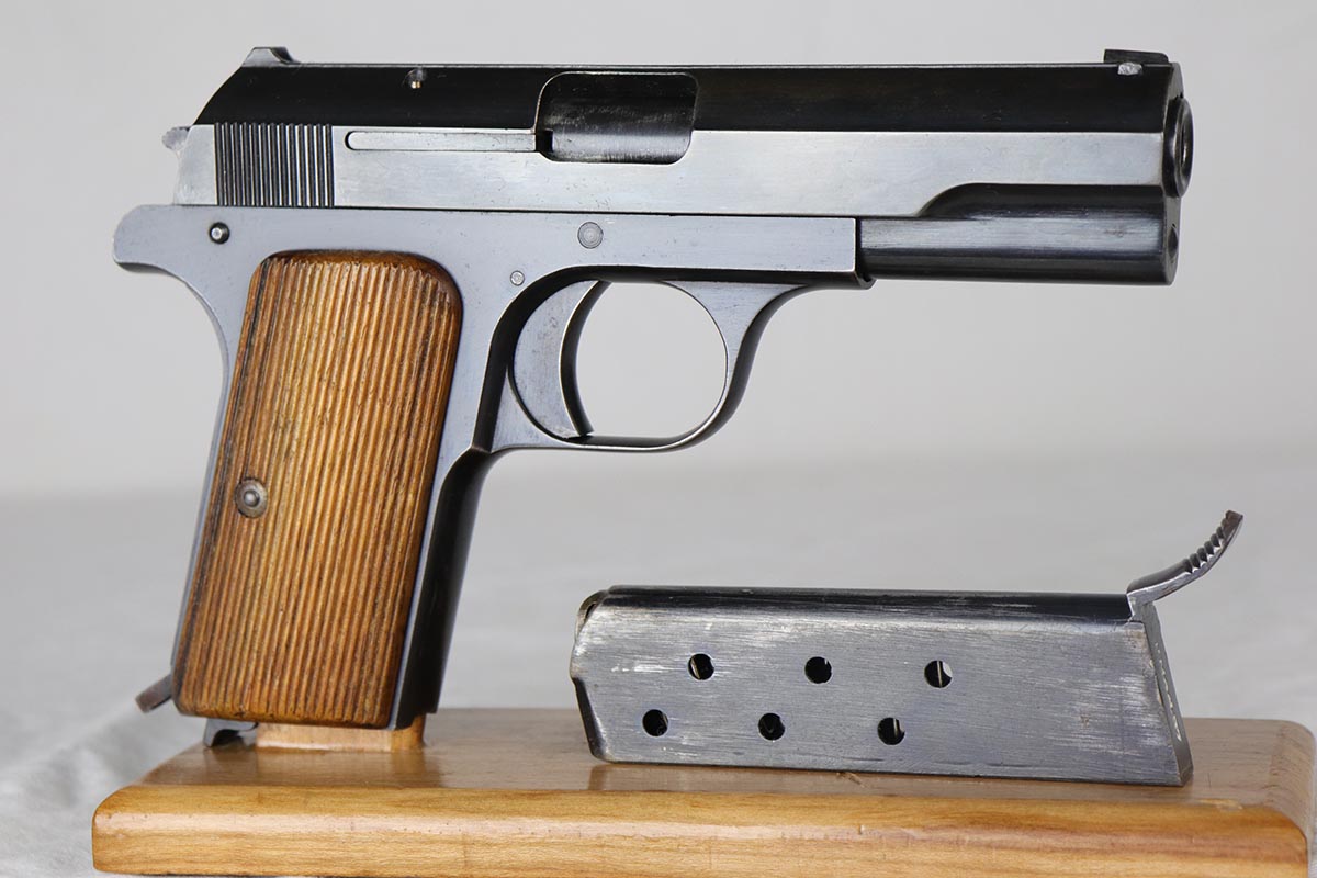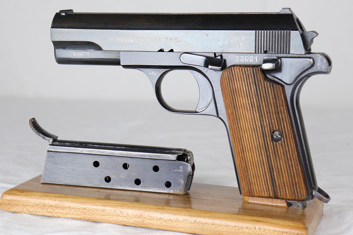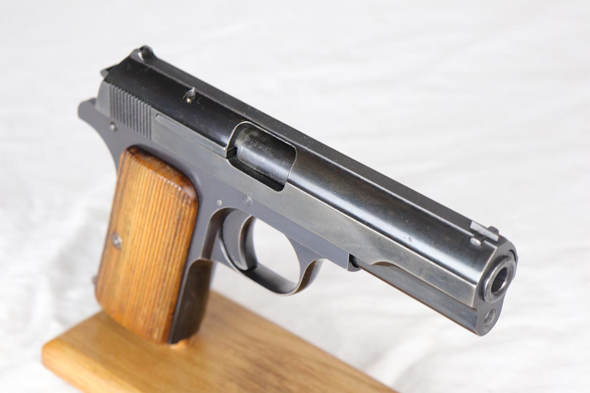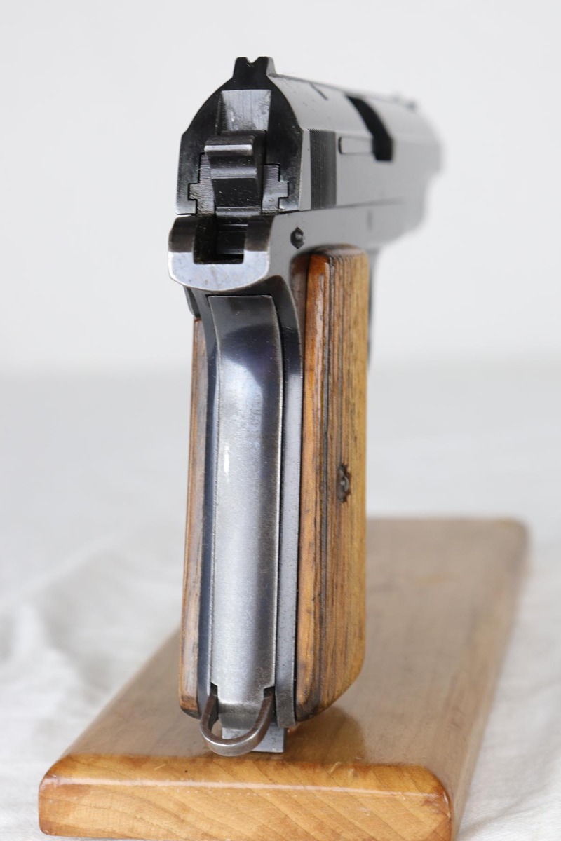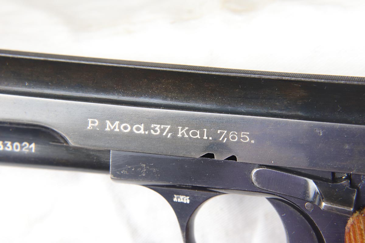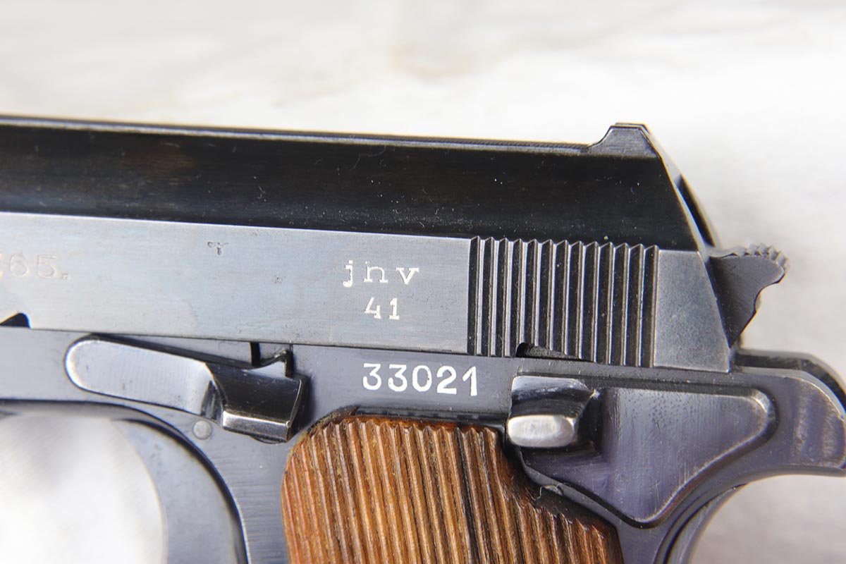 4/3/18 – This is an all matching and original Femaru model 37 pistol, manufactured in 1941 as part of a contract for the Nazi Luftwaffe.. The finish rates in the 94-95% with some thinning on the slide and a thin back strap. The magazine is matching and numbered to the pistol. The slide, frame and barrel are all matching. Excellent grip and bores.