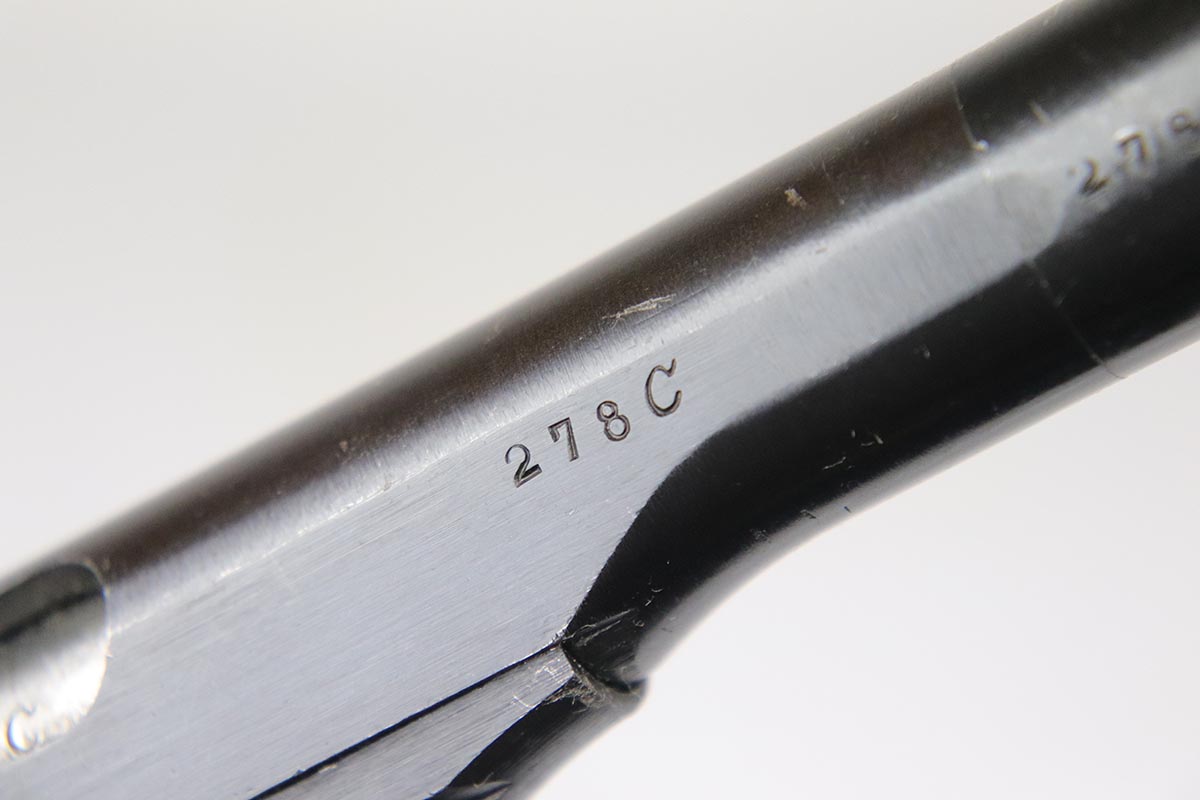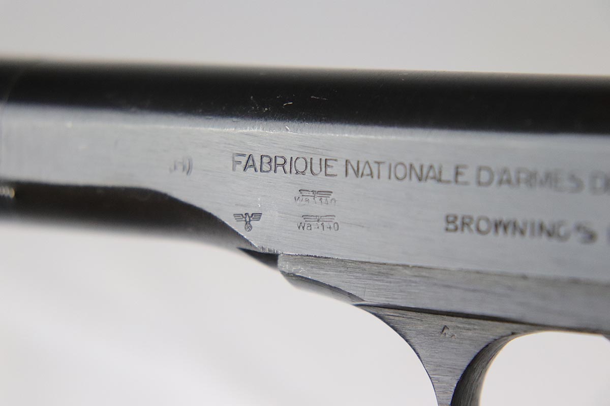 4/30/18 – This is an original FN model 1922 Browning pistol made in early 1944. The pistol has a 3 digit serial number with a “c” suffix. The pistol is all matching and original. Overall the pistol is excellent, nearly mint condition with very minimal muzzle and slide wear. The bore is mirror and minty as well. Comes with waffen WaA140 proofs, and a later commercial variation magazine (not waffen proofed, but FN proofed). Guaranteed original, authentic, and fully functional.
