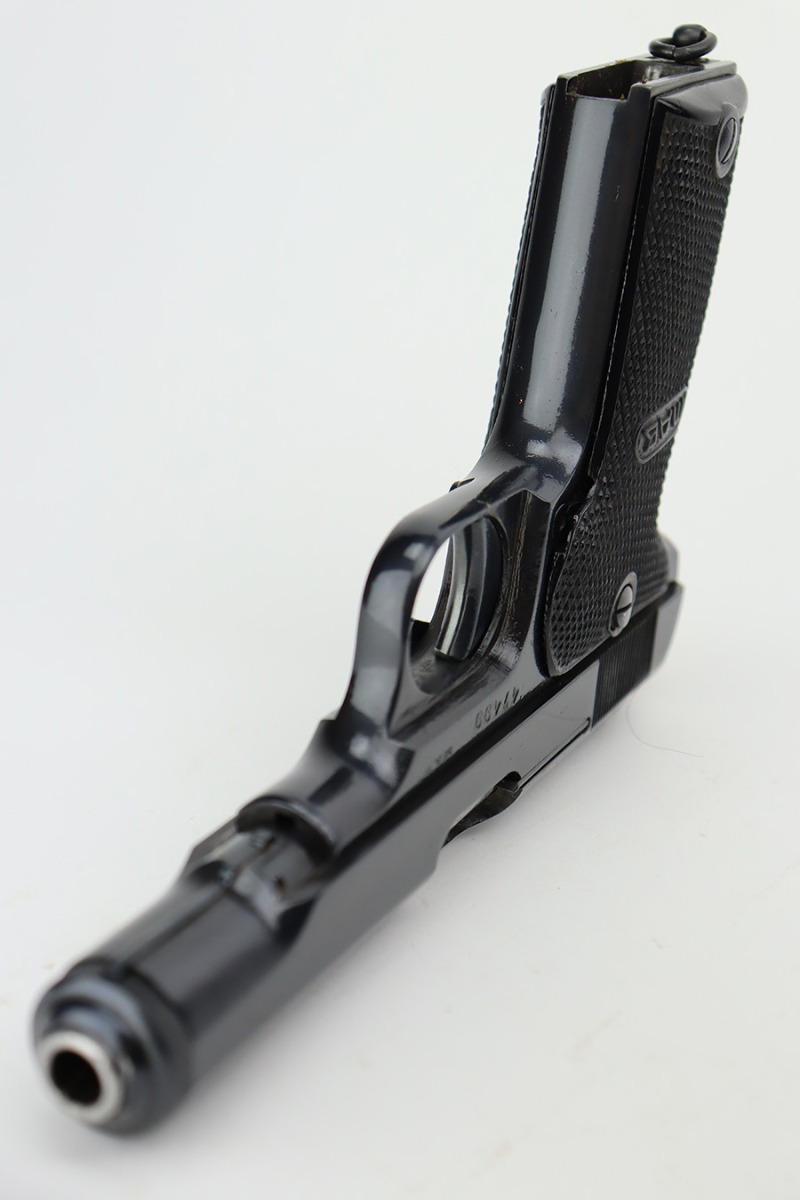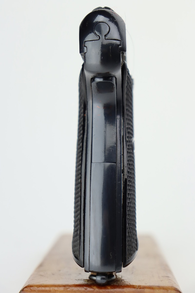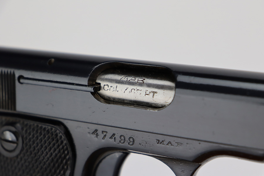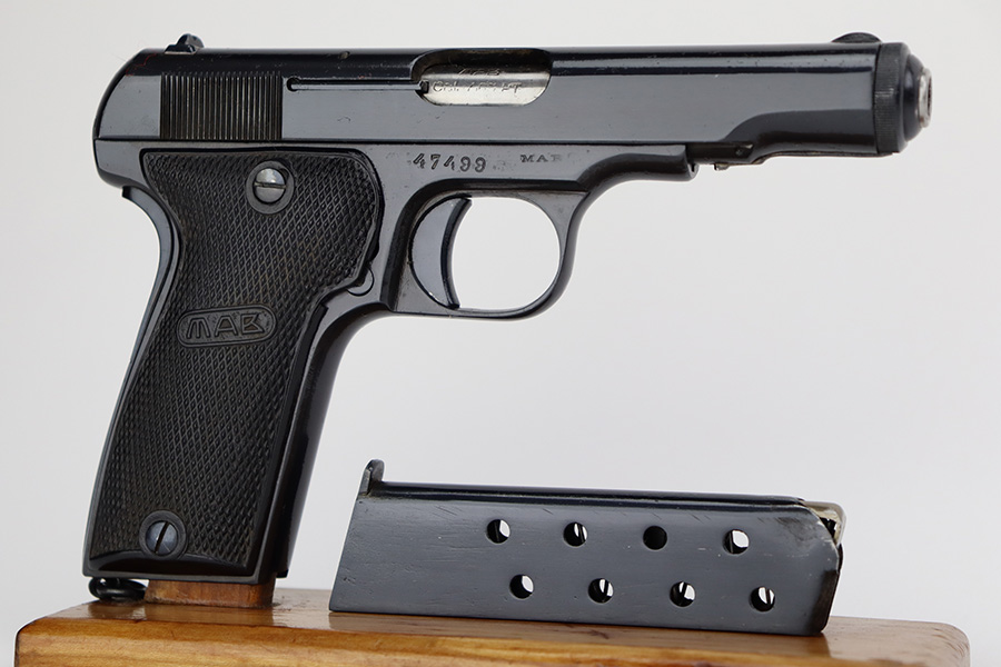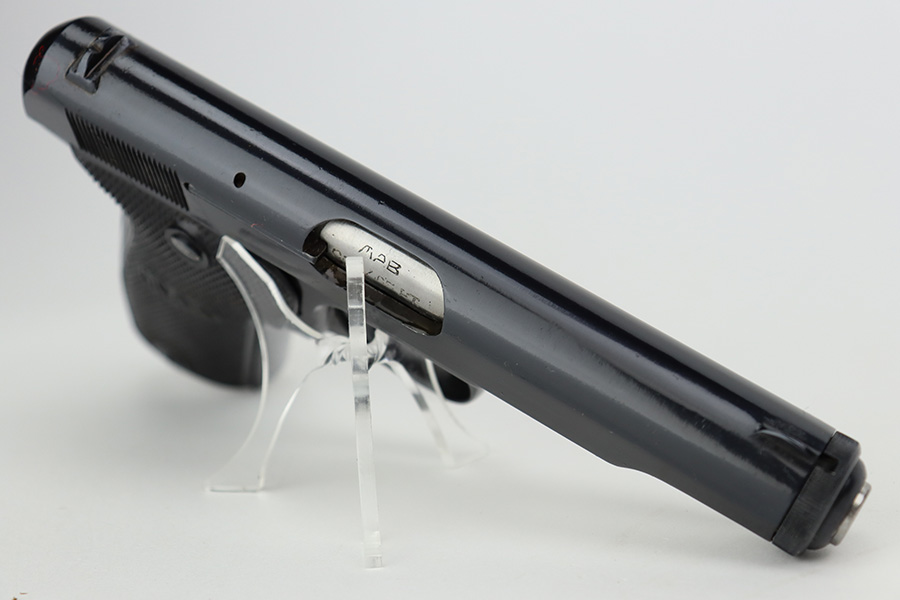 8/1/23 – This is a very nice example of a French MAB Model D issued to the Nazi military during WW2. It is all matching and has the proper “Waffen 251” military acceptance proof on the right side of the frame. This one has been completely restored and refinished with virtually no actual bluing loss. Fitted with excellent period-correct black bakelite grips. Comes with one proper magazine. Excellent bore with strong rifling.