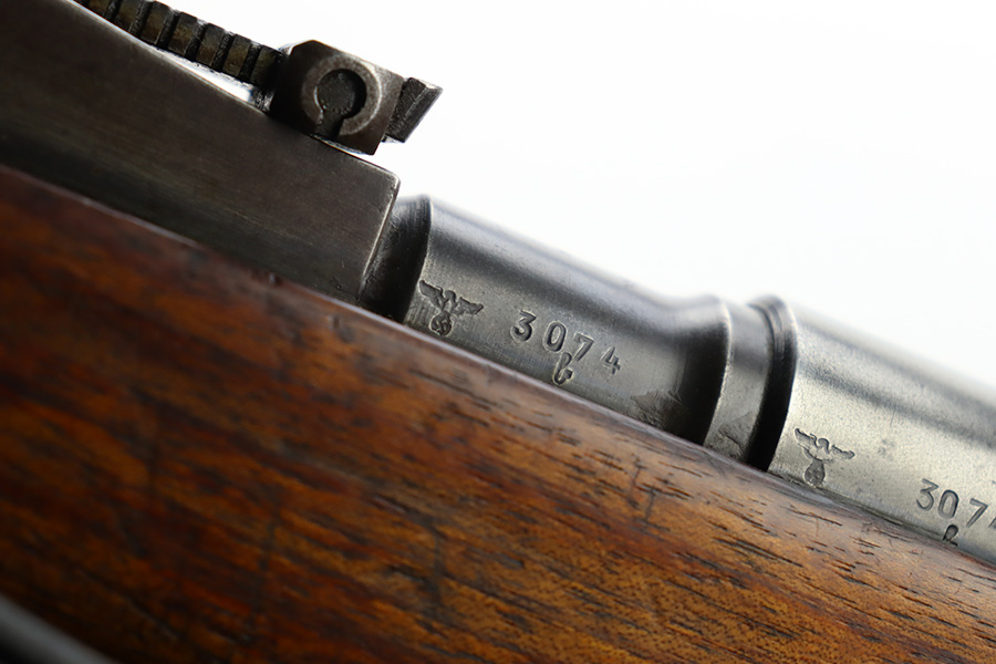 12/4/23 – This is a nice example of a G98/40 that was used by the German Army during WW2. When Germany occupied Hungary, they converted the manufacturing lines of Hungarian 35m to rifles chambered in 8mm Mauser. The rifle has a Mannlicher action but with K98k features. The metal finish on the rifle retains most of its original bluing but plenty of wear throughout. The bore is fully frosted over but has good rifling. The stock has been sanded lightly and the marks are still slightly visible. The rifle is mismatched throughout. Comes with a dark Mauser K98k style sling.
