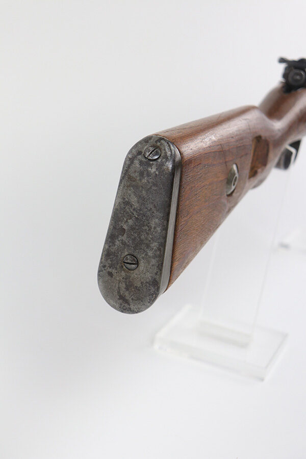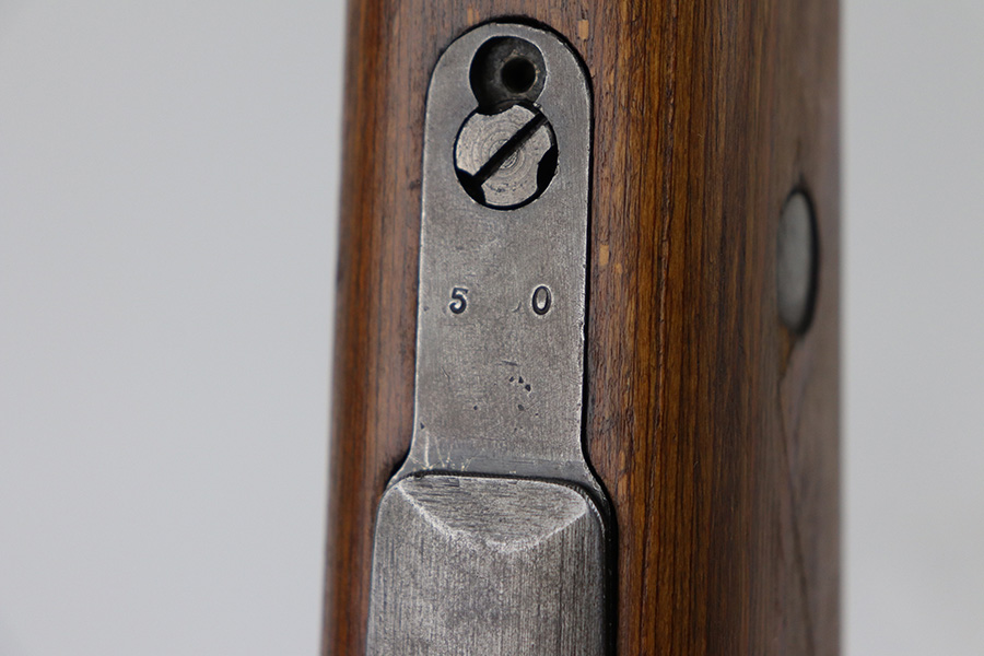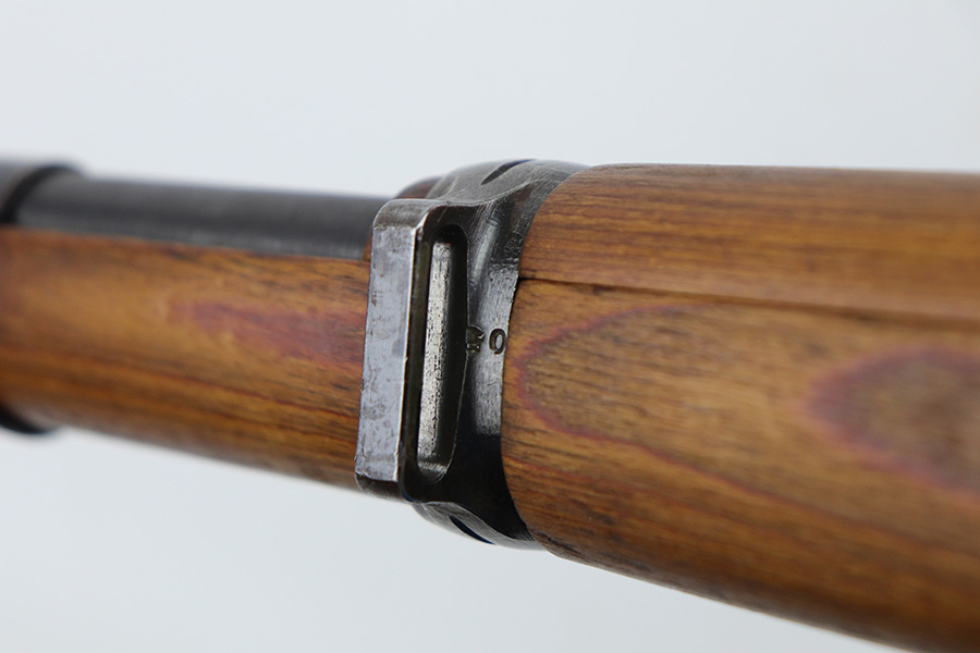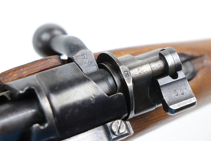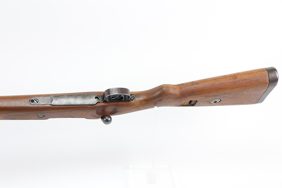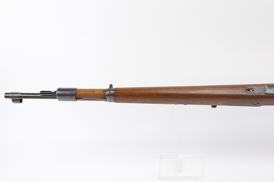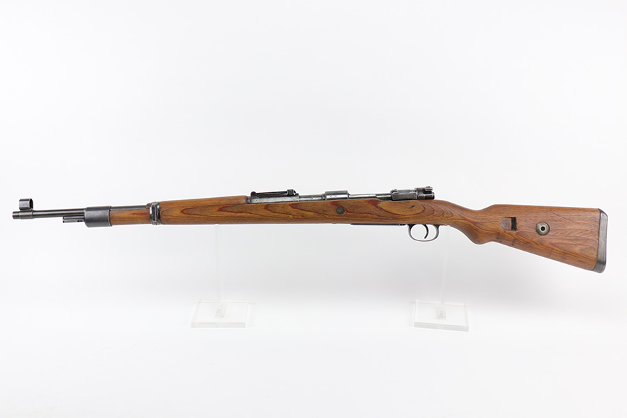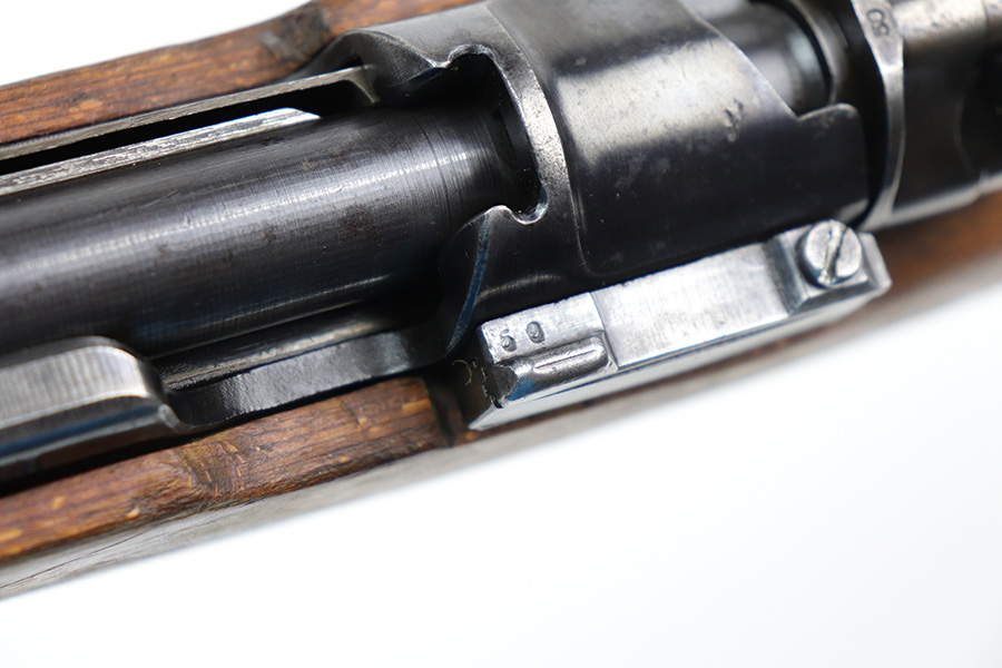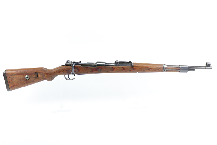 9/16/21 – This is a very nice example of a JP Sauer K98 rifle issued to the Nazi military in 1943. It is all matching, has the proper waffen military proofs throughout, and features the Sauer “CE 43” factory code on the receiver. The stock has no visible numbers but looks like it has an extremely faint waffen eagle H proof on the right side of the butt stock. The receiver area and rear barrel band have lost most of their finish. The barrel, front band, floor plate, and trigger group have most of their finish. There is minor wear around the muzzle and spotty oxidation throughout. Light brown patina throughout. The stock is nice but has some light scratches here and there. It was likely lightly sanded. The rifling in the bore is a bit worn with spotty oxidation and minor pitting throughout.