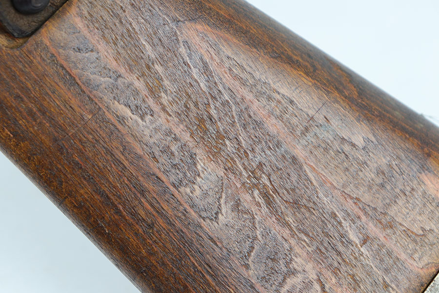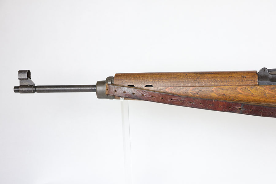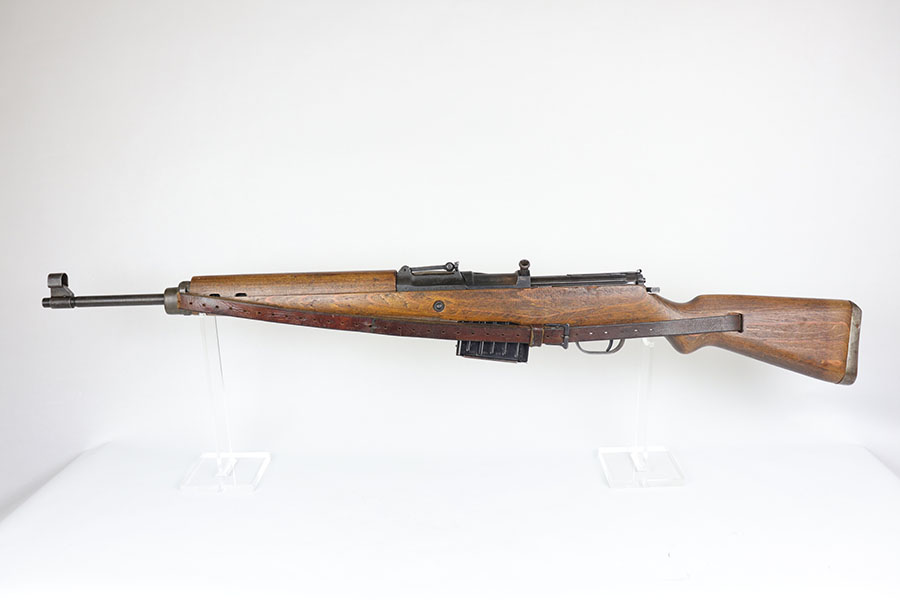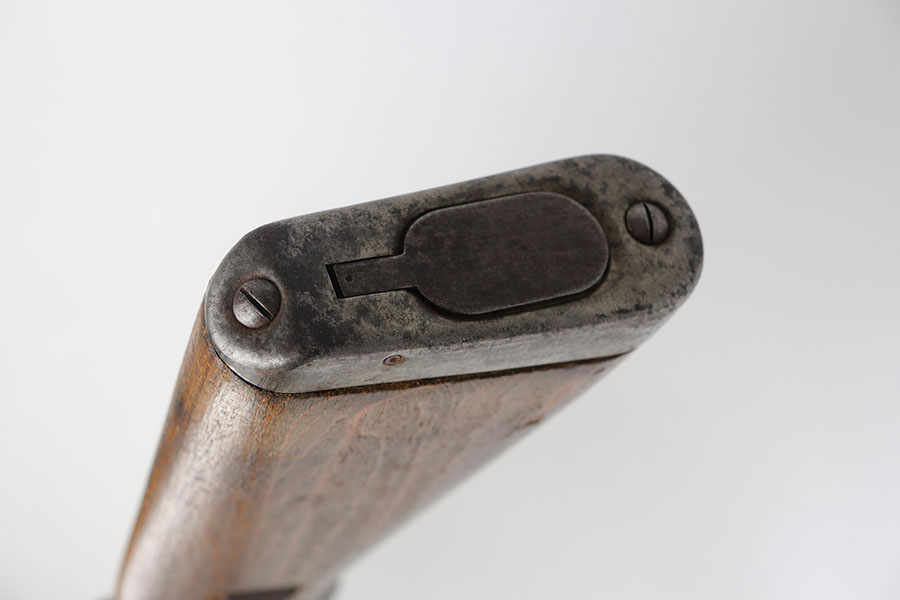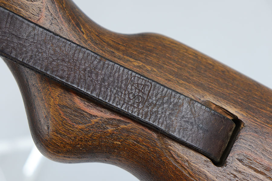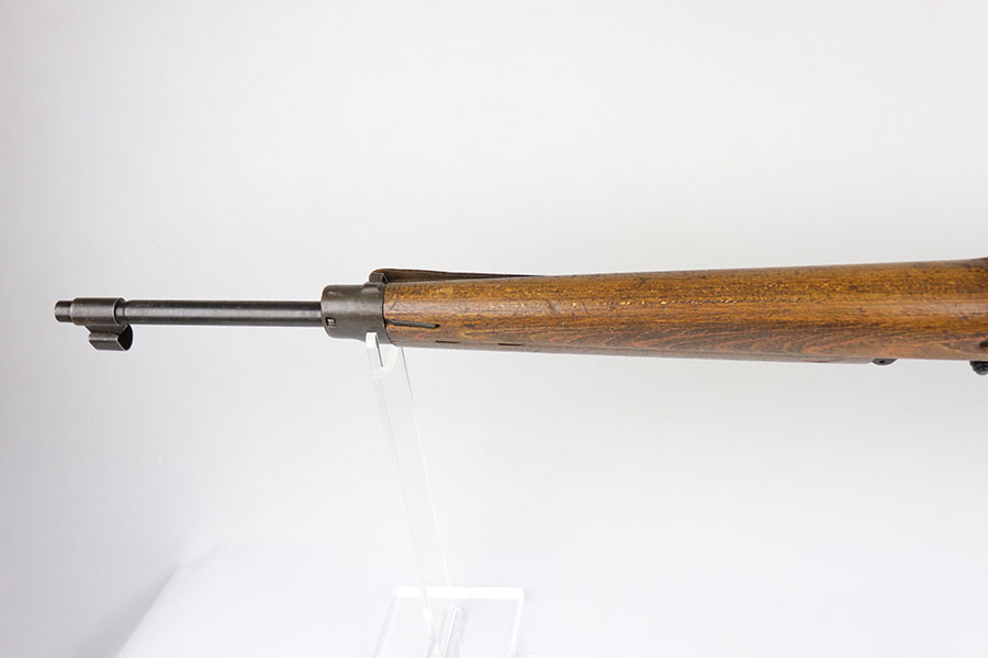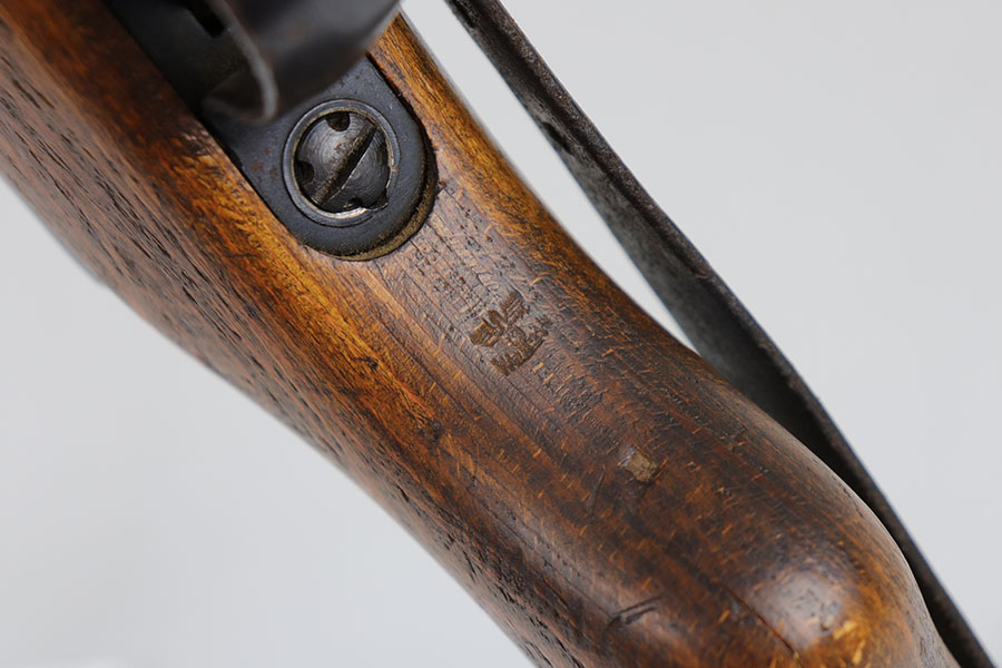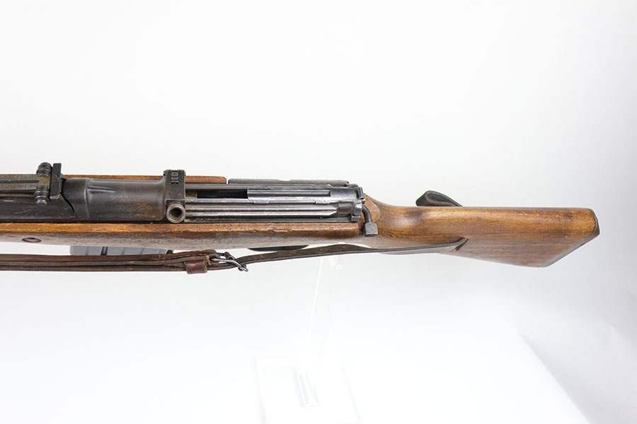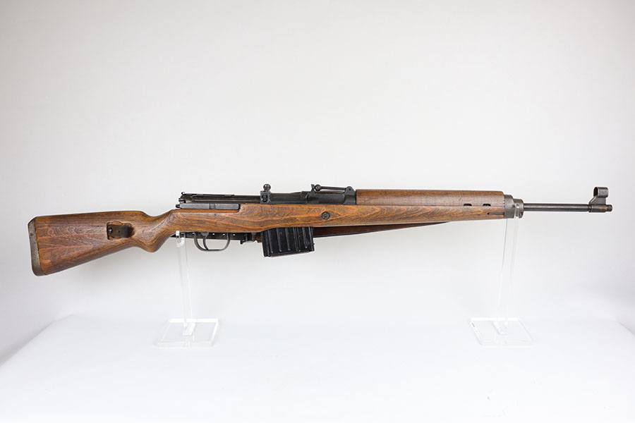 7/10/20 – This is the most uncommon variation of the German G43(K43) rifle, made in the final months of the war, around February-March of 1945. It was made at the Berliner Lubecker factory, which was assigned a ‘qve’ code in 1945 instead of the previous ‘bcd’ code. With a total of about 60,000 rifles made, this variation is one of the least encountered by the collectors and exhibits the late war rough machining and bluing. The gun is all original and matching, including the receiver, bolt and the buttstock. The stock has waffenamts on the wrist and right side, and serial is fairly clear on the underside. The blue doesn’t show much wear, mainly on front sight and trigger group, but the finish and machining are rough throughout. There is a crack along the bottom of the butt stock. Terrific bore. Magazine is ‘K43’ marked and ‘aye’ maker marked. Original sight hood but postwar sling present.