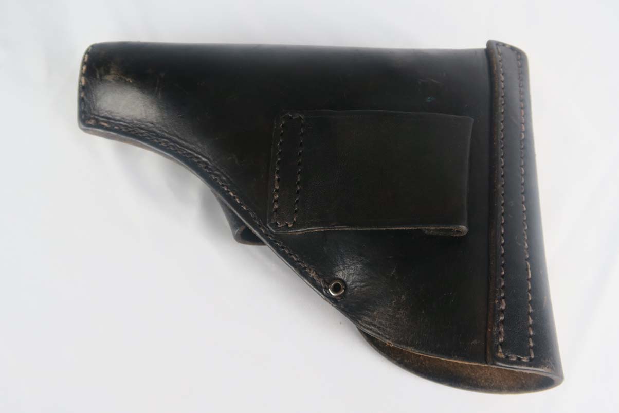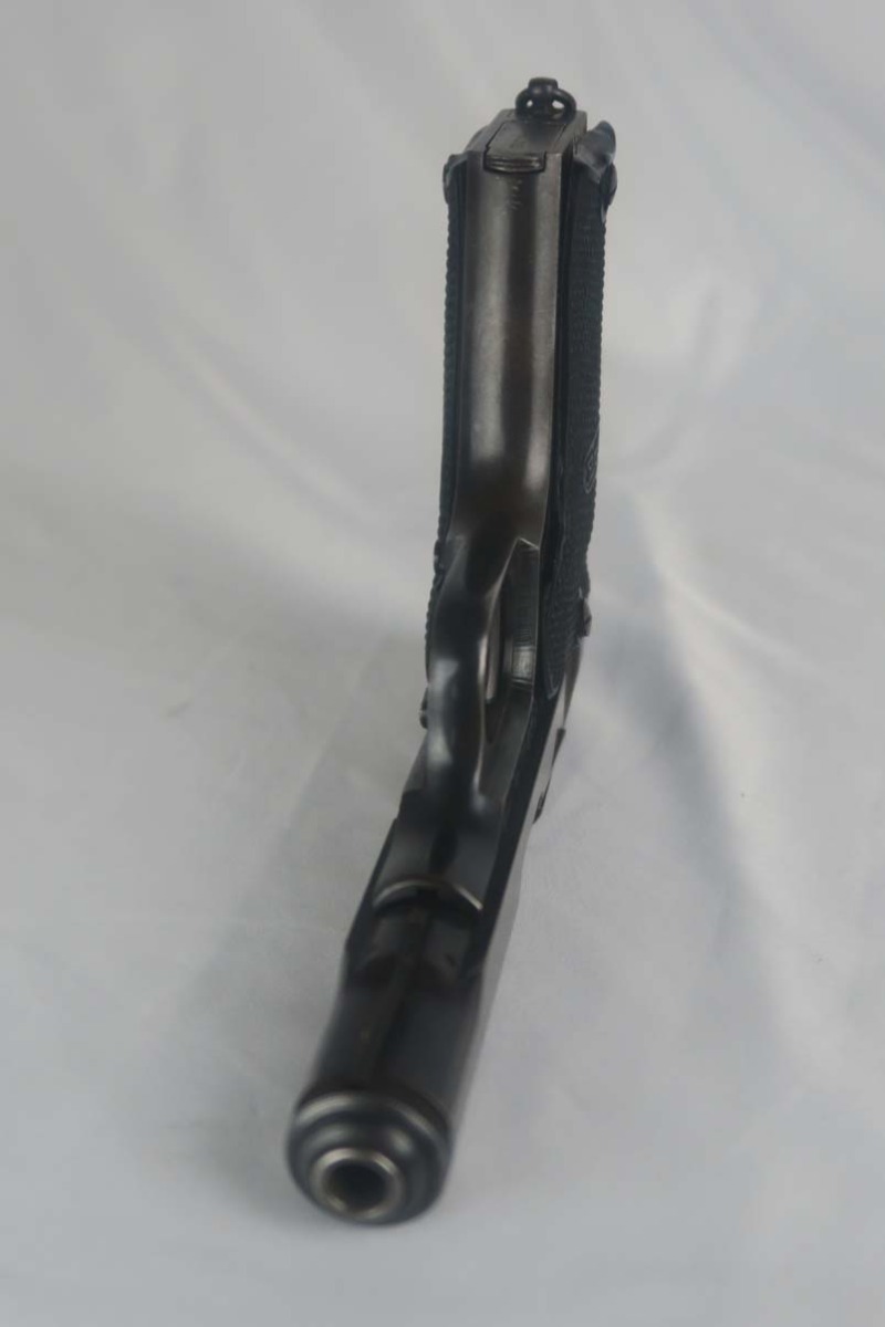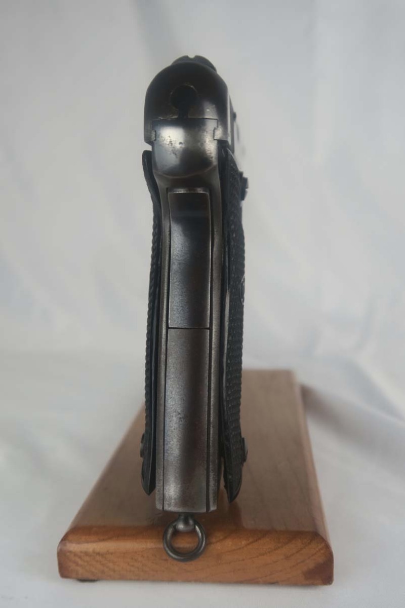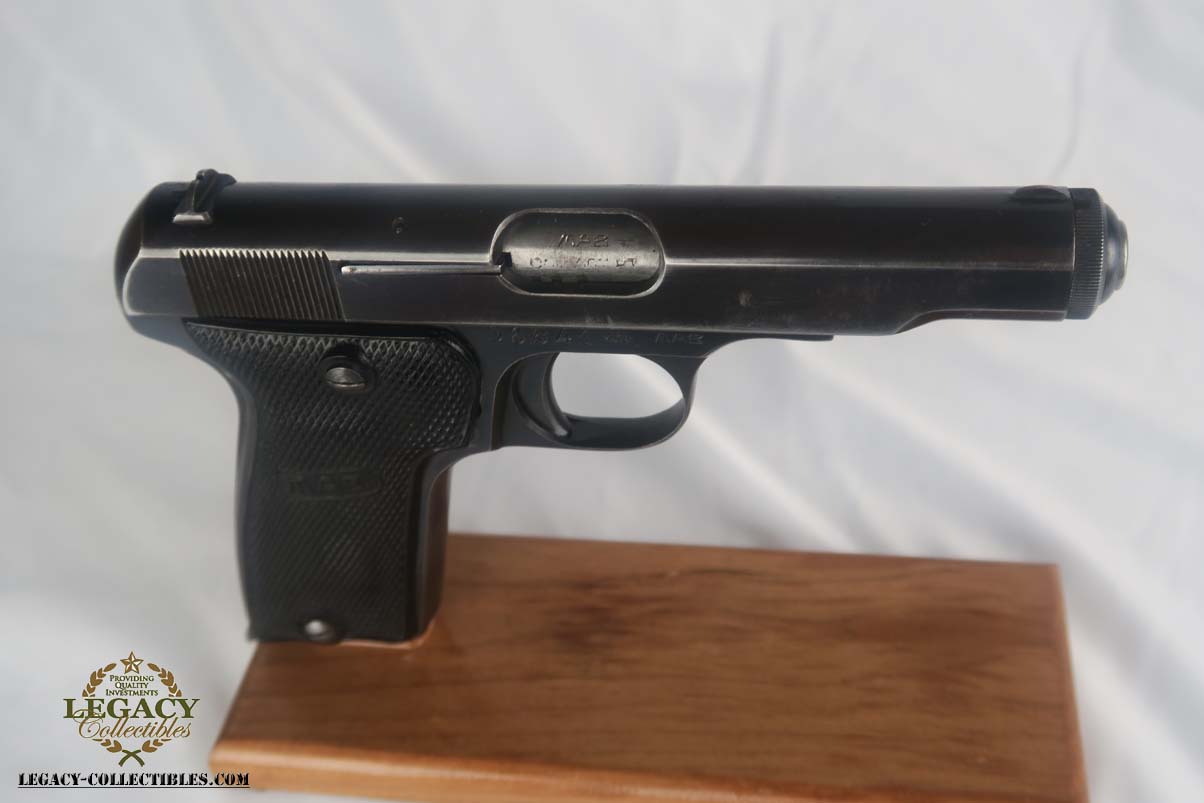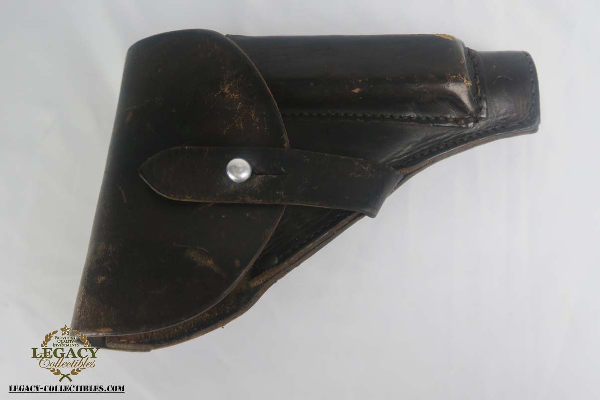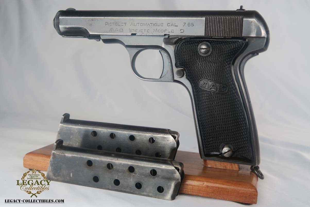 8/16/17 – This is a Nazi-issued French MAB model D rig, with correct holster and spare magazine.  The model D was produced by Manufacture D’Armes Des Bayonne for the German Army after the June 26th occupation of France.  Pistols in this serial range were E/WaA251 stamped.  This one has about 85% of its original finish left, with evenly spread thinning and patina throughout the straps.  The holster is in good condition, and properly E/WaAD20 proofed.  Magazines and grips are correct, but both grip panels have cracks that appear to have come from someone screwing the screws in too tight.  Nice bore, just a little cloudy.