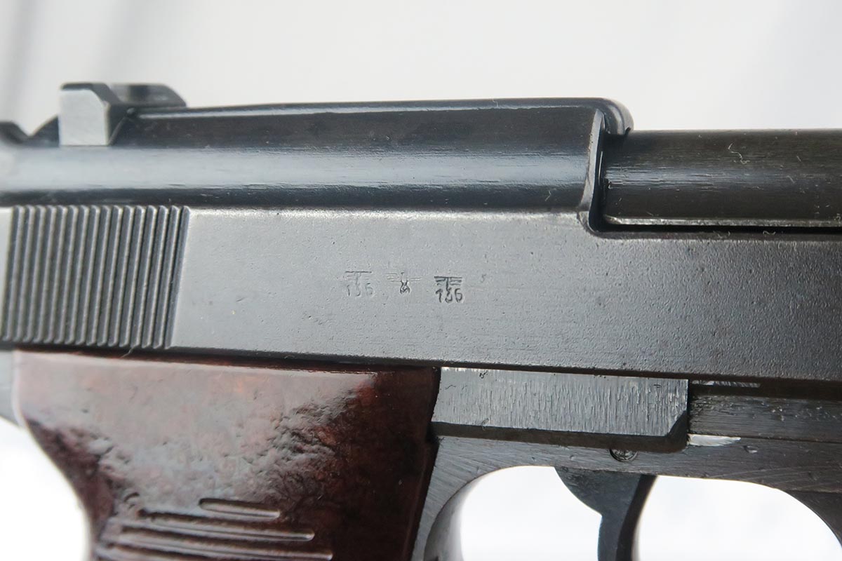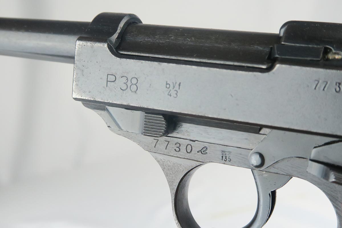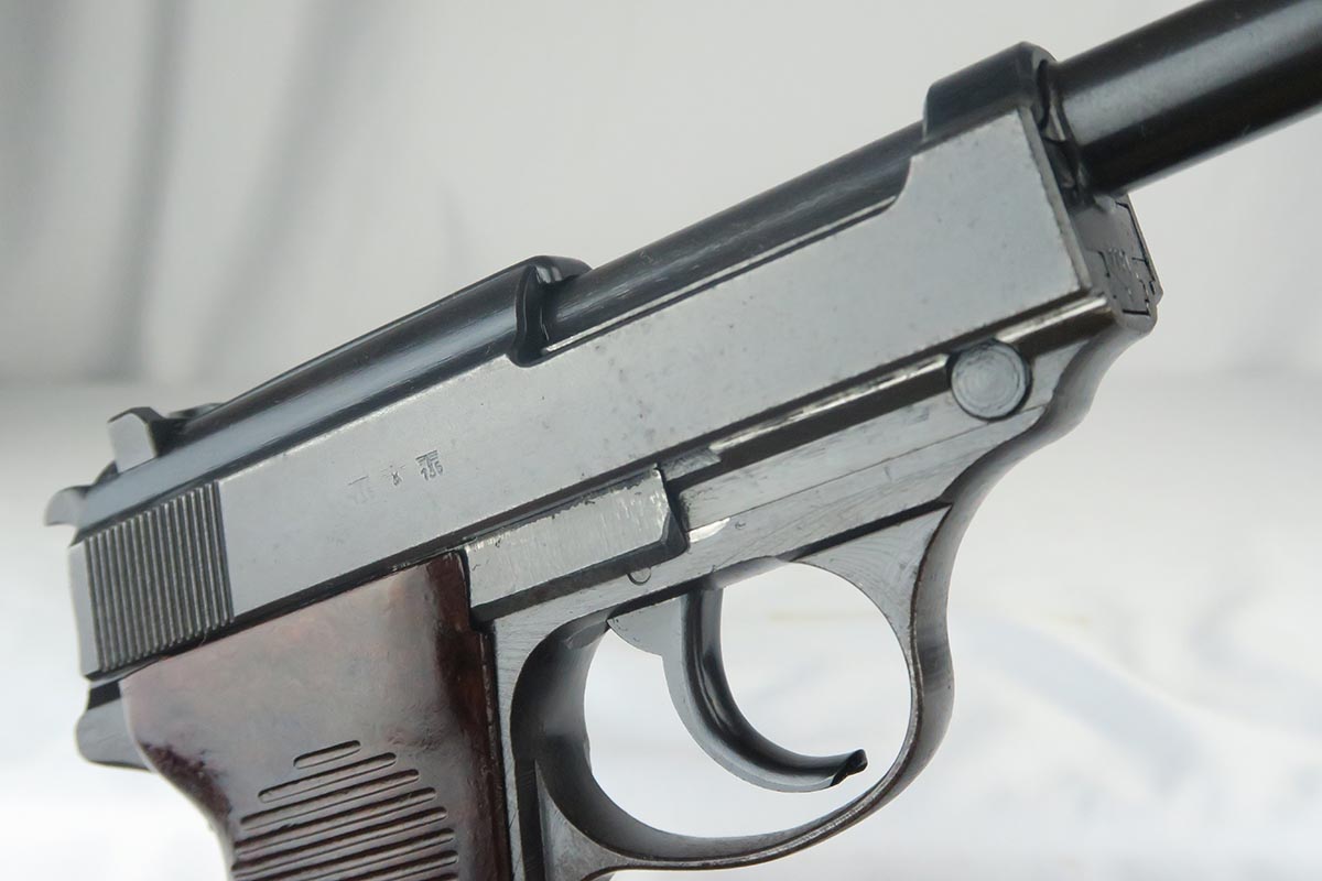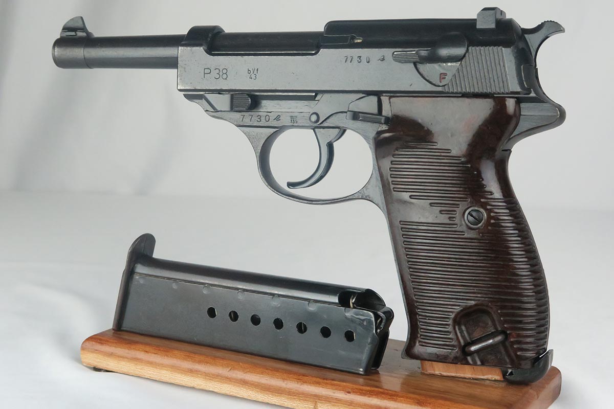 1/10/18 – This is an excellent, all matching Mauser P.38 from 1943. It was issued to the German Army during the war, but still retains about 98% of its original dust blue finish. Beautiful reddish grips. Walther magazine. Minty bore.