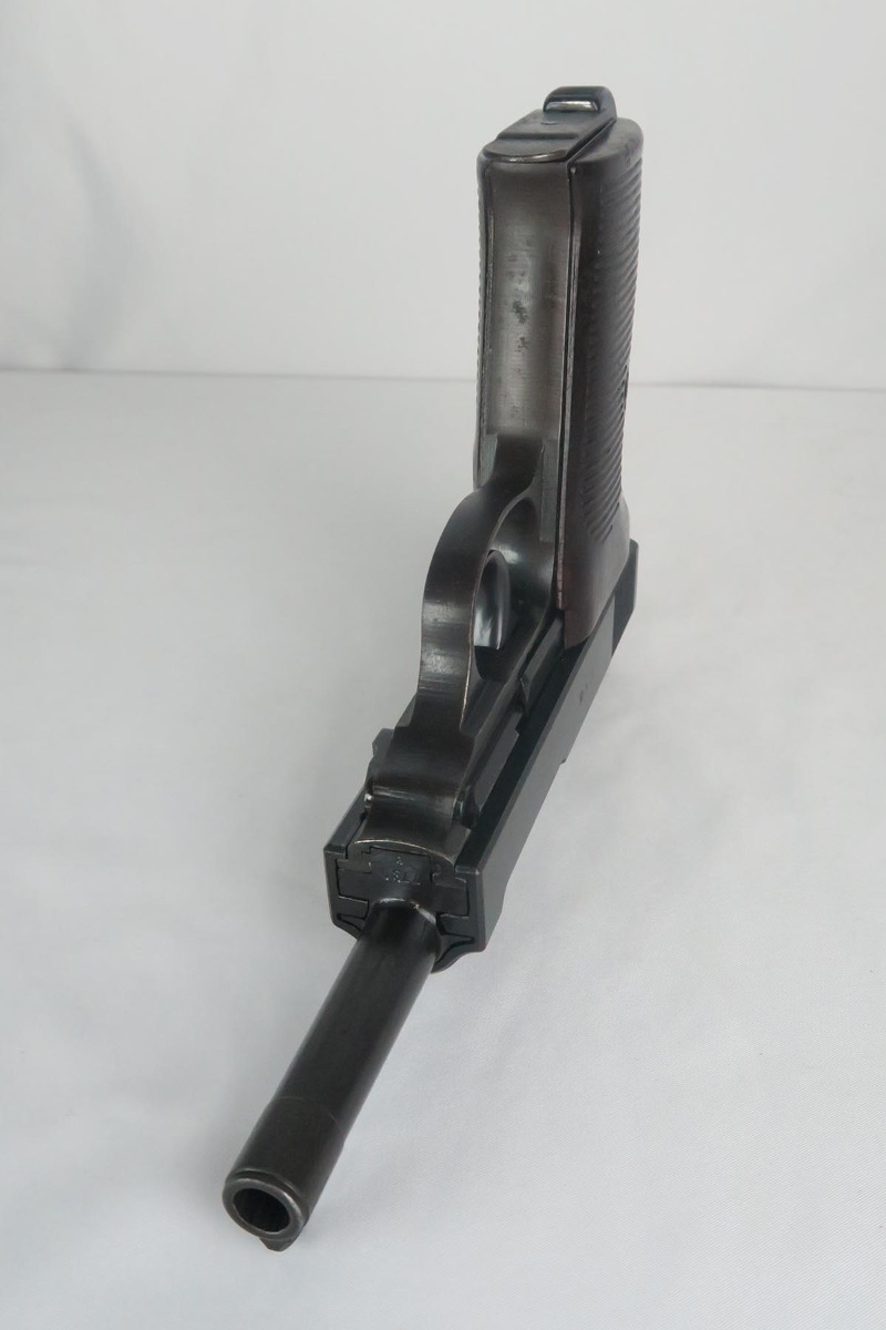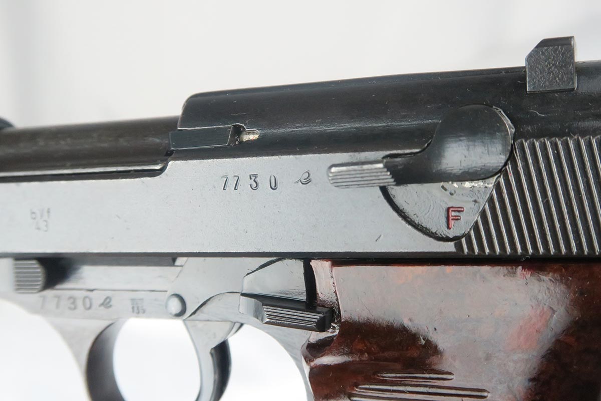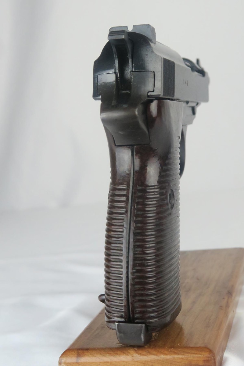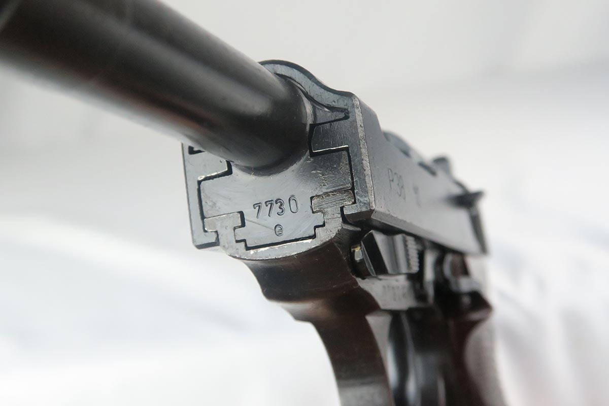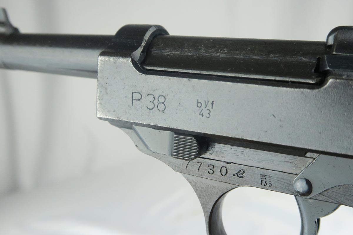 1/10/18 – This is an excellent, all matching Mauser P.38 from 1943. It was issued to the German Army during the war, but still retains about 98% of its original dust blue finish. Beautiful reddish grips. Walther magazine. Minty bore.