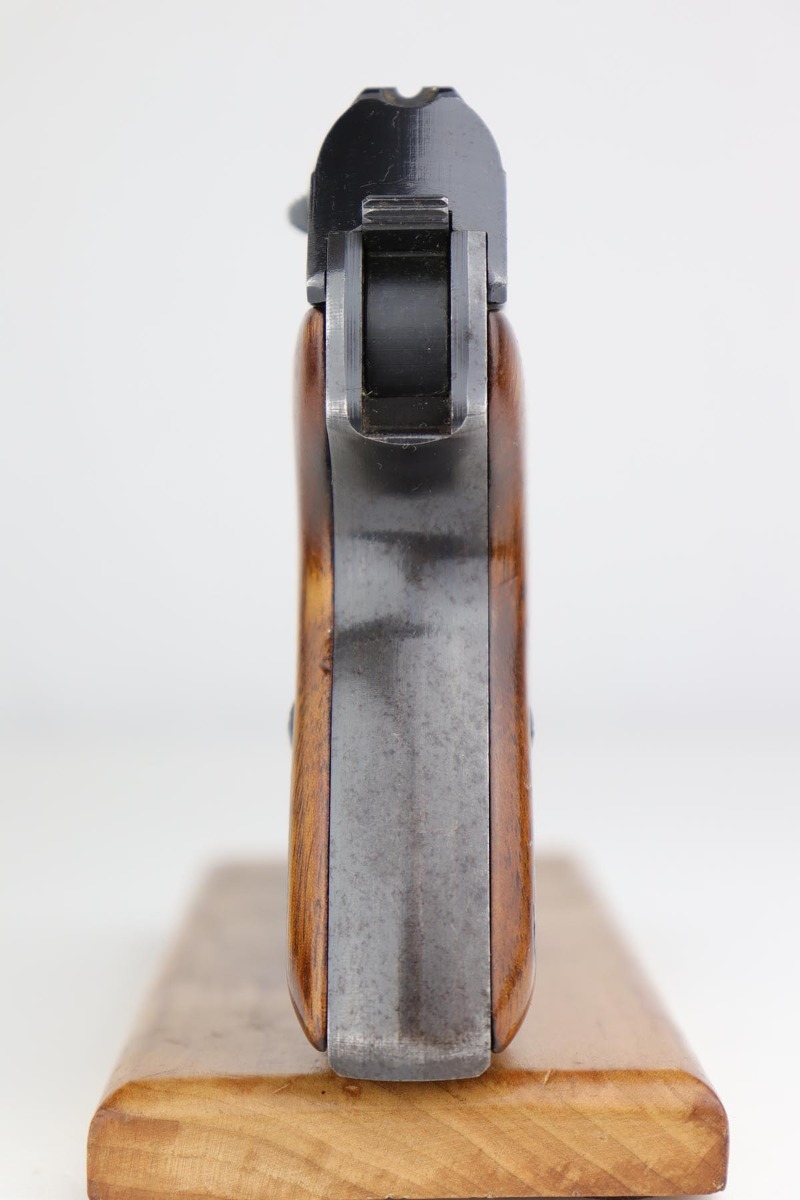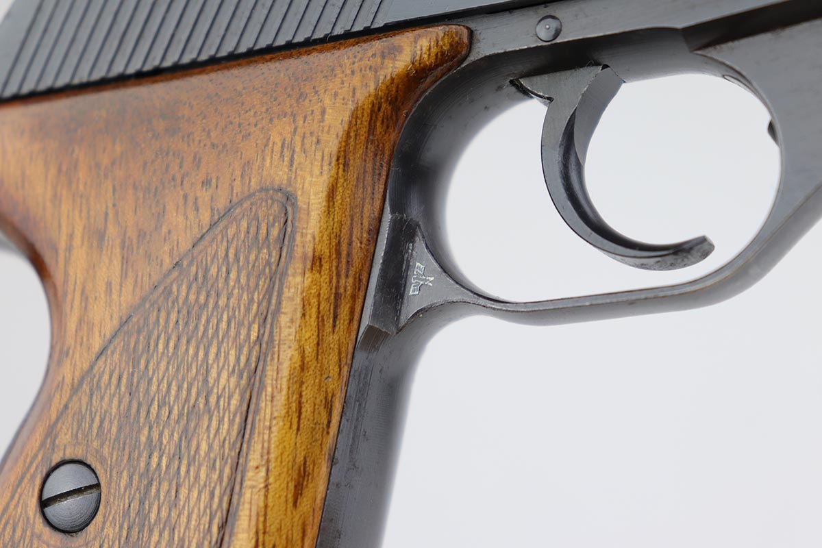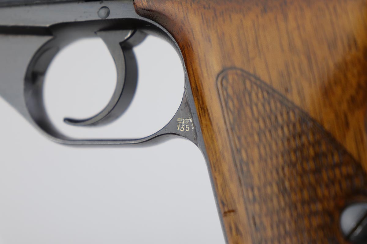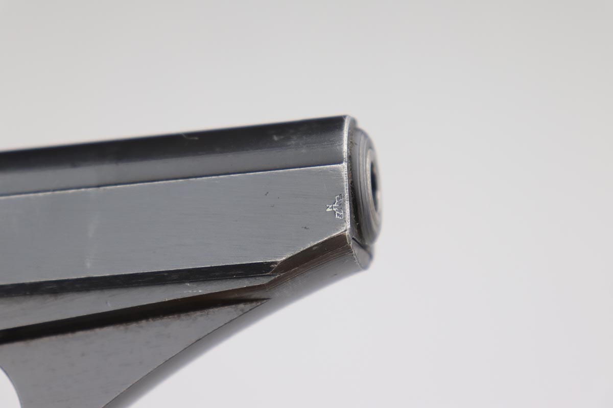 6/21/19 – This is a very nice Mauser HSc that was made in 1943 for the German military. Frame is marked E/135 to denote Army issue. Original blue rates at about 97% with minor muzzle wear and some finish loss on the bottom edge of the back strap. Minty bore and excellent grips. Blank-bottom magazine.