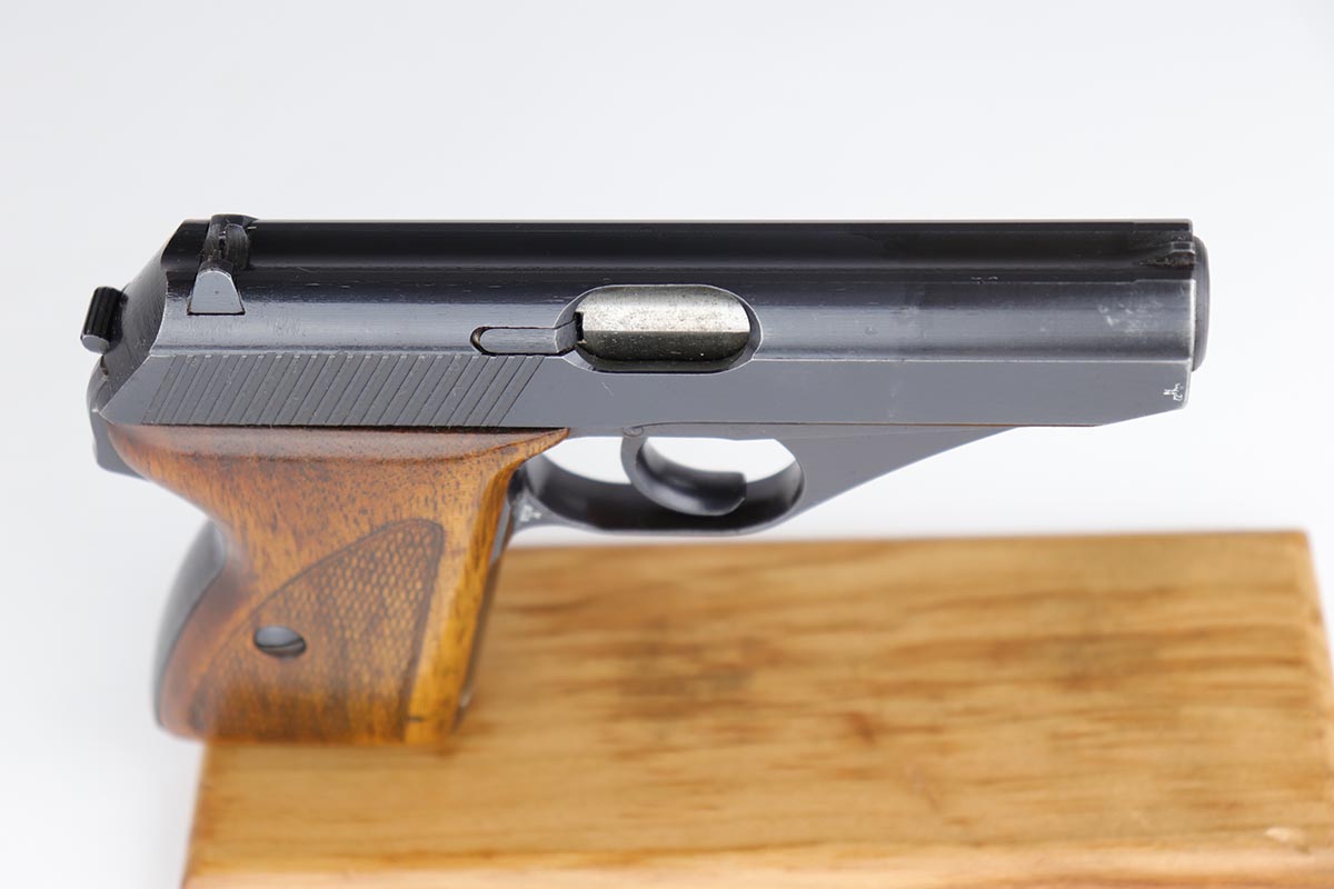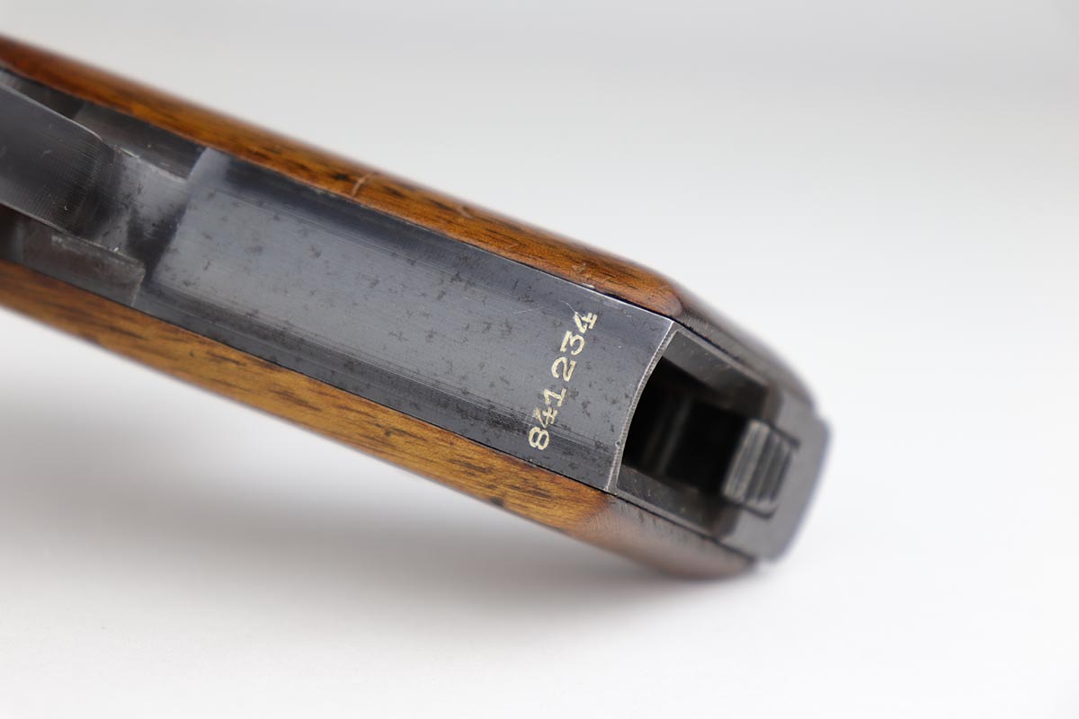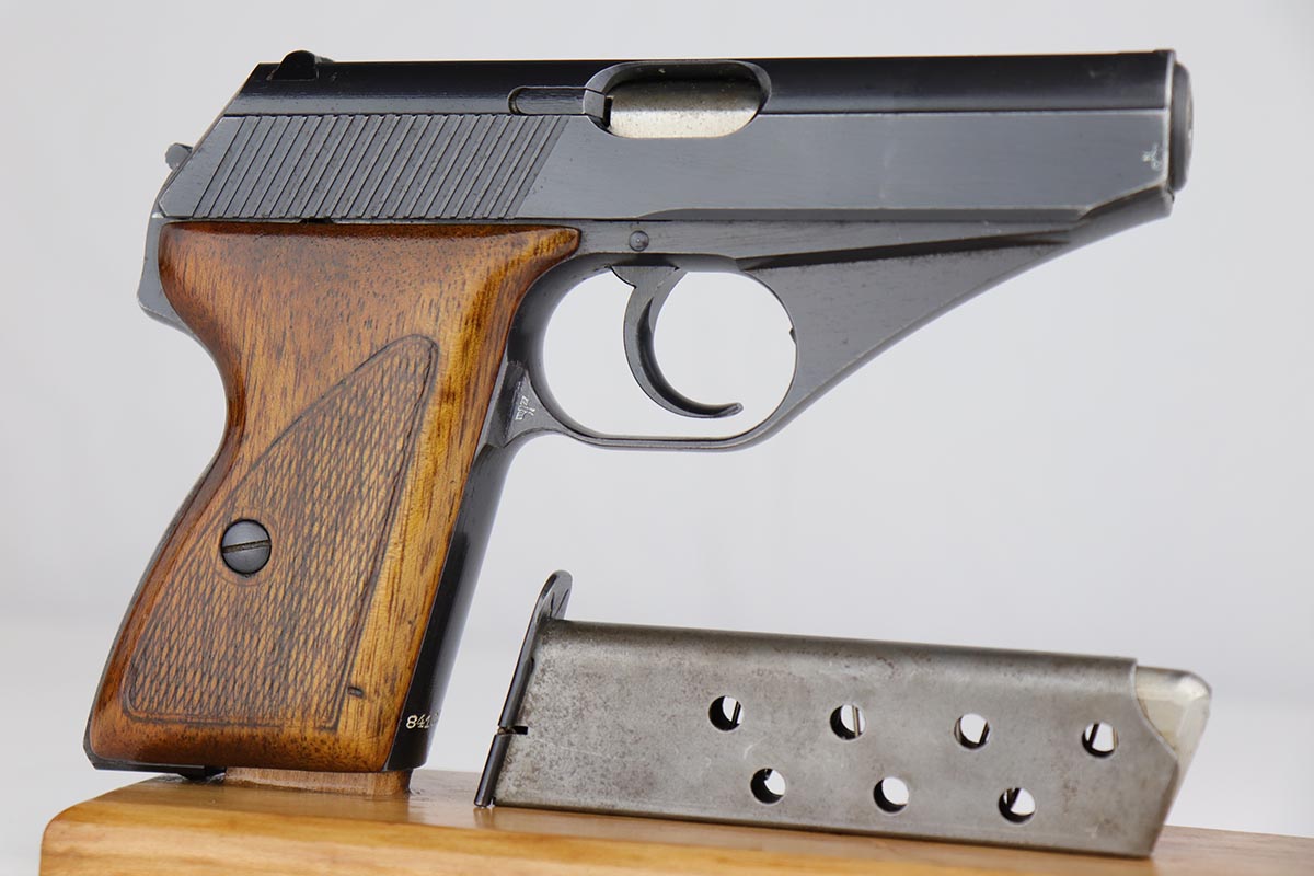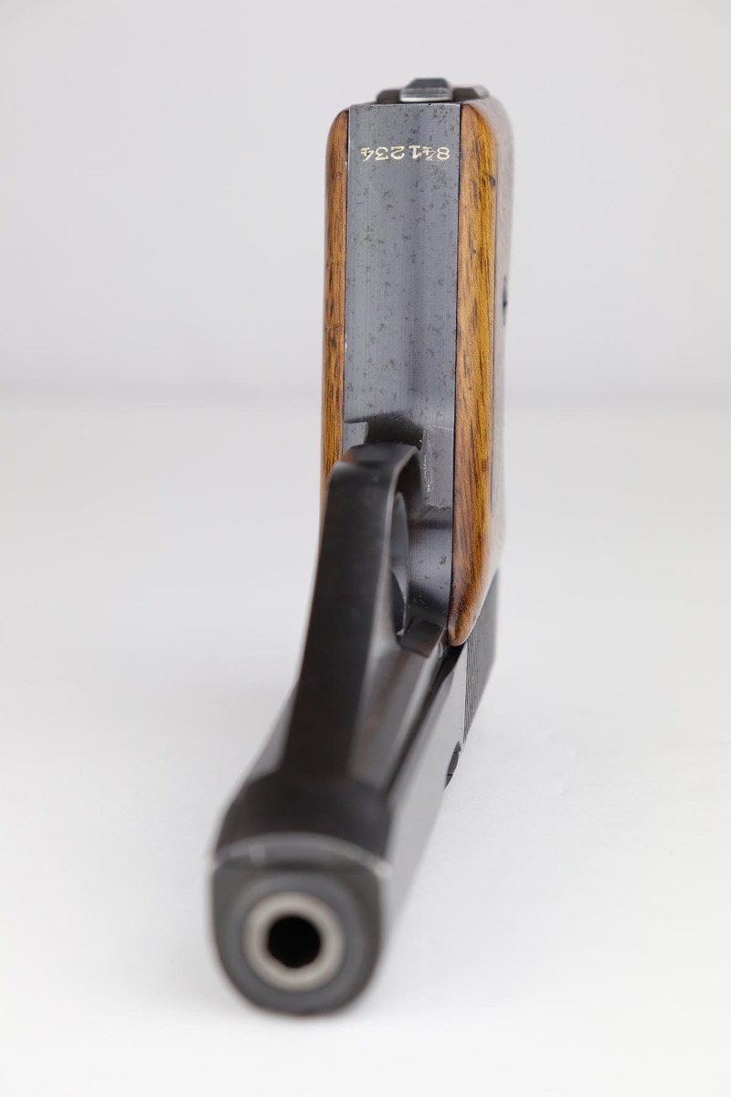 6/21/19 – This is a very nice Mauser HSc that was made in 1943 for the German military. Frame is marked E/135 to denote Army issue. Original blue rates at about 97% with minor muzzle wear and some finish loss on the bottom edge of the back strap. Minty bore and excellent grips. Blank-bottom magazine.