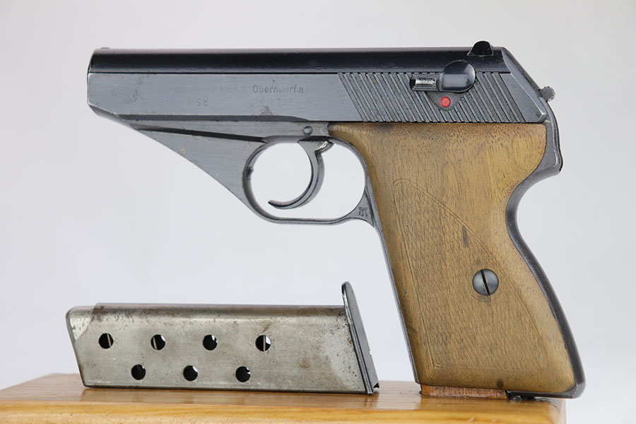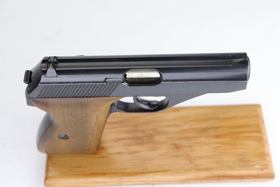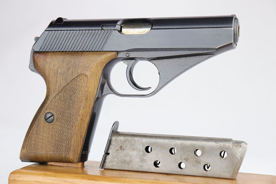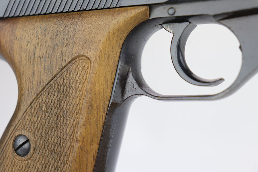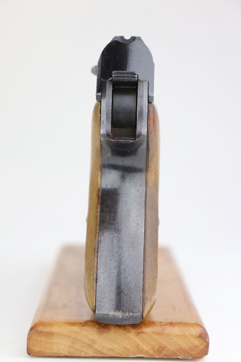 4/15/20 – This is an all matching and original Nazi Mauser HSc from early 1943. The pistol has minimal bluing loss, with just a bit of muzzle wear and a little finish loss on the bottom of the back strap. There is some surface freckling on the left side of the slide though, and some oxidation on the straps. Excellent bore and grips. Blank bottom magazine.