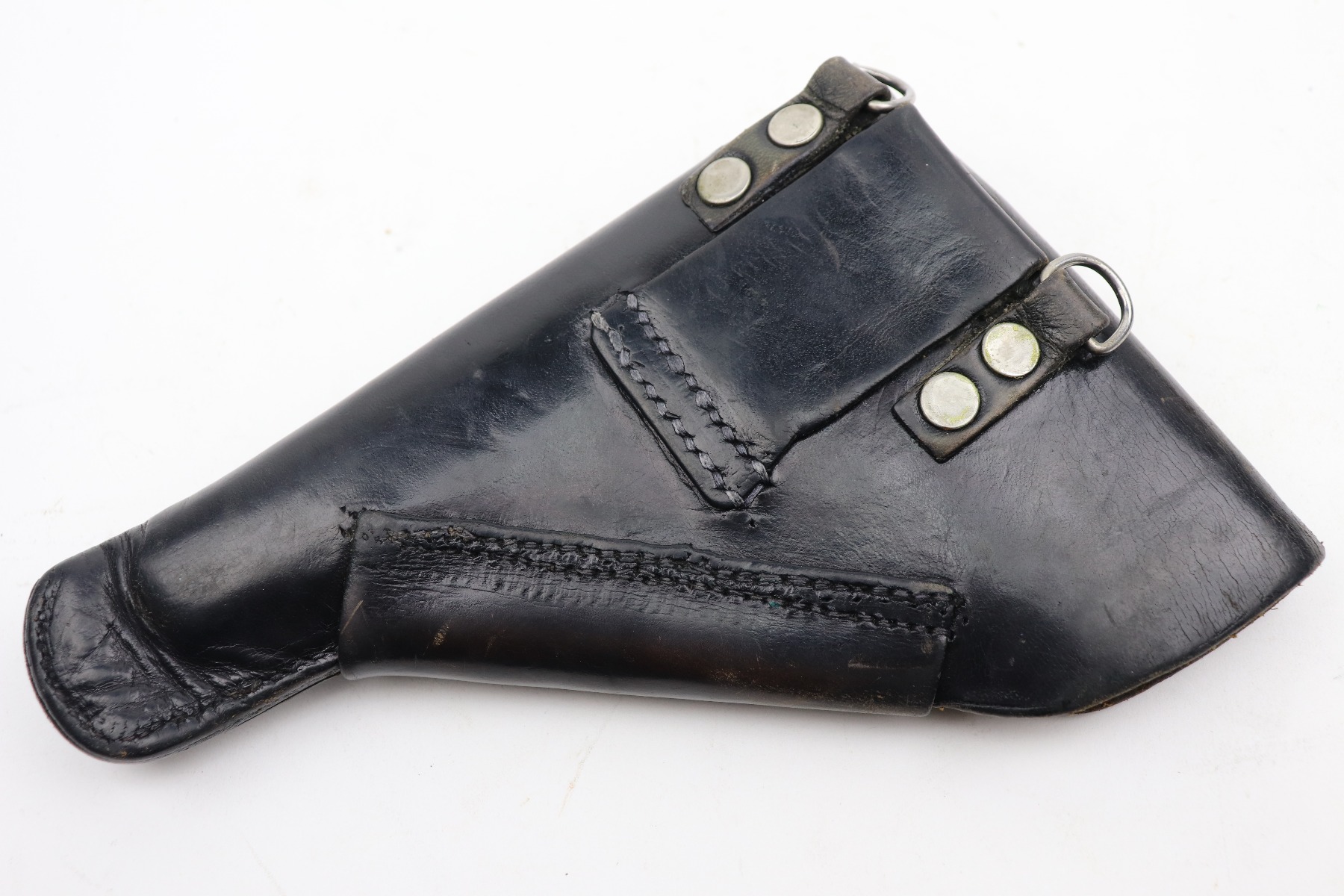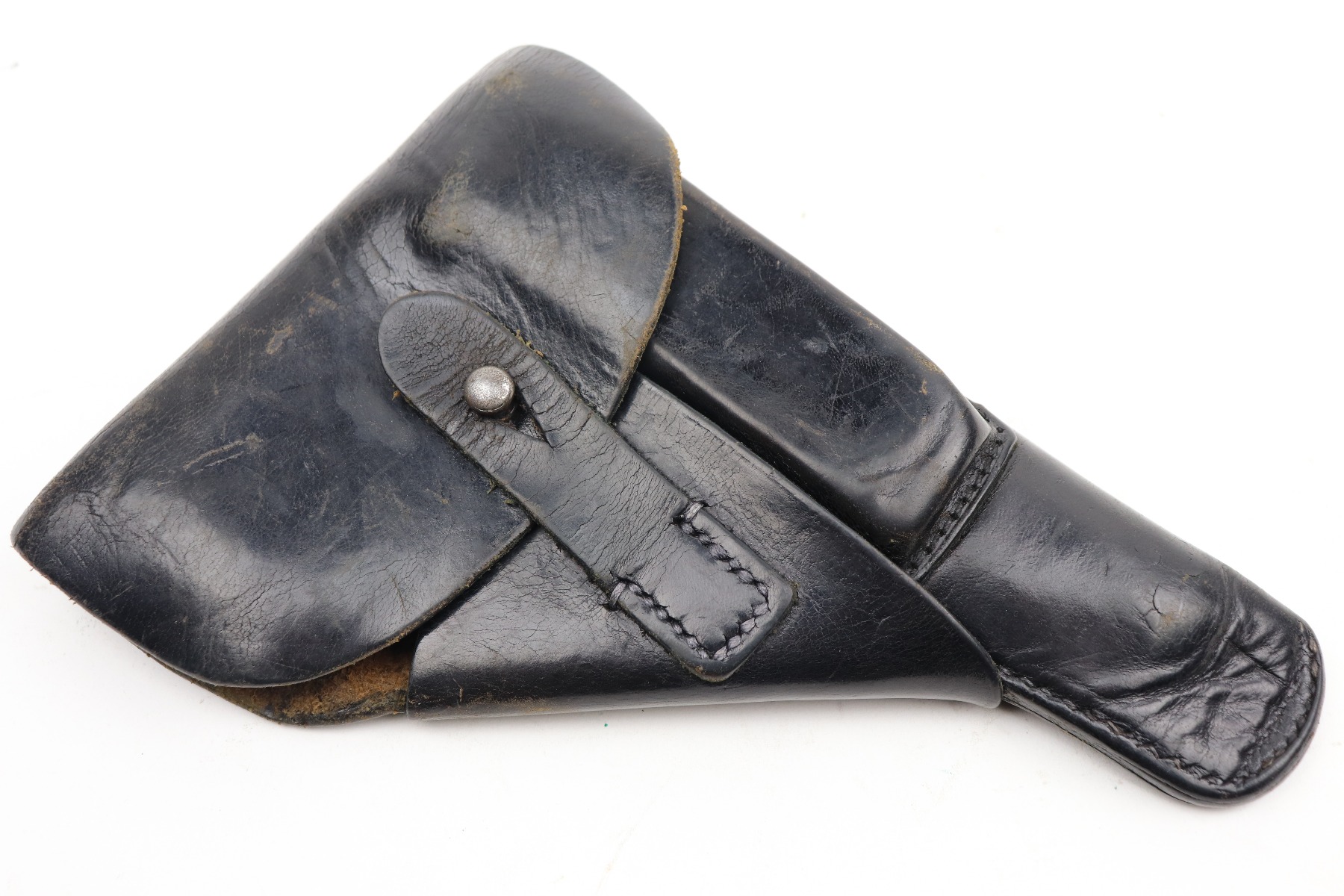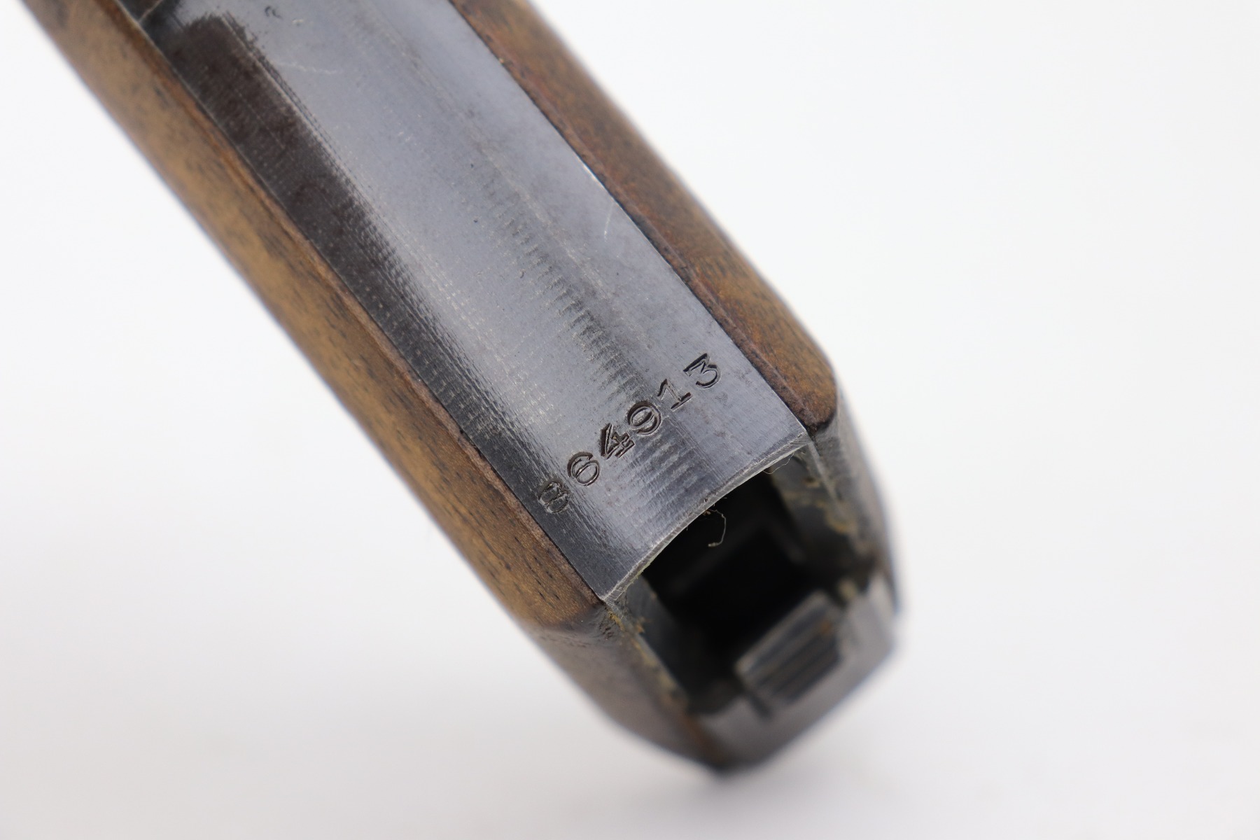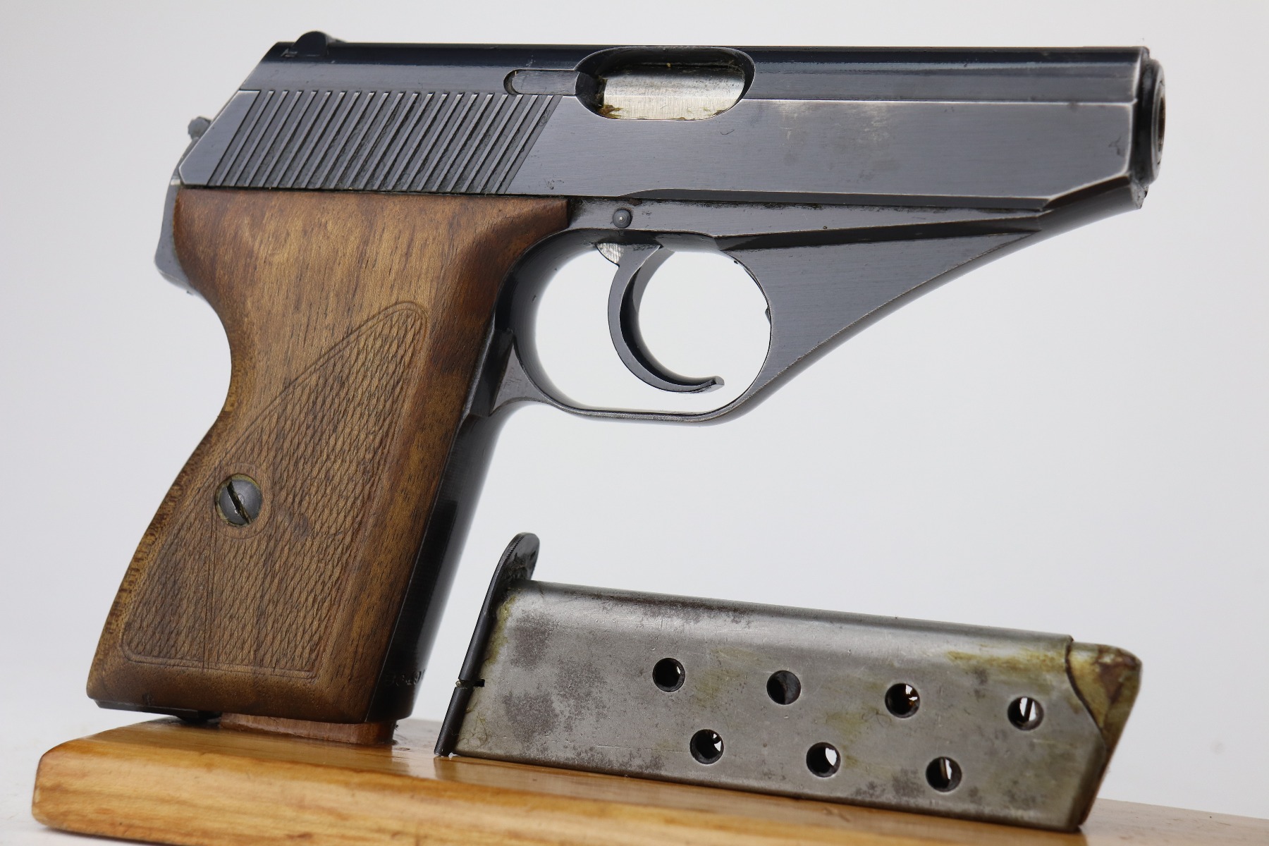 3/31/21 – This is a very nice example of a Mauser HSC rig issued to the Nazi military in 1943. The gun is all matching and has the proper “Eagle 135” military proof. The gun comes with a nice black leather holster and a period-correct magazine. The gun has retained about 93% of its original finish. The profile views are excellent as most of the wear is on the straps. There are also areas of minor wear around the muzzle, high edges of the slide, and a couple of areas on the right side of the slide. Comes with excellent wood grips. The bore is excellent – shiny with strong rifling.