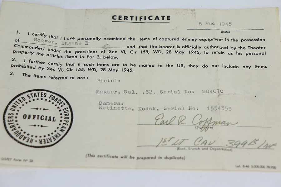 SOLD – Nazi Mauser HSC Rig – With Capture Doc