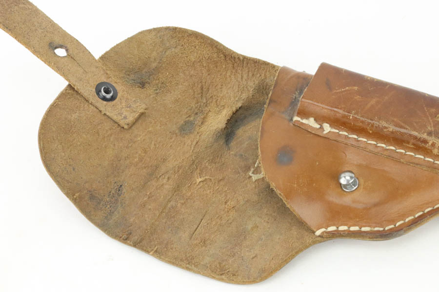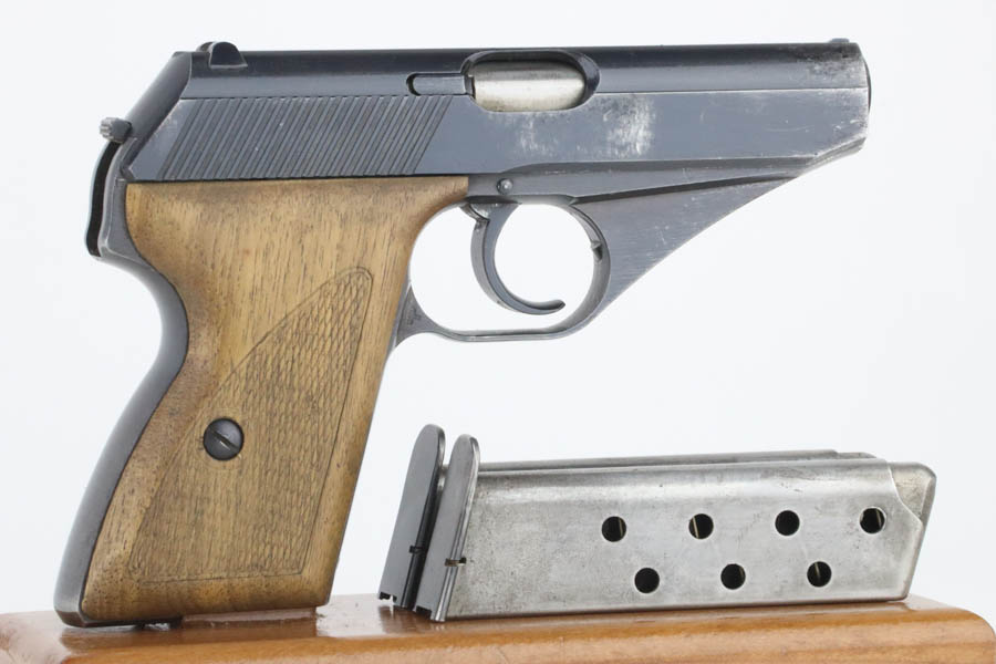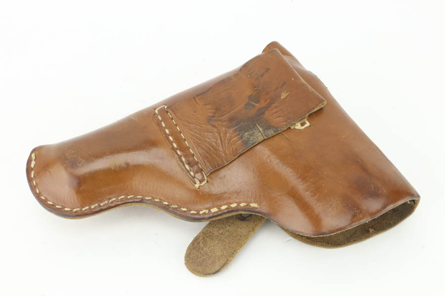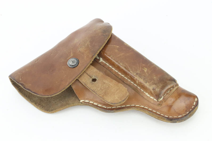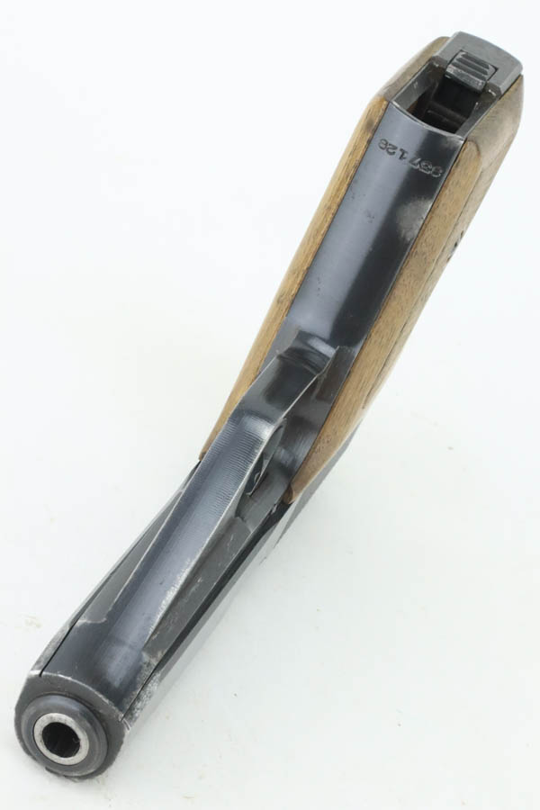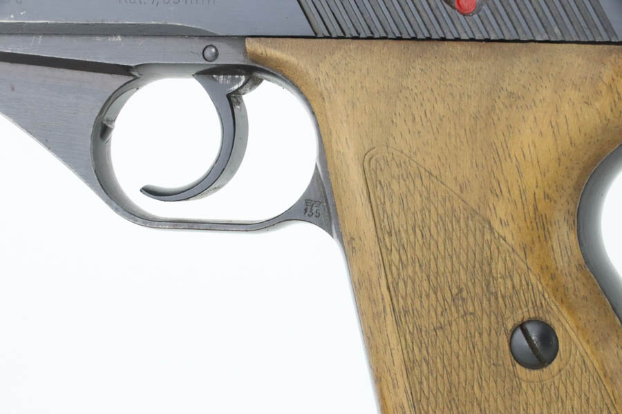 8/16/24 – This is a very nice example of a Mauser HSC issued to the Nazi military in 1943. All matching with the proper “Eagle 135” military acceptance proof on the trigger guard. It comes as a rig with a period-correct CZ 27-style tan leather holster and two proper magazines. It also comes with two original copies of the WW2-capture paperwork that list this exact gun by serial number. The gun itself has retained about 93% of its original finish with muzzle wear, an area of wear on the right side of the slide, and a small spot of wear on the front strap. Fitted with excellent period-correct blond wood grips. Minty bore.