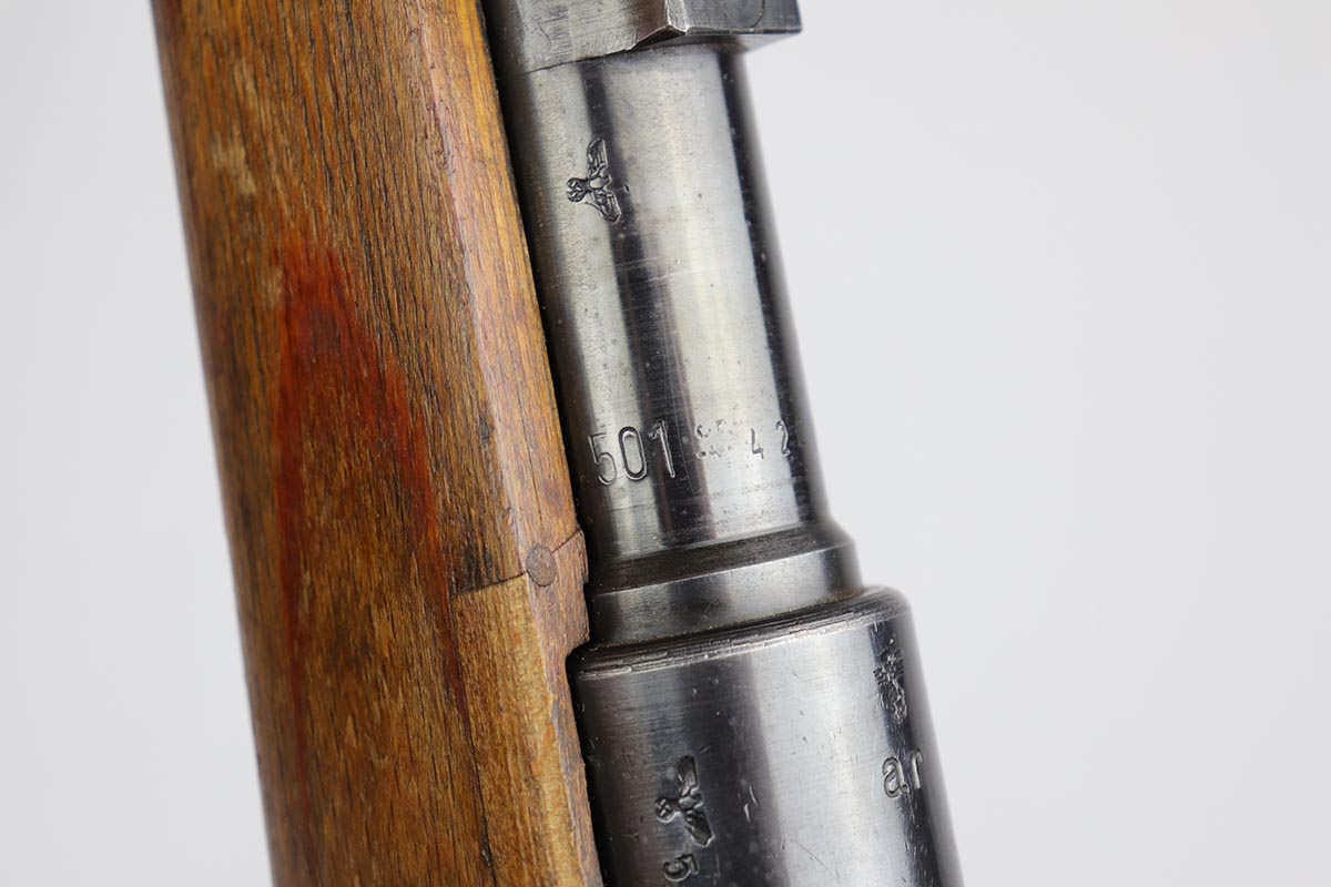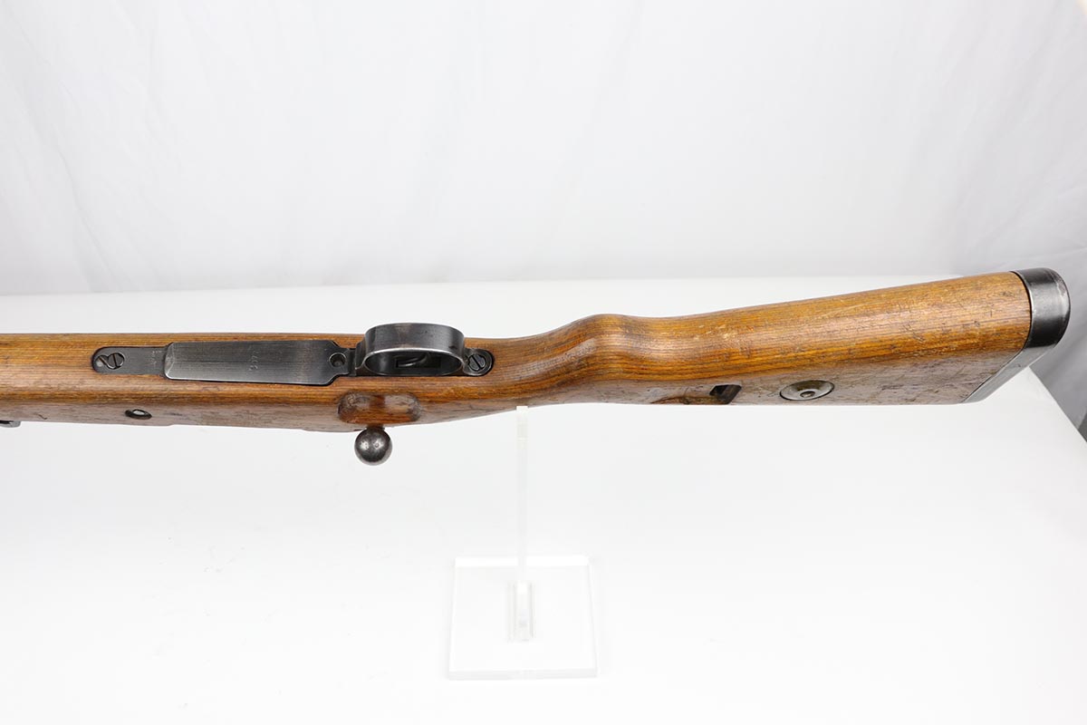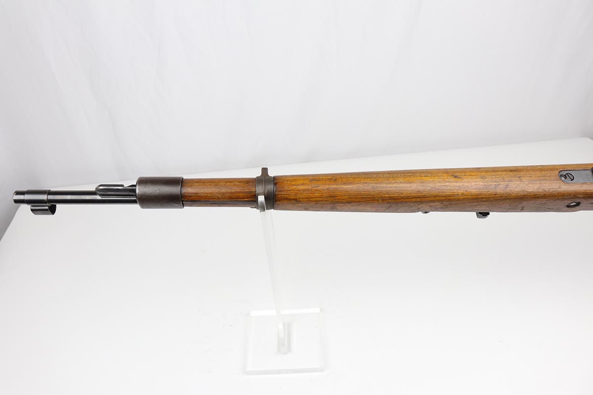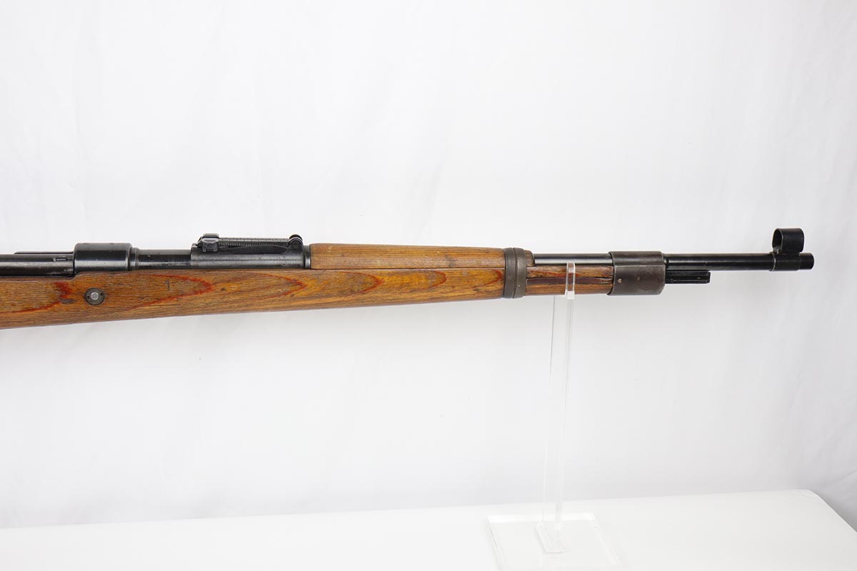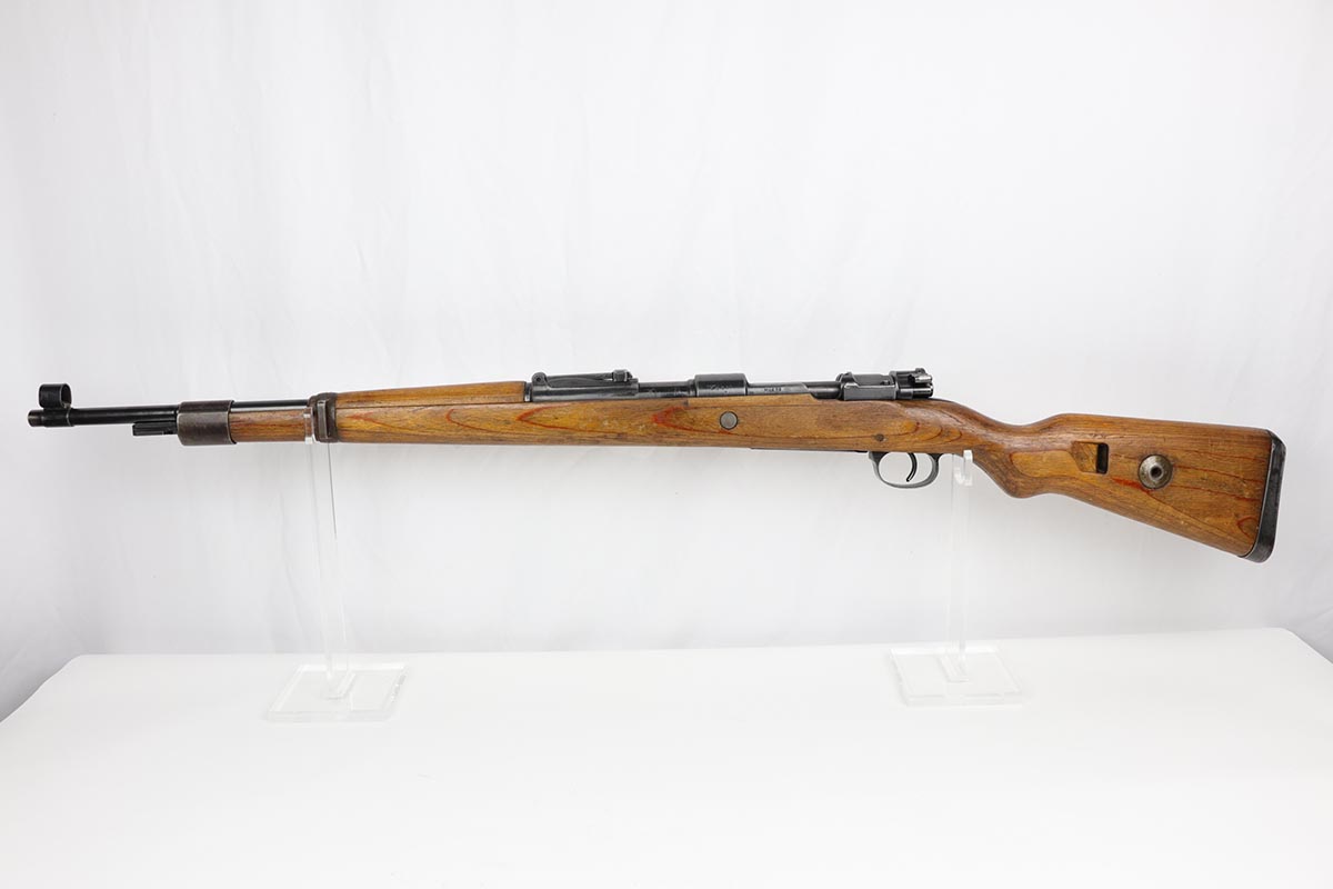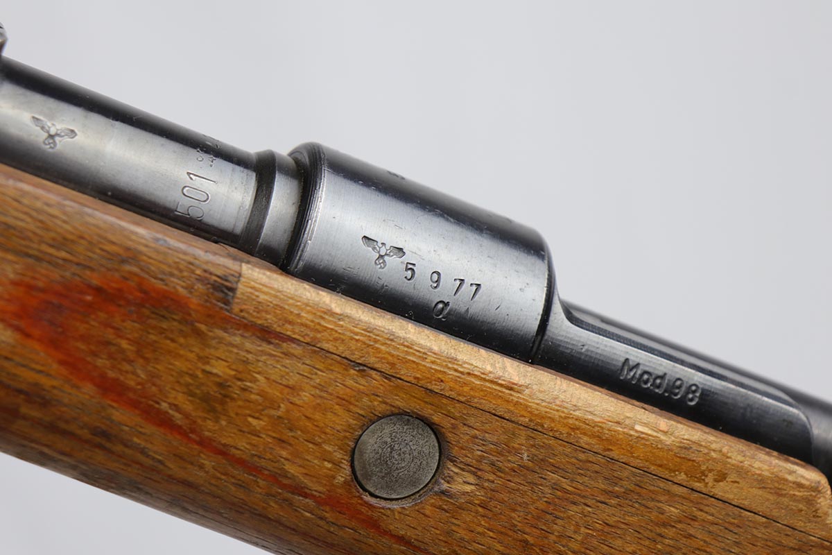 1/16/20 – This is an all matching Nazi Mauser K98 that is marked ‘ar 43’ on the receiver, denoting it was made in 1943 at the Mauser factory in Berlin-Borsigwalde. The metal parts are all matching numbers throughout the rifle, with the majority of the finish loss found on the bands and near the muzzle. The stock is unnumbered with Heer Army proof on right side, and a thin surface crack on the left/underside. The stock also appears to have been originally designed for a sniper scope mount, but the cutout was later filled in. Have not seen this before so don’t know the full story there, but will include a couple of closeup photos. Rifle bore is excellent.