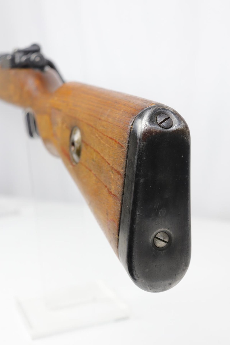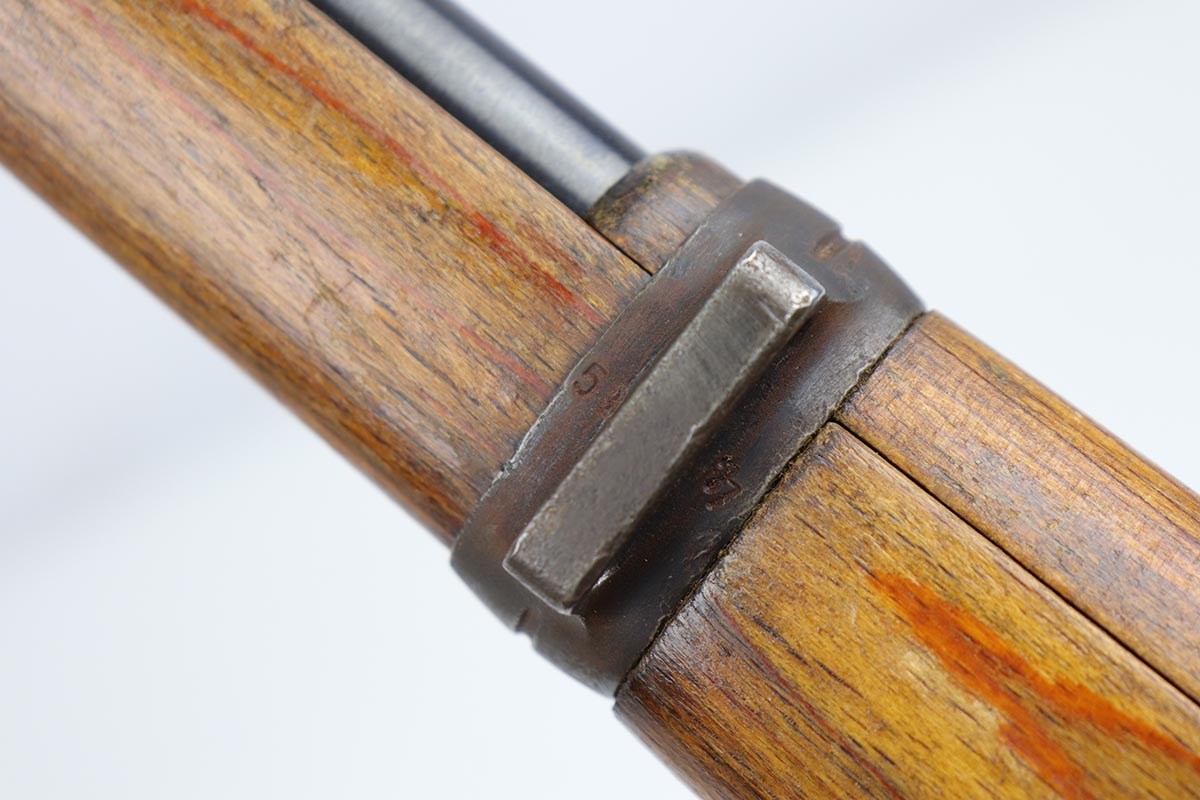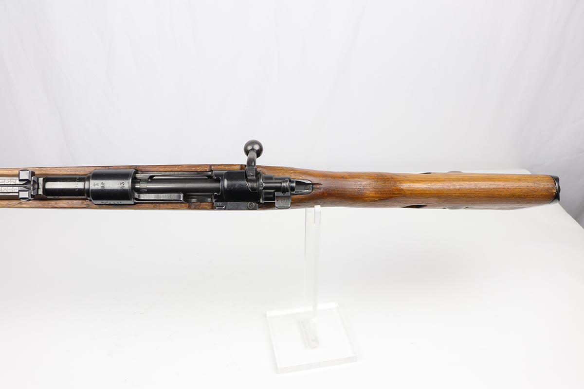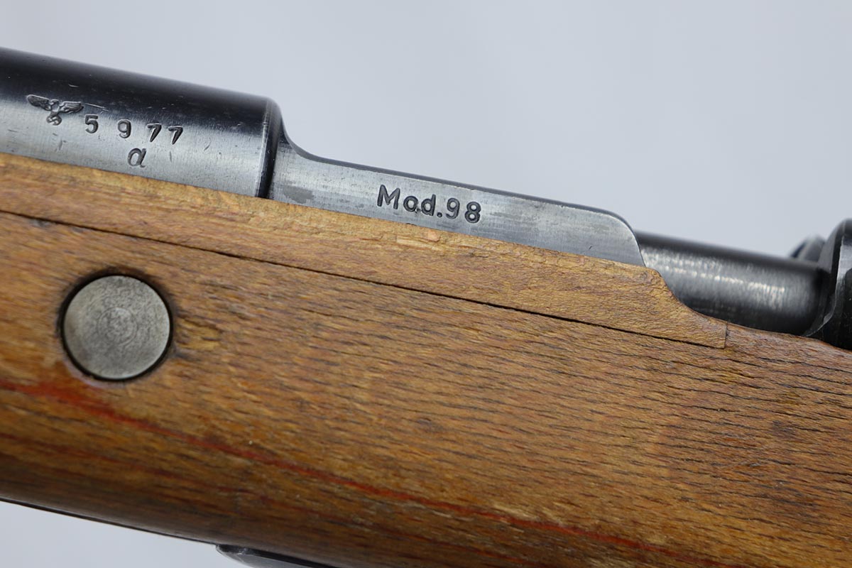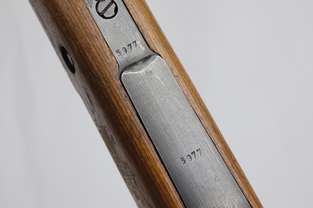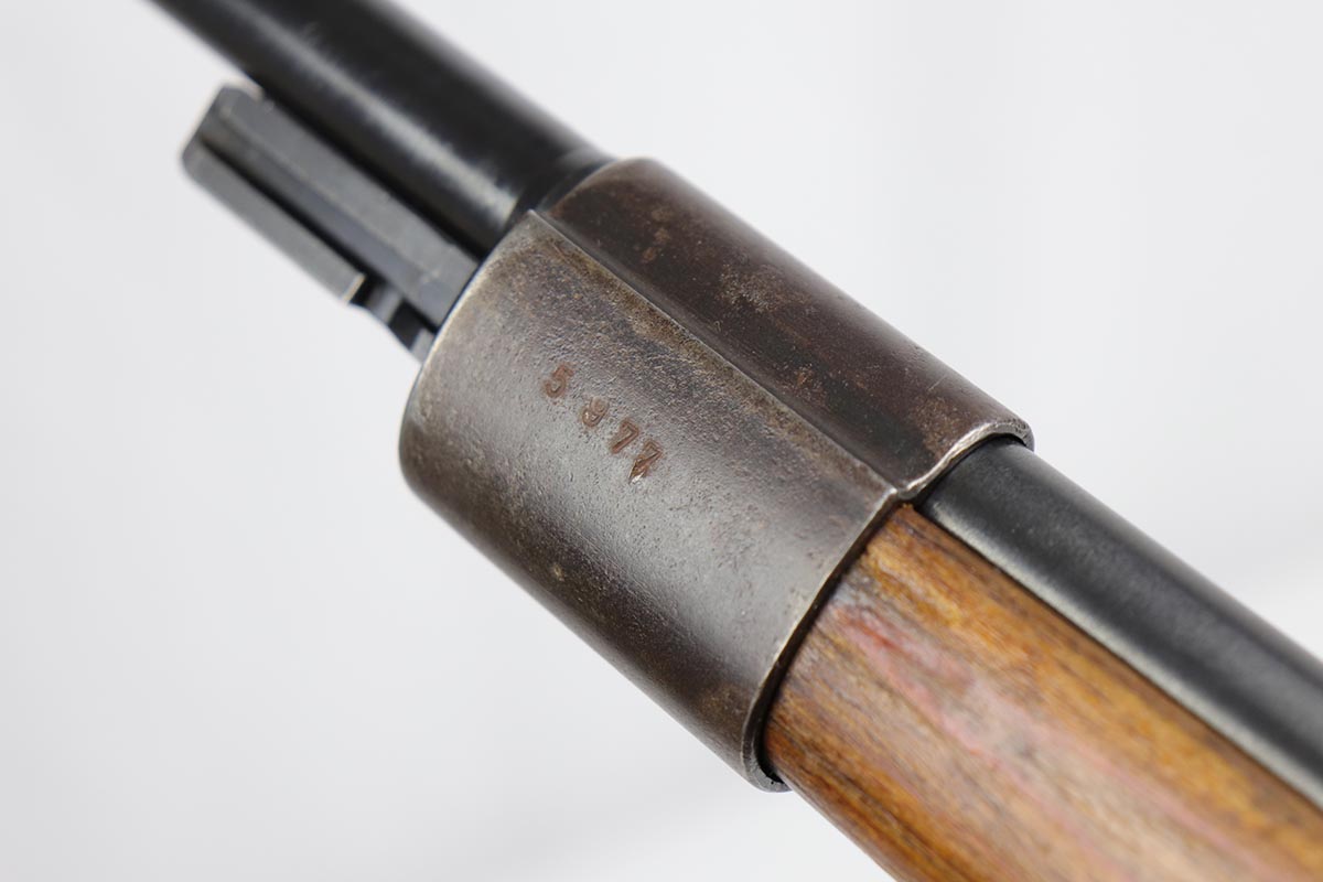1/16/20 – This is an all matching Nazi Mauser K98 that is marked ‘ar 43’ on the receiver, denoting it was made in 1943 at the Mauser factory in Berlin-Borsigwalde. The metal parts are all matching numbers throughout the rifle, with the majority of the finish loss found on the bands and near the muzzle. The stock is unnumbered with Heer Army proof on right side, and a thin surface crack on the left/underside. The stock also appears to have been originally designed for a sniper scope mount, but the cutout was later filled in. Have not seen this before so don’t know the full story there, but will include a couple of closeup photos. Rifle bore is excellent.