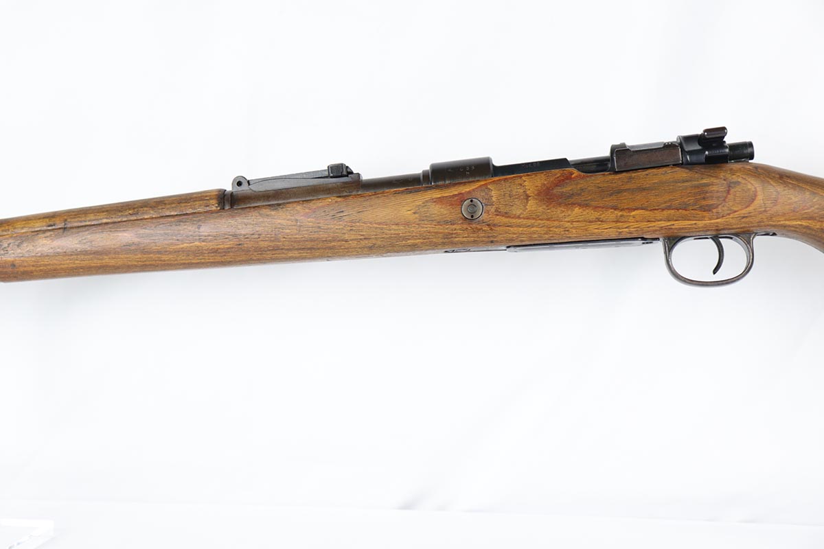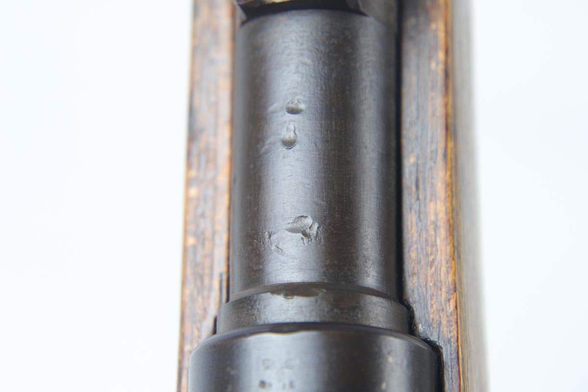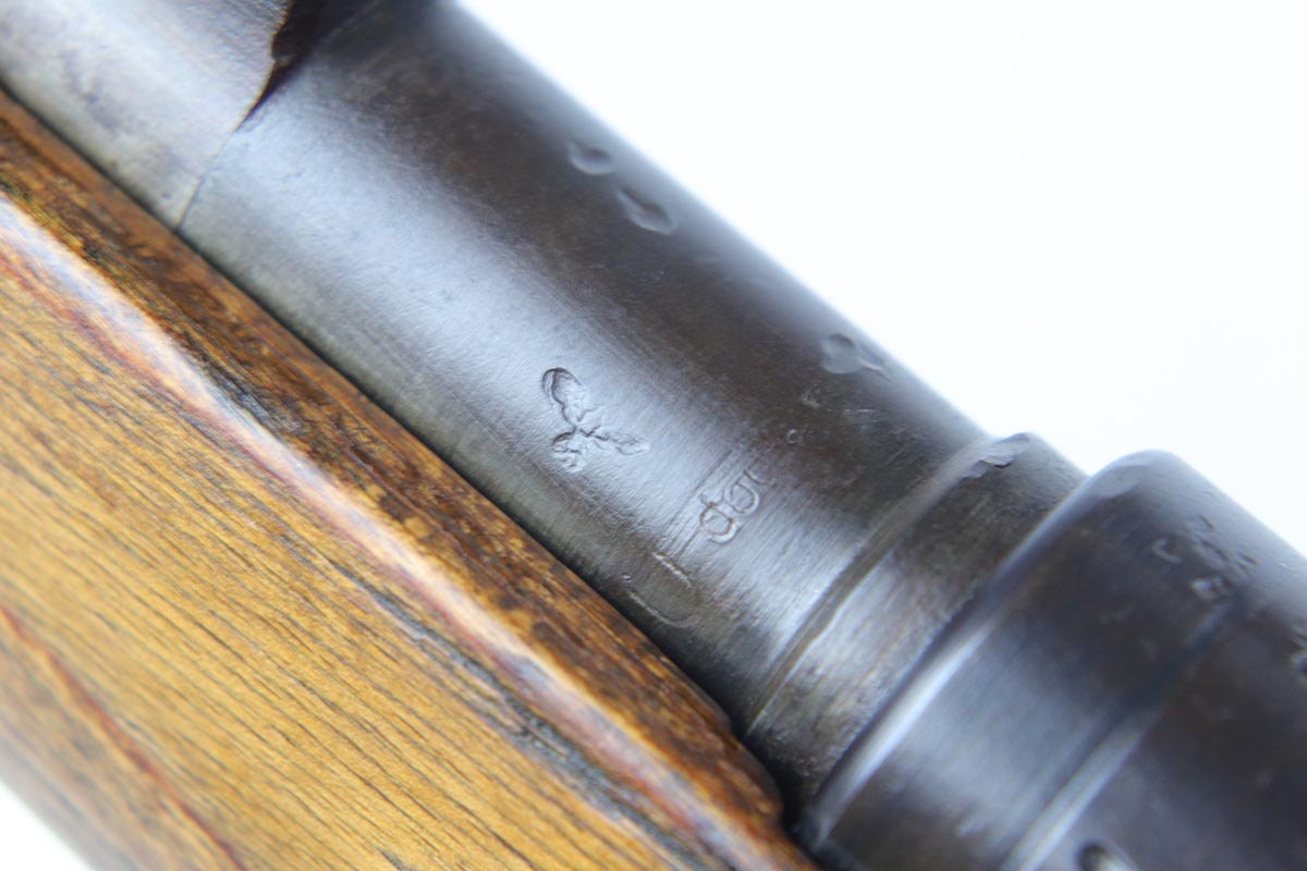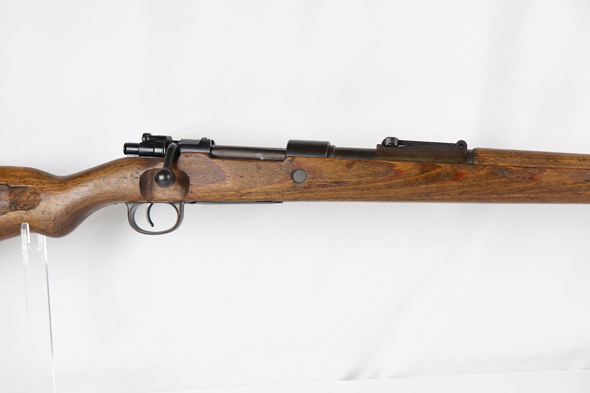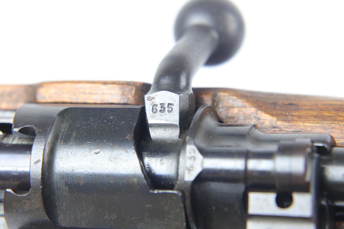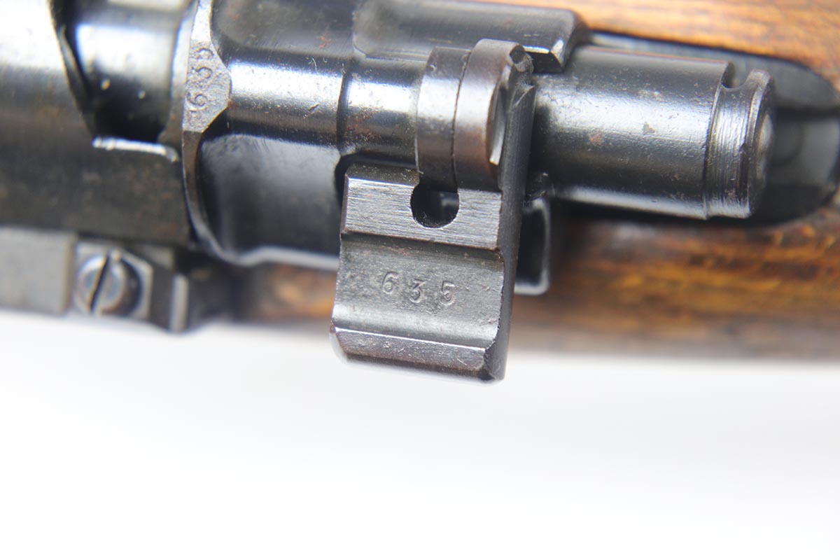7/2/18 – This is an all matching and original Mauser K98, made in 1944 at the Waffenwerke Brunn factory. The bluing does not have much actual finish loss but does have patina visible throughout the barrel and forward portion of the receiver. All numbered parts match. Stock is correctly unmarked. There is a very thin surface crack near the buttplate, but it does not go through the wood more than a quarter of an inch at the deepest point. There are also a few ding marks on the receiver. Rifle has an excellent bore and comes with a cleaning rod.