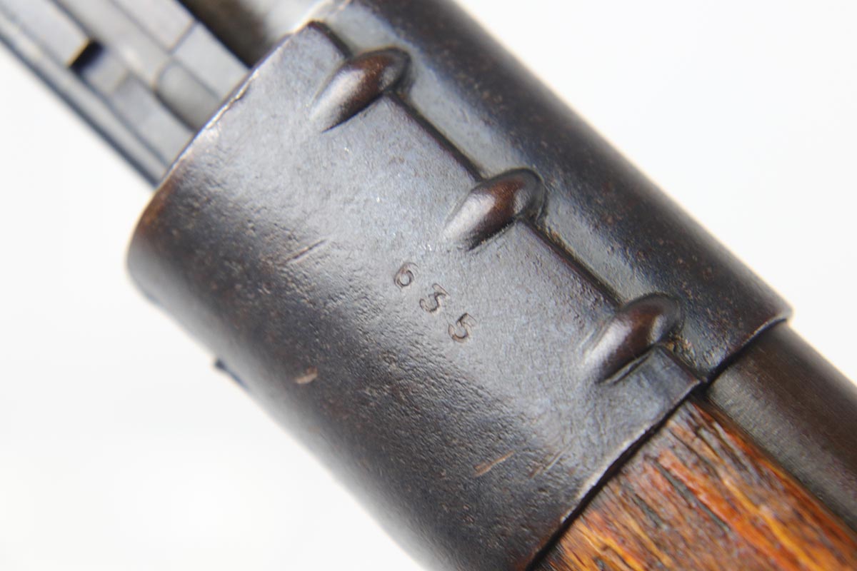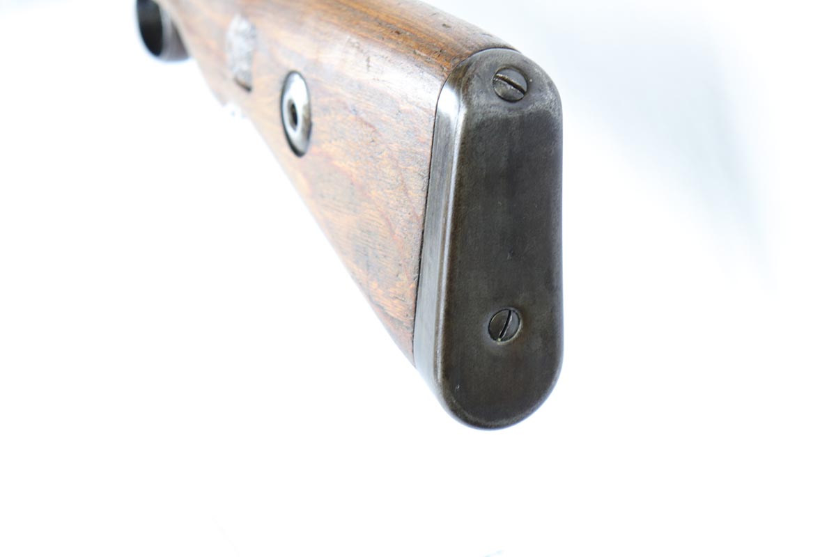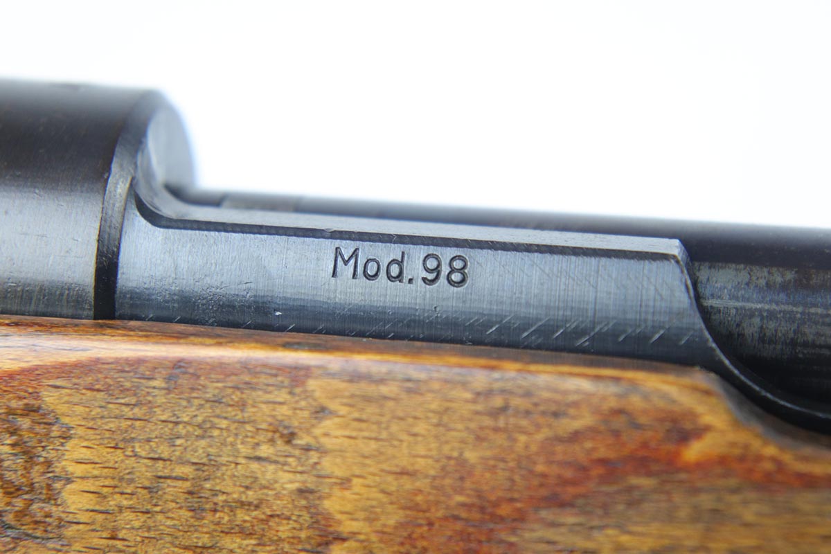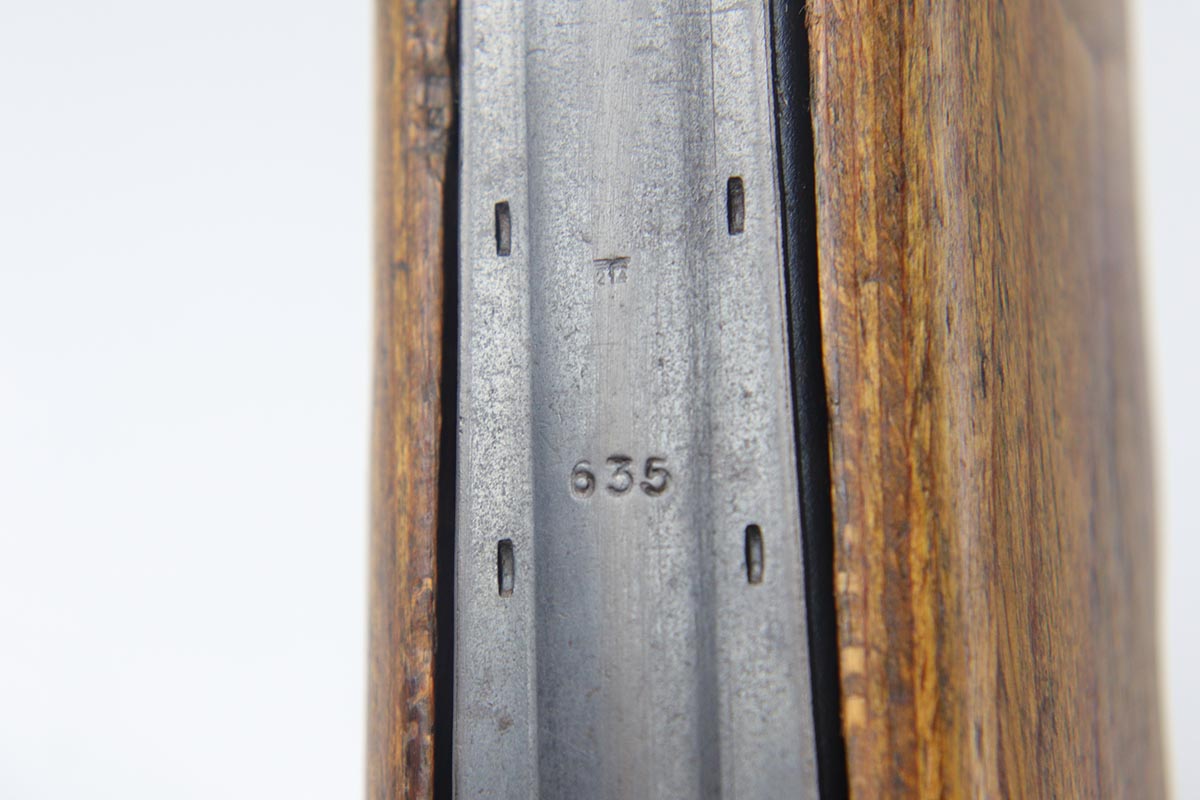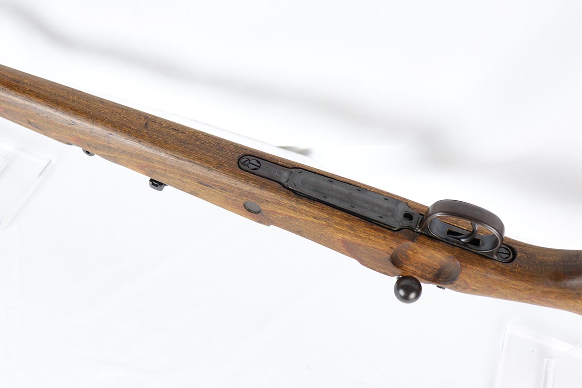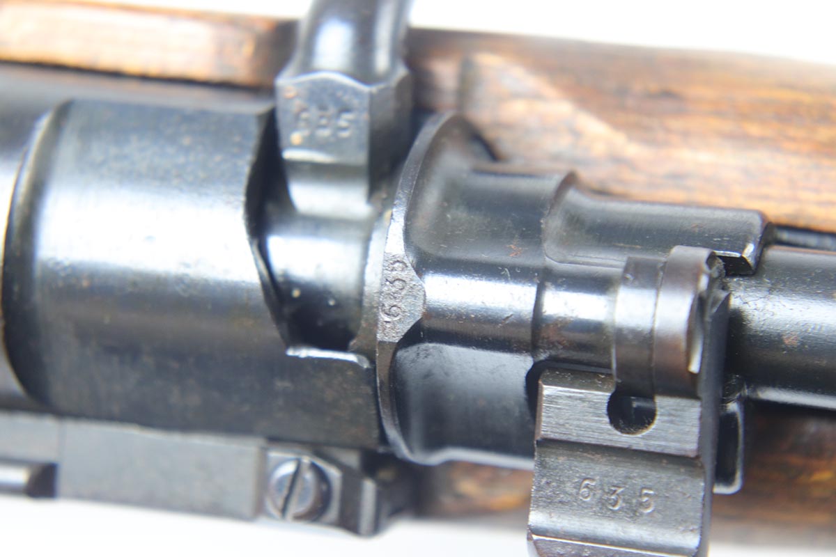 7/2/18 – This is an all matching and original Mauser K98, made in 1944 at the Waffenwerke Brunn factory. The bluing does not have much actual finish loss but does have patina visible throughout the barrel and forward portion of the receiver. All numbered parts match. Stock is correctly unmarked. There is a very thin surface crack near the buttplate, but it does not go through the wood more than a quarter of an inch at the deepest point. There are also a few ding marks on the receiver. Rifle has an excellent bore and comes with a cleaning rod.