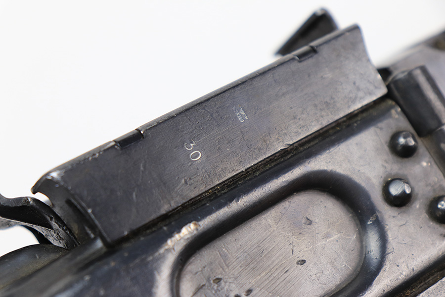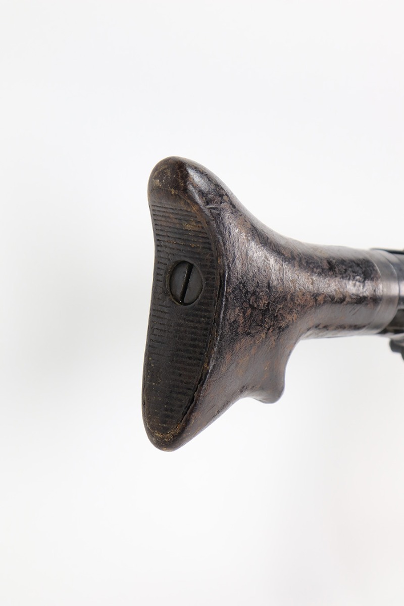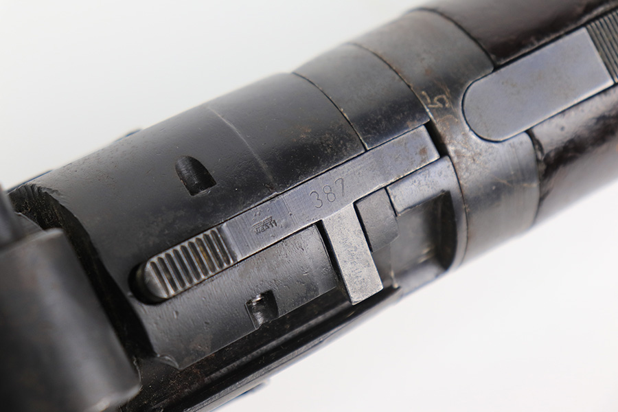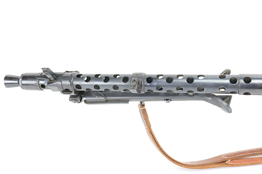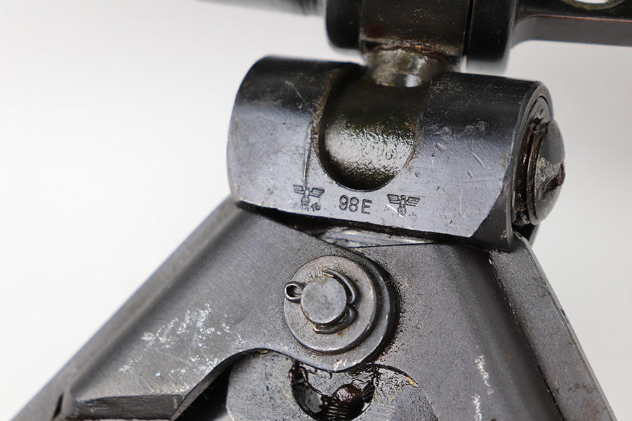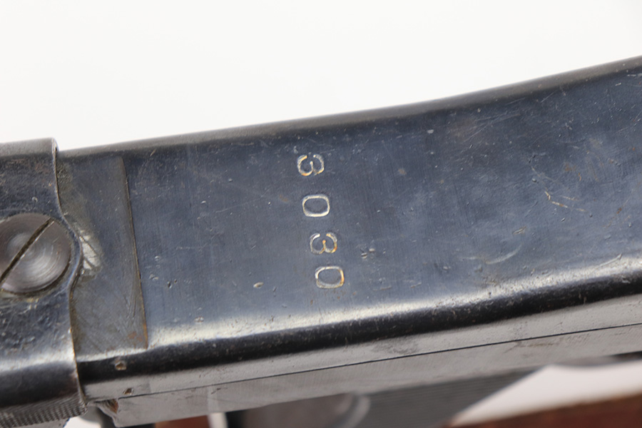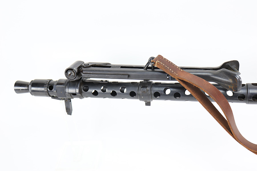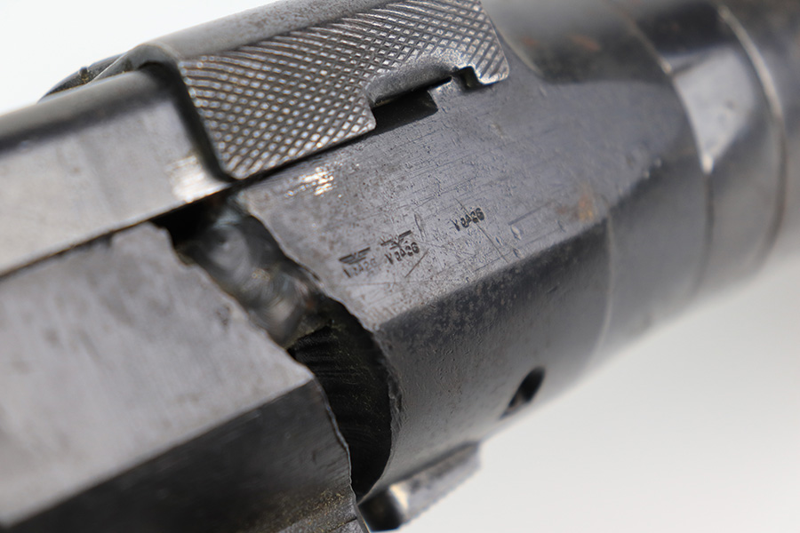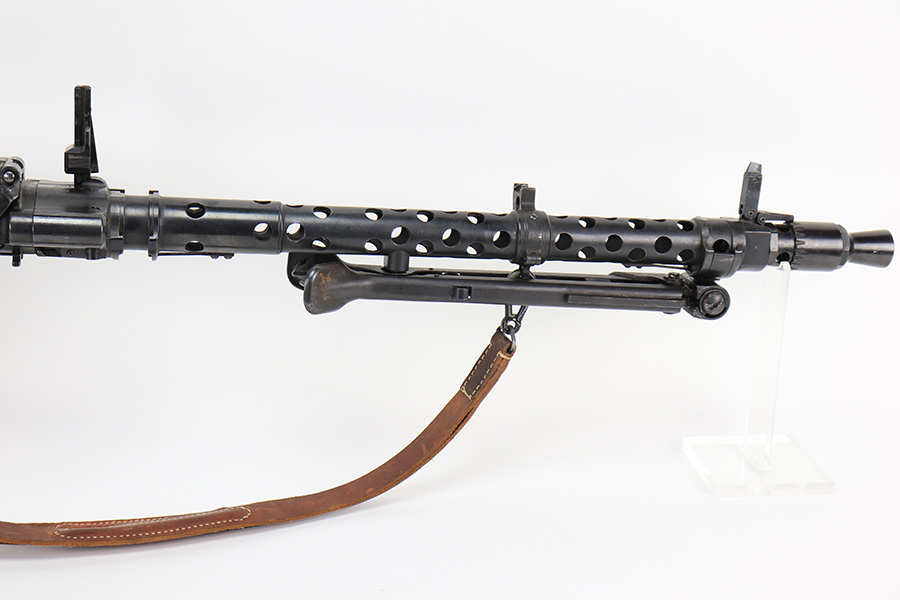 3/24/22 – This is a very nice example of a dummy, non-operable example of an MG-34 that was issued to the Nazi Army in 1943. The gun is not matching and has a decommissioned receiver with the barrel removed. The rest of the gun is comprised of period-correct German parts. Nazi proofs throughout. The serial on the receiver is crossed out and renumbered. The receiver is also torch-cut. The bipod is operable. Excellent blued finish overall with minor edge wear and patina but no major areas of bluing loss. Nice wood stock with only minor handling wear. Comes with the original barrel, which generally has strong rifling with only minor freckling in the grooves. Also comes with most of the internals, like the bolt and firing pin. This would make an awesome display piece.