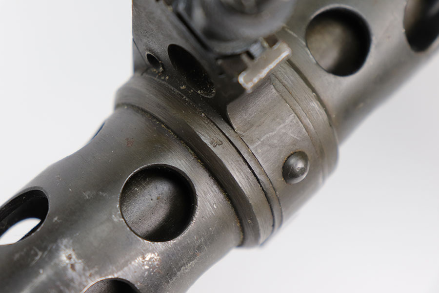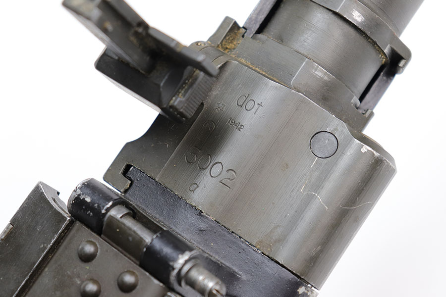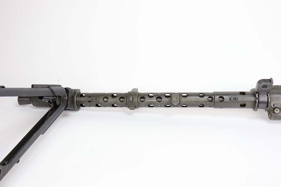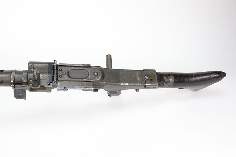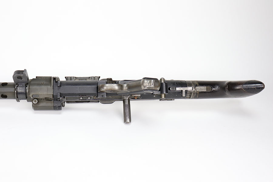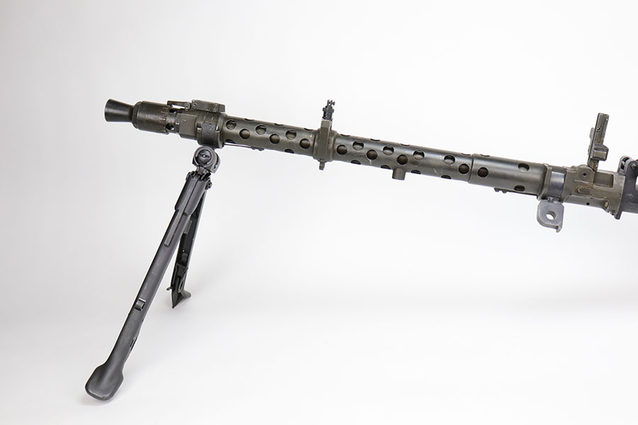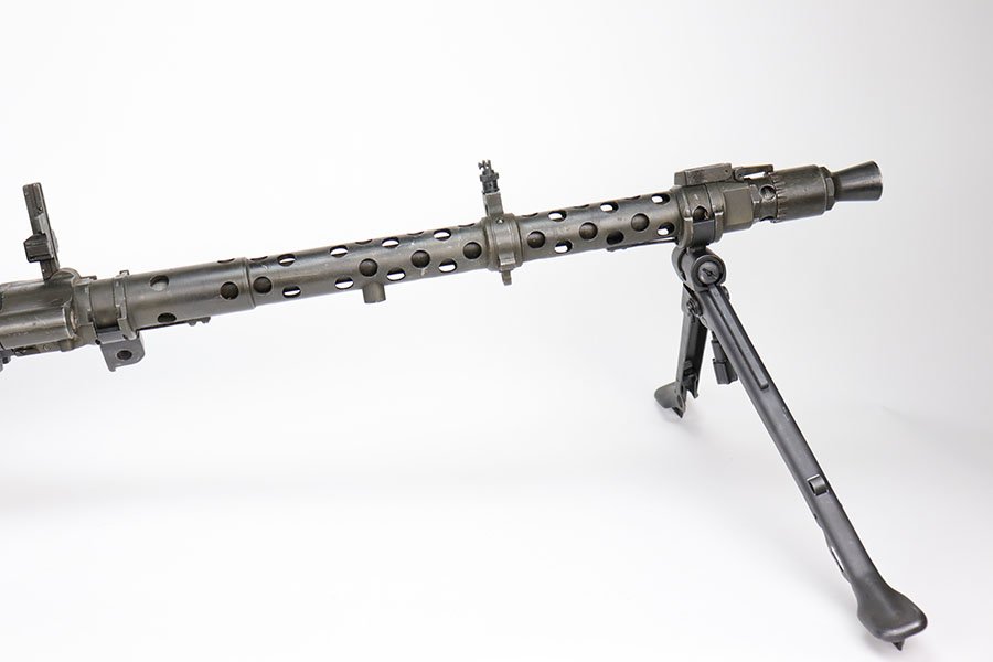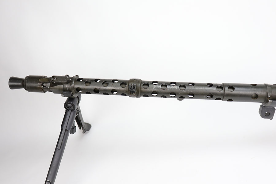 12/3/20 – This is a Nazi MG 34 that has been rendered non-functional. The receiver is marked ‘dot’ and 1942 dated, indicating it was made Waffen-Werke Brunn AG factory. Largely comprised of original WW2 parts but receiver has been cut/welded. Flip front sights. Comes with bipod.