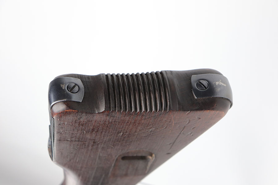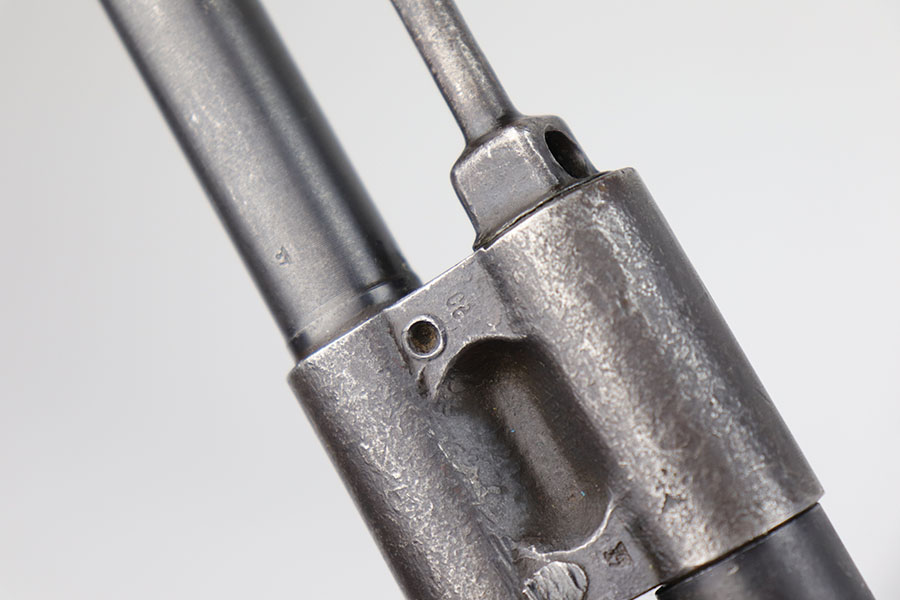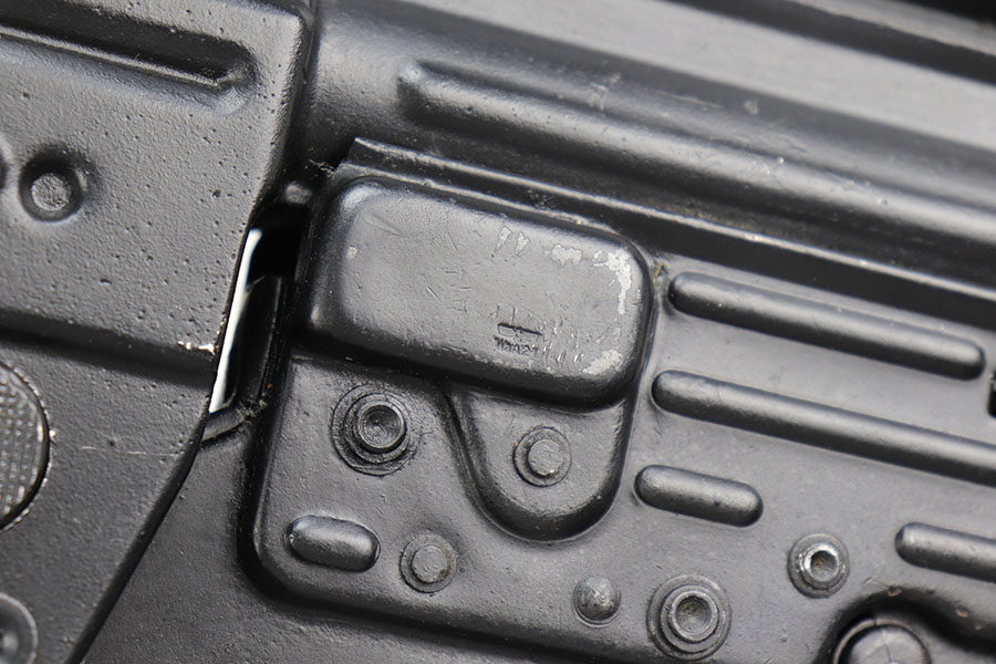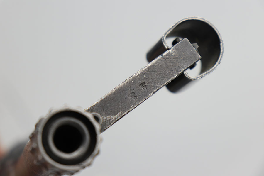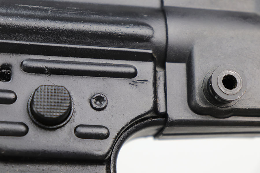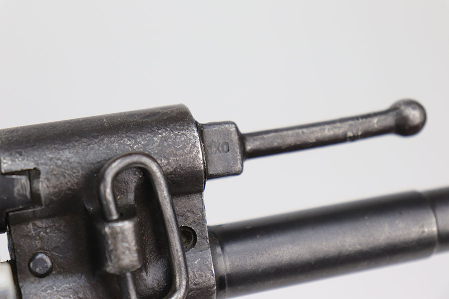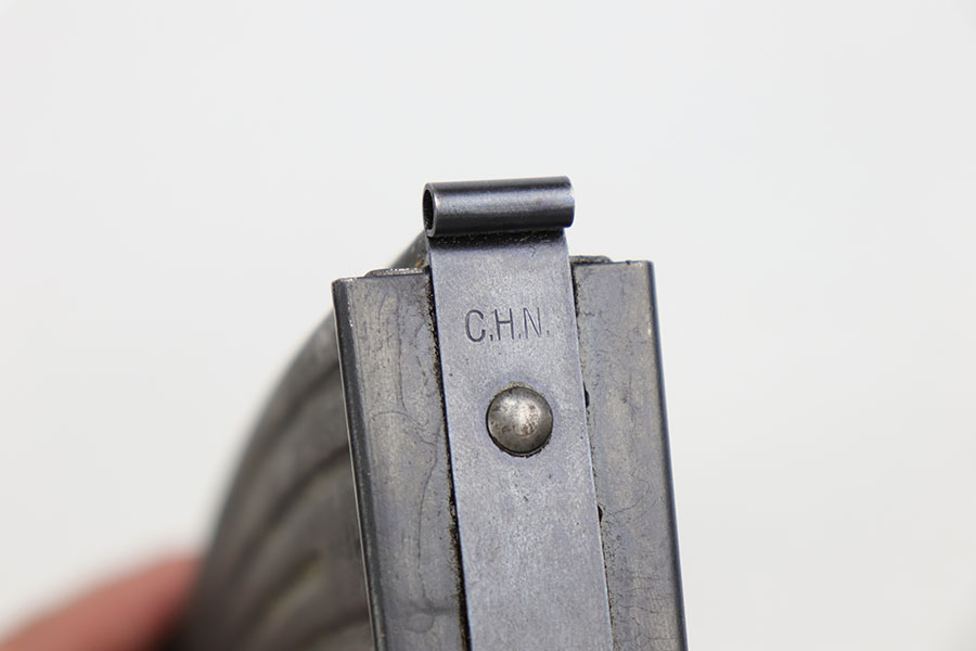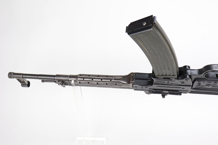 9/2/20 – This is a decommissioned Nazi MP 44 Sturmgewehr from World War II. We are not experts on these but this one has WaA21 proof on left side of receiver and otherwise no proofs I can find, including serial number or model marking. The receiver has definitely been painted/refinished and does have some pitting under the finish in several areas. Haven’t opened the receiver to exactly see how this is decommissioned but appears receiver is cut, and bolt does not move. Barrel is not plugged though. Magazine is marked MP 44 on the side and CHN on the bottom. Wood parts have some handling wear but no cracks or chips. Note that the magazine is loose in the gun.