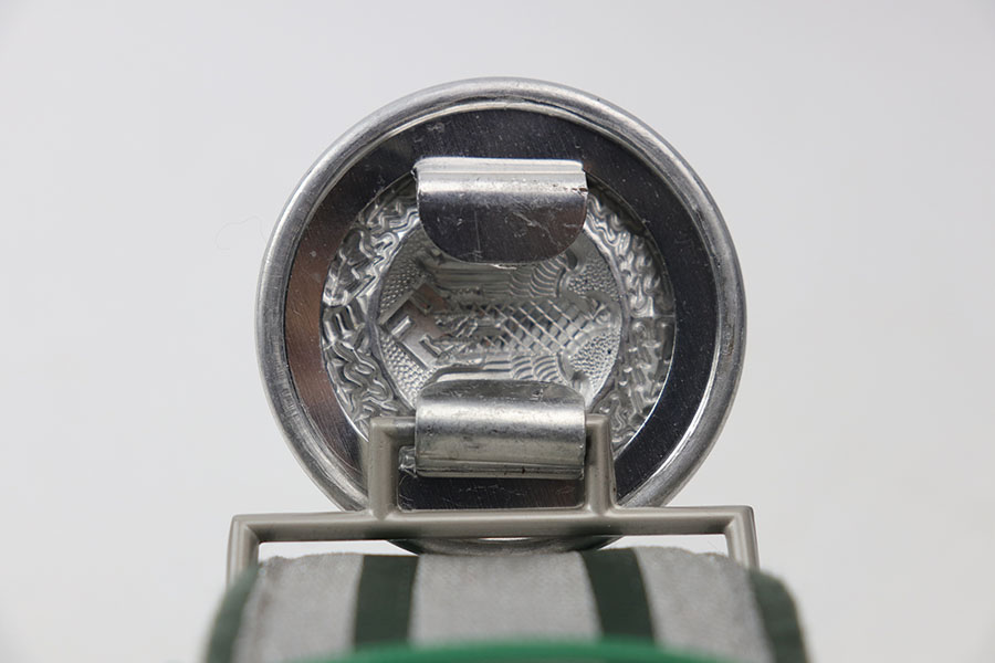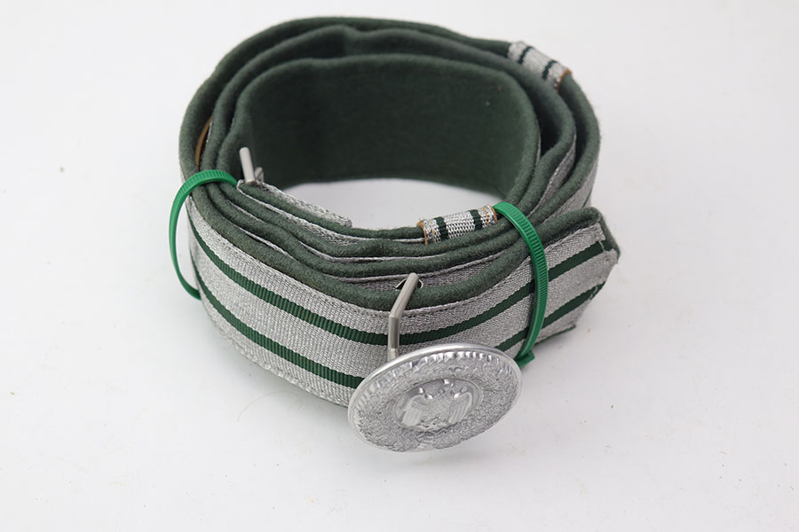 8/13/20 – This is an original WW2 German military officer’s brocade belt and buckle. Excellent, near mint condition. No chew marks or moth-holes in the wool. Excellent, clean exterior as well. We received this in zip-ties to hold its’ shape, and did not remove them for the photos. Nearly impossible to upgrade.