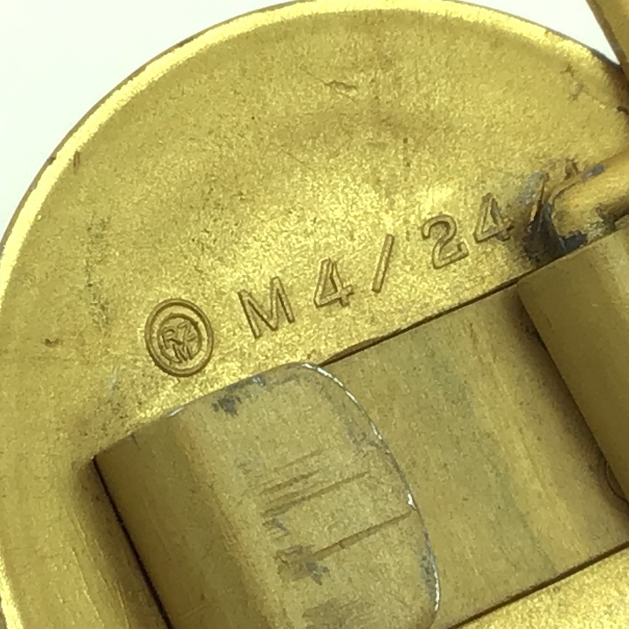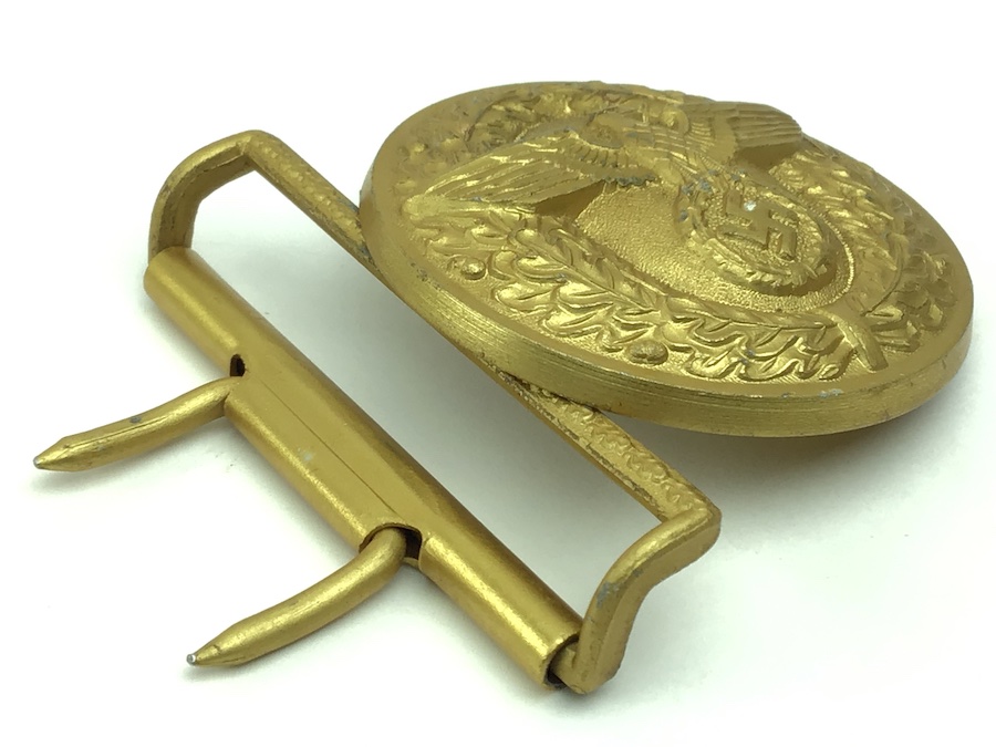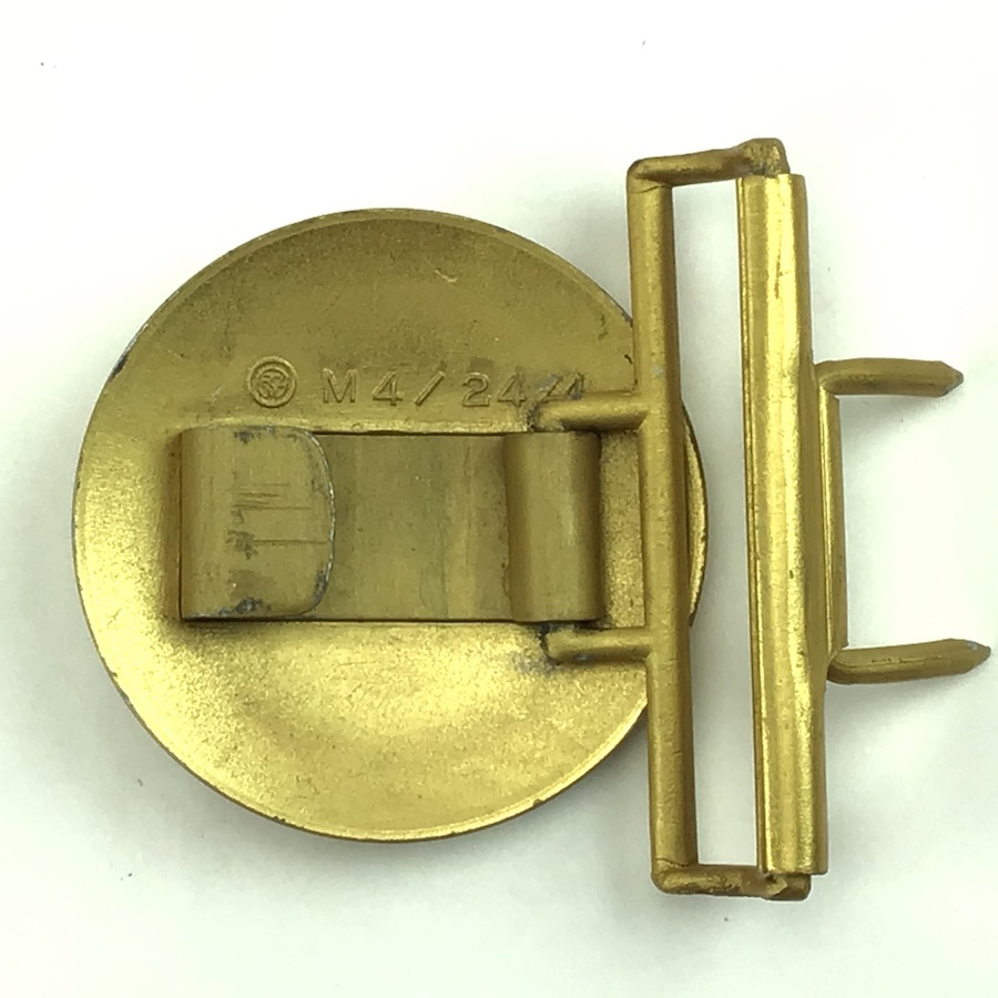 5/7/21 – This is an original WW2 aluminum Party Leader belt buckle. The gold wash finish is original and there is minimal wear. The interior is RZM stamped along with “M4/24/4” . Guaranteed original.