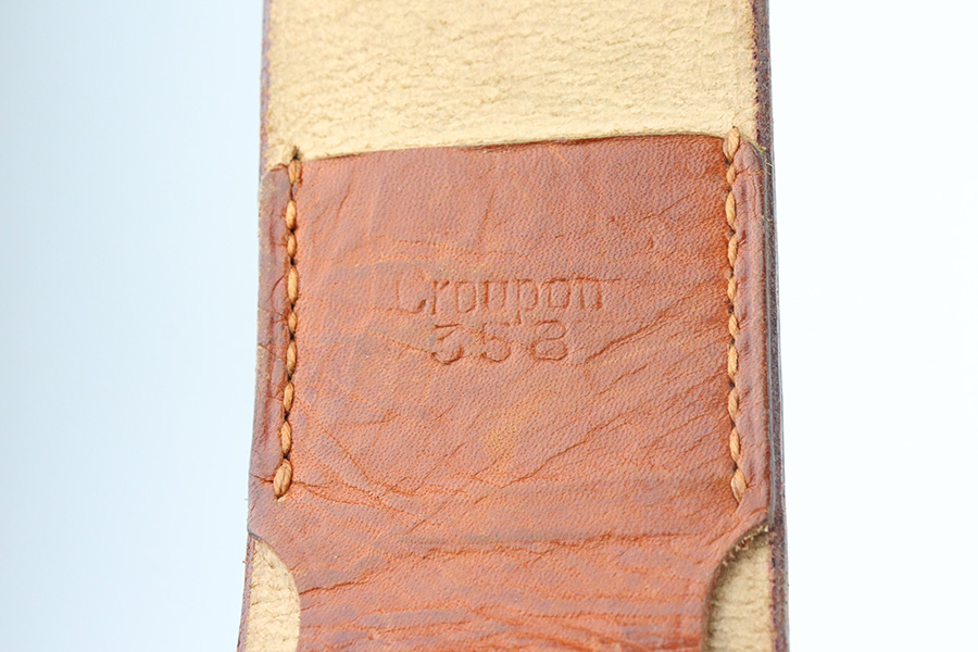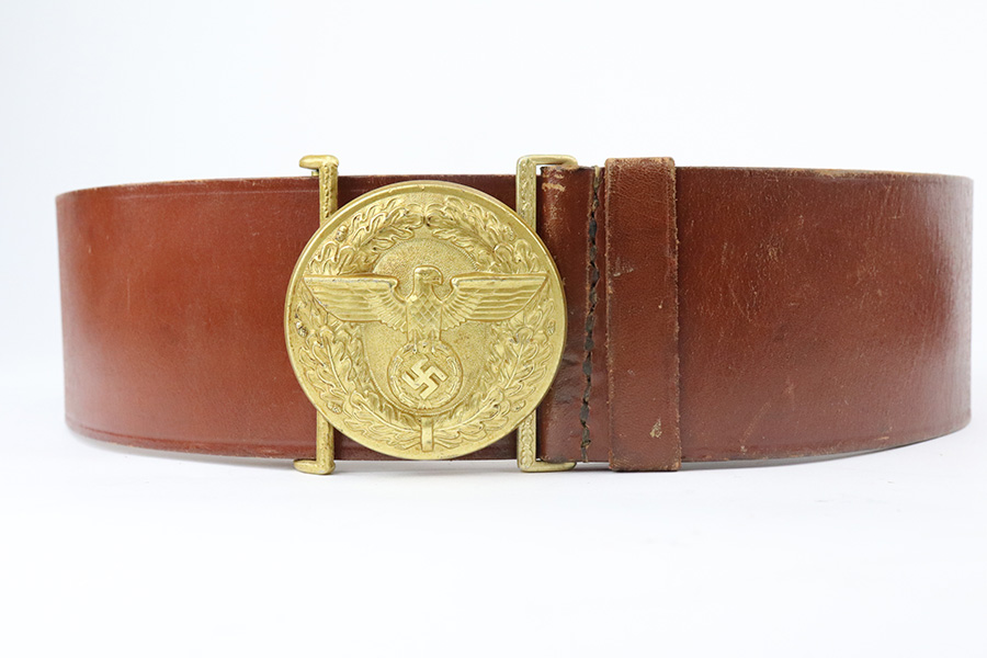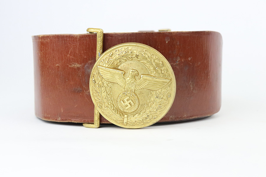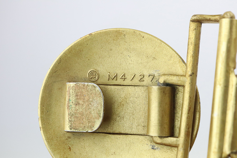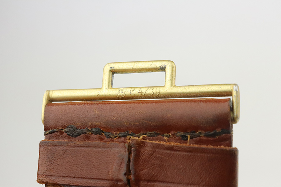 1/4/22 – This is an excellent example of a Nazi Party Leader Belt and Buckle worn by a Nazi official in the Pre- to Early-WW2 period. Would appropriately pair with an RZM or Nazi Party Leader Walther PPK. The belt is in excellent condition with very little sign of use. The leather is soft and malleable. There are just some light surface scuffs on the end where the leather tapers. The set holes are in excellent condition. On the tapered end, there is a “115” ink stamp. There is also a “Croupon 358” makers mark stamped into the leather. The aluminum fitting at the end is gold-washed, features an oak leaf pattern, and has an “RZM M4/39” approval marking. The buckle features the classic Nazi Party Leader Eagle insignia and oak leaf wreath patterning. It has retained nearly all of its original gold wash. All of the metal fittings are completely intact and operable. Just an excellent example of these rare Party Leader artifacts.