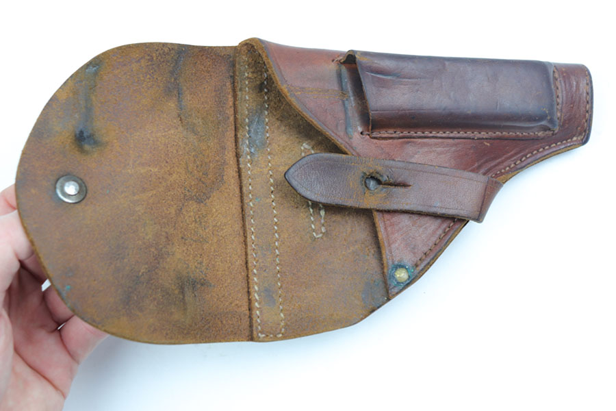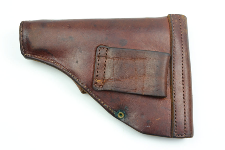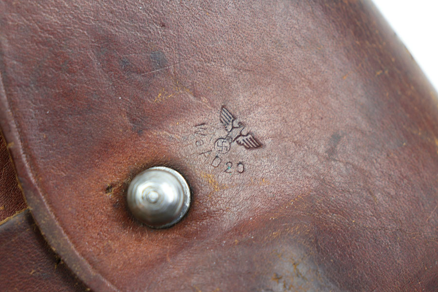 12/30/20 – This is an original French Unique holster from WW2. The front leather has a nazi proof stamp that’s crisp and clear. The leather shows normal signs of use but is generally in great condition. The stitching is all tight and original with no notable flaws.