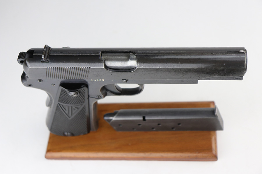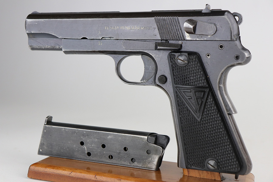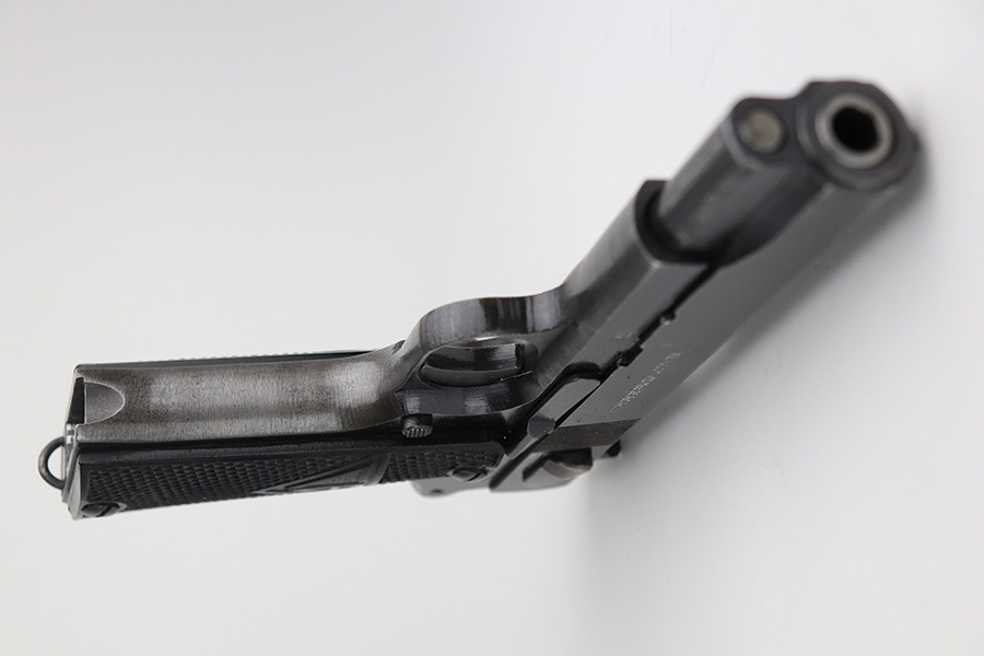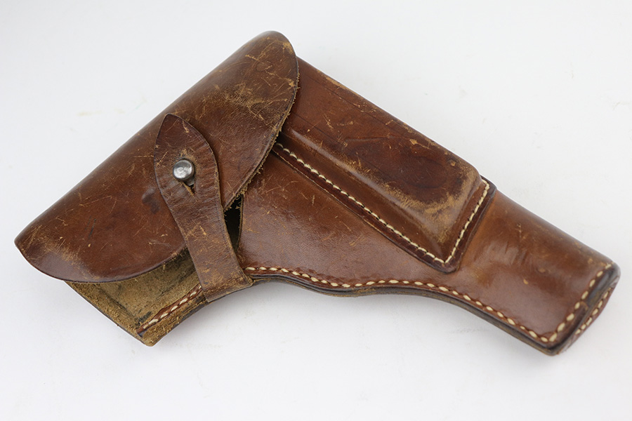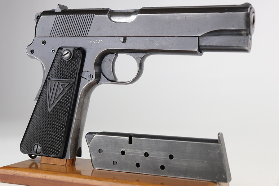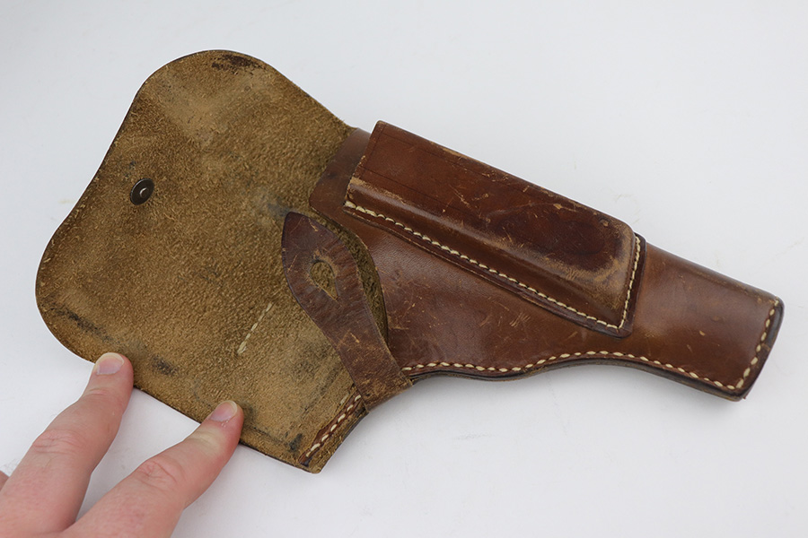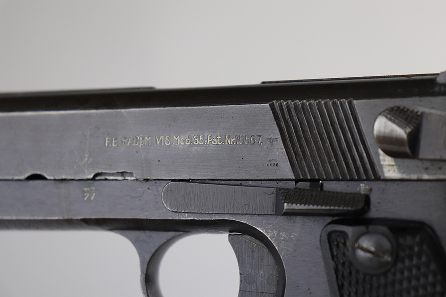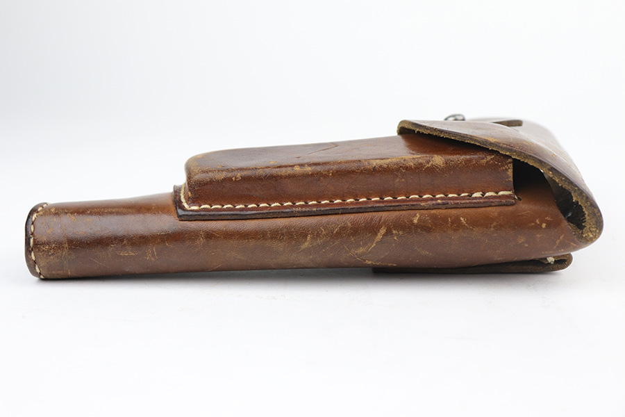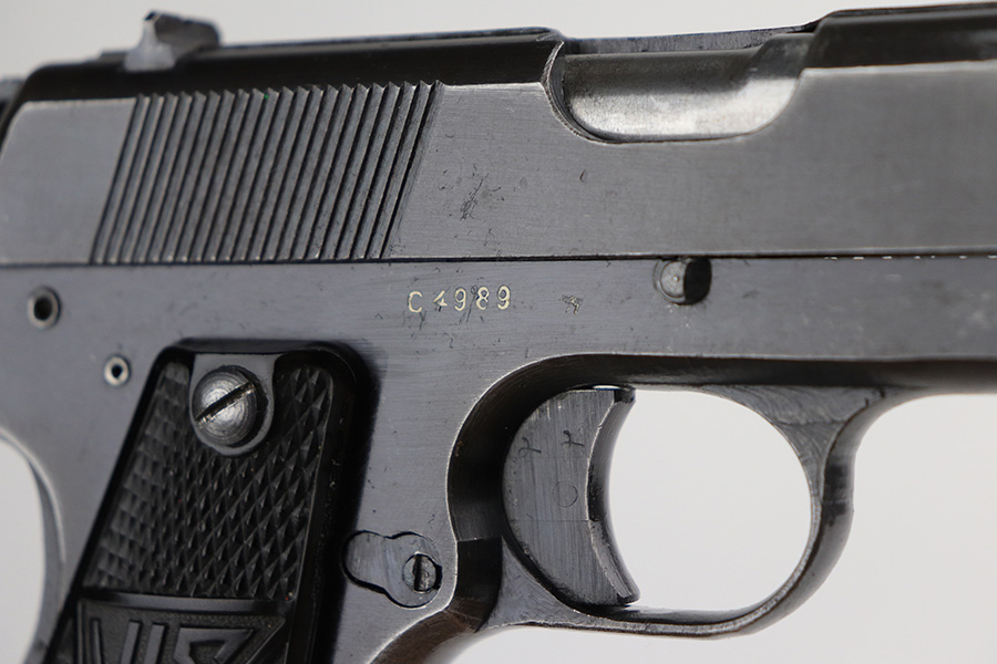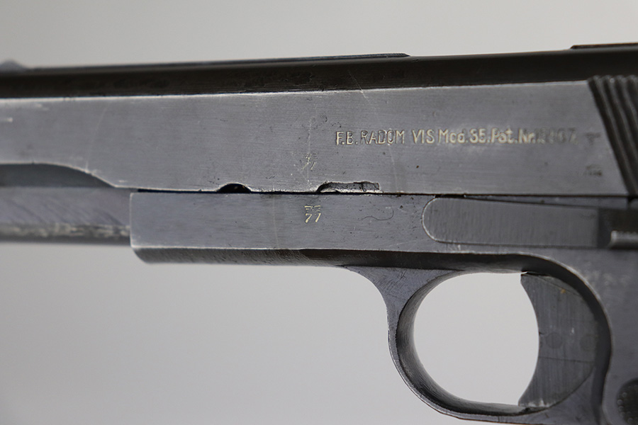 8/24/21 – This is a complete and original Nazi Radom VIS P.35 rig with holster and spare magazine. The pistol has matching numbers throughout with maybe 85% of the blue remaining. It has a nice profile, but most of the bluing loss is on the grip straps. WaA623 proof on slide so completed at Steyr. Nice, original grips with just a few small dings/nicks. One original wartime magazine, and one postwar mag. Comes with a nice original holster which is unmarked, and was slightly cut down internally.