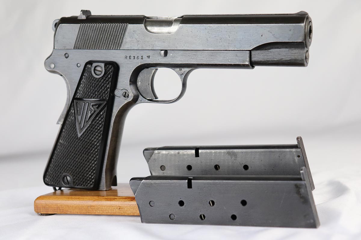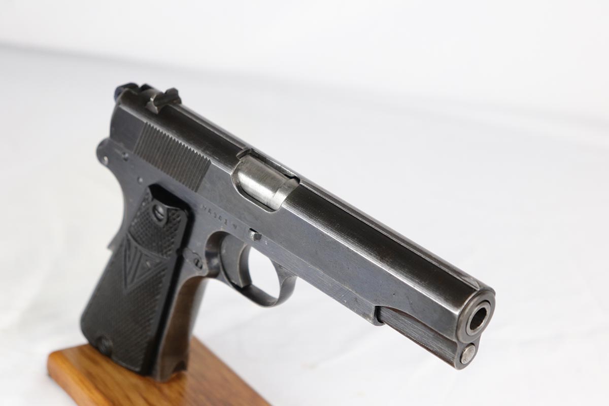 8/6/20 – This is a fully original and matching Radom P.35 rig that was issued to the German Army during World War II. The pistol is fully correct with 93-94% military blue remaining, with most finish loss seen on the straps. The pistol comes with an excellent holster that’s waffen marked and inkstamped. Listing includes two total magazines, both of which are waffen marked. Pistol has excellent grips and bore.