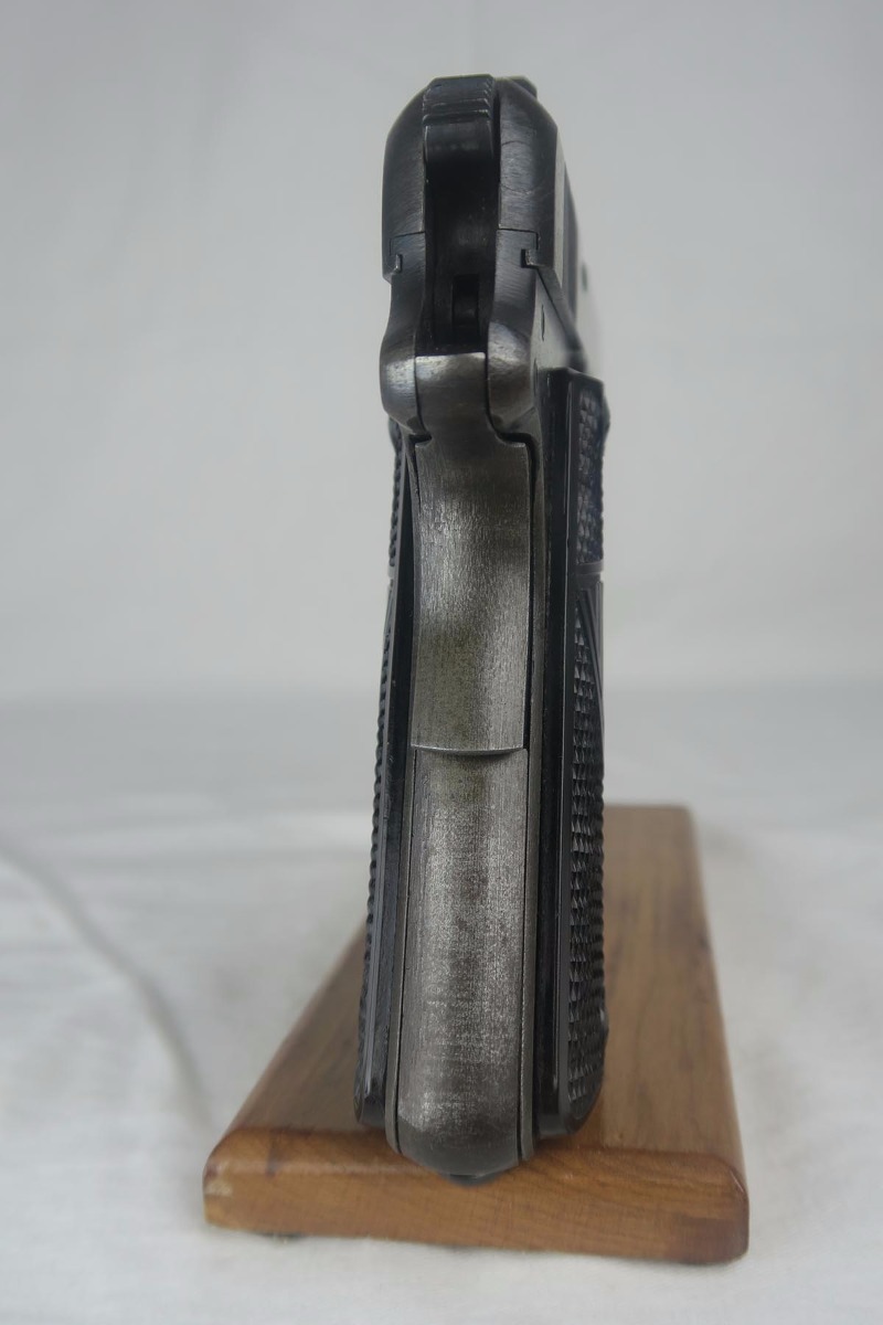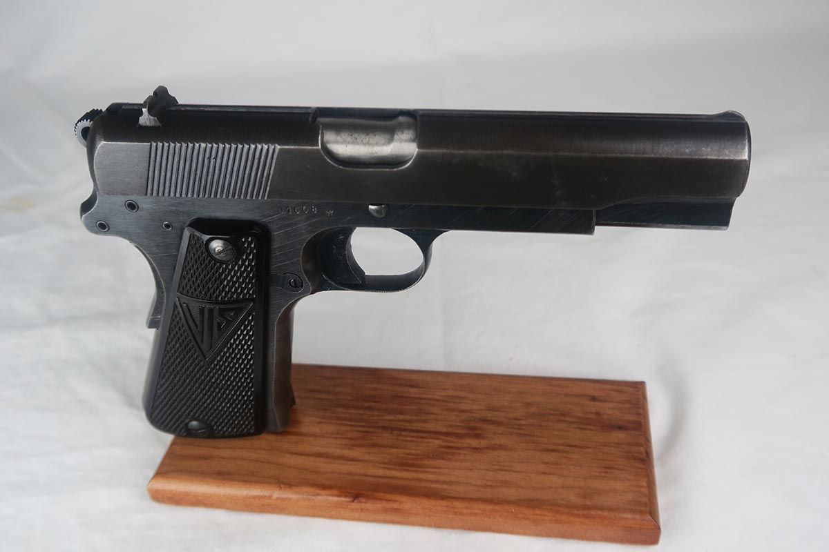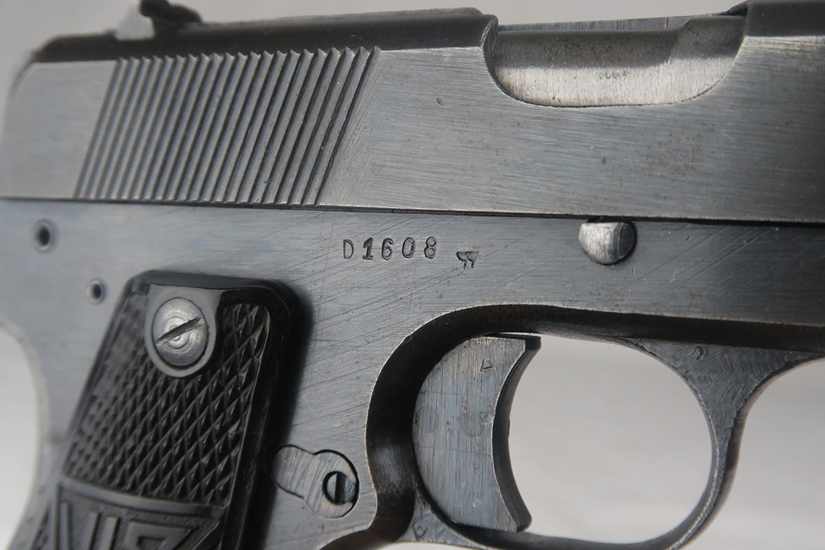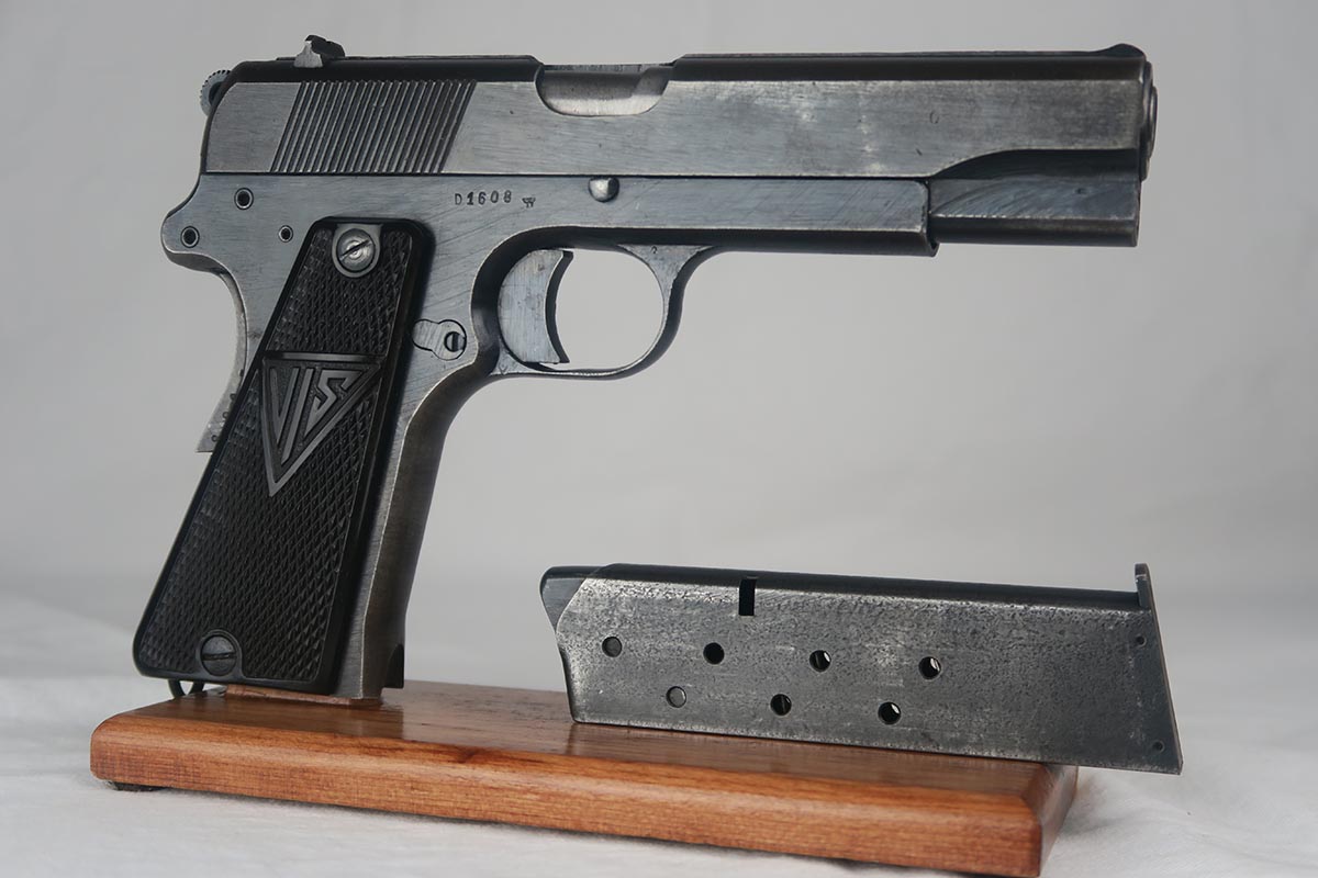 8/10/17 – This is a WW2-era Nazi Radom vis 35. It is all original and matching. Finish rates in the low 90’s with some wear on the slide and thin straps. Later two-lever variation. Eagle/77 on frame and slide. Waffen marked mag and nice grips. Minty bore.