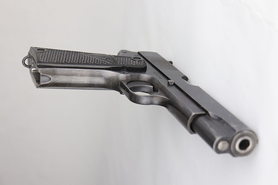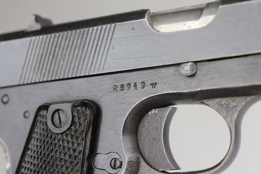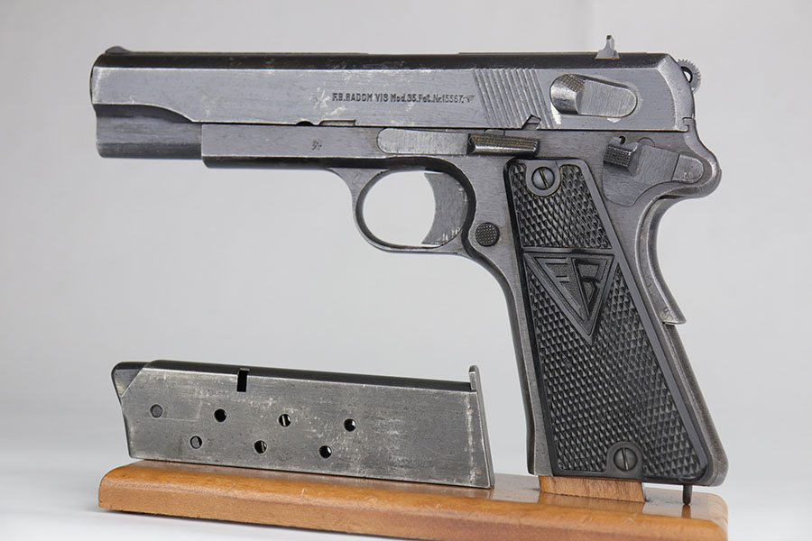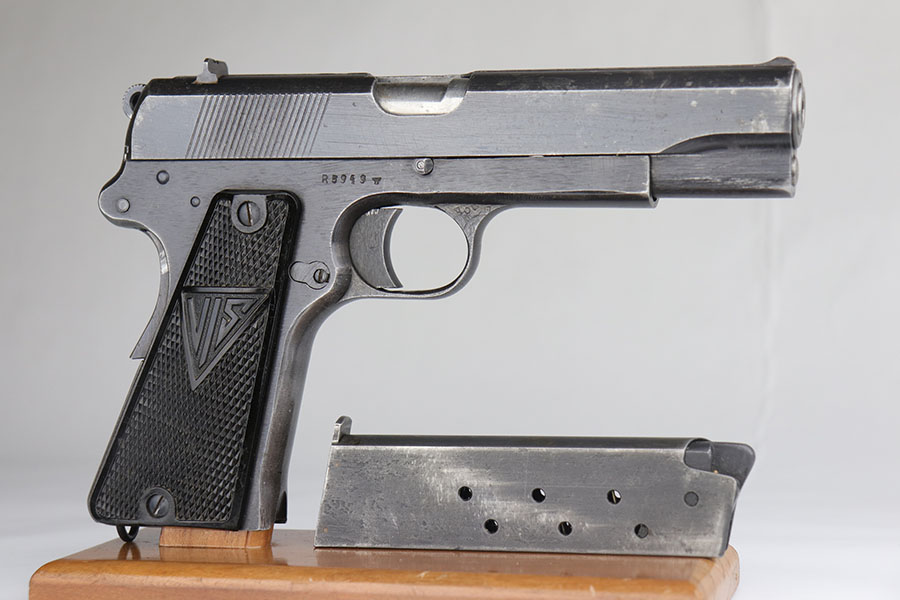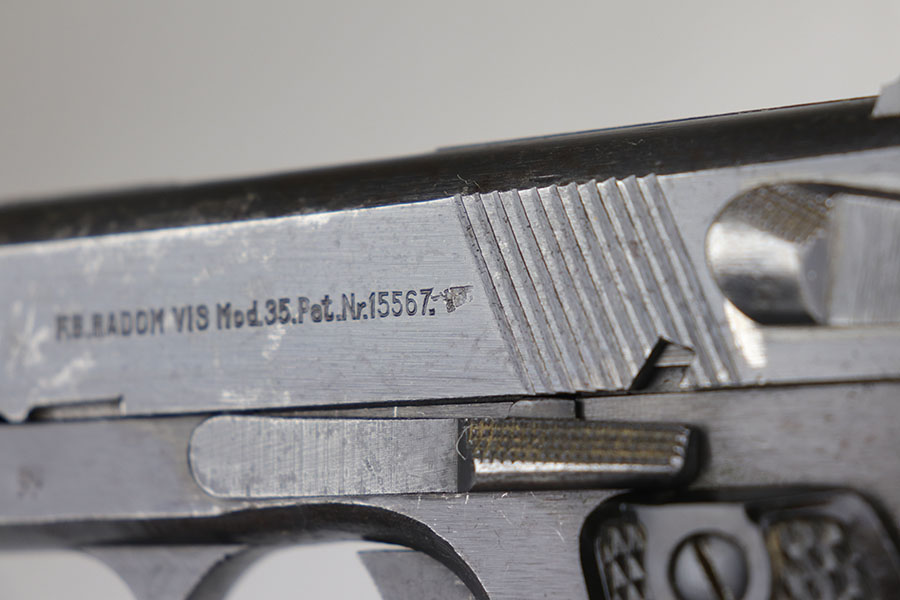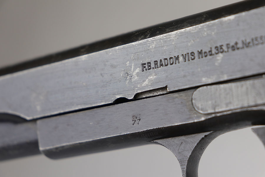 8/3/20 – This is an all matching and original Nazi Radom VIS 35 with three-lever design. The pistol has a decent profile with some speckling of finish loss on the left side of the slide, but most of the wear is on the straps, especially the front strap. Excellent black plastic grips that have no cracks or chips. Original but unmarked magazine. Terrific bore.