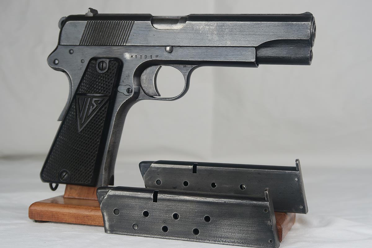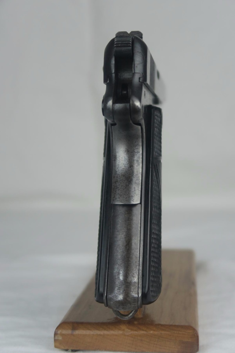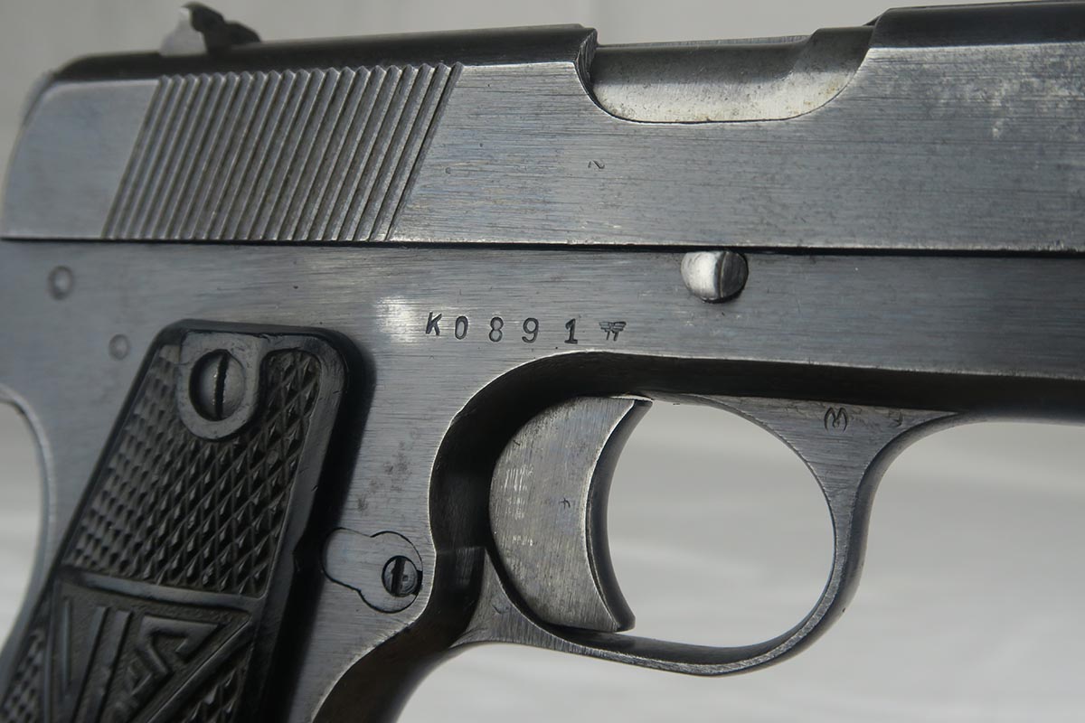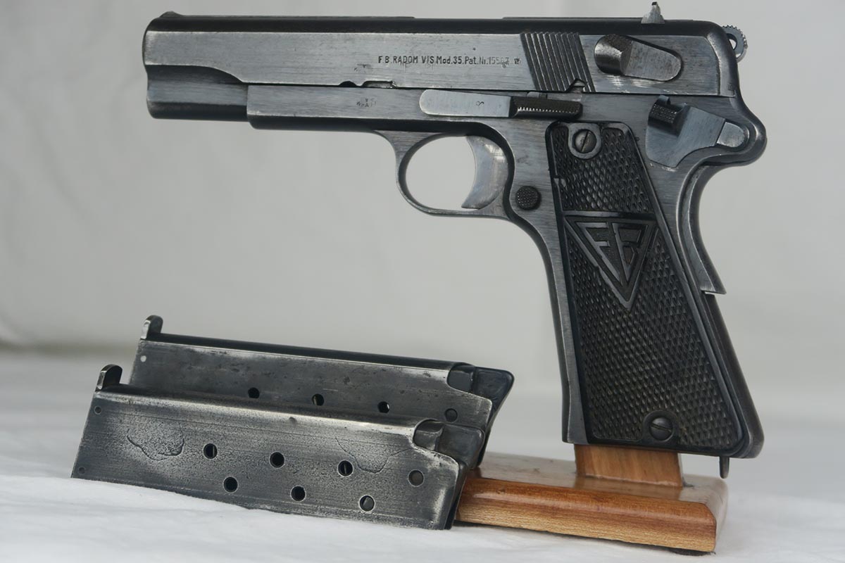7/31/17 – This is a Nazi marked Radom vis 35 rig – all original and correct.  Comes with proper Radom holster with faint internal inkstamp and two total magazines.  One magazine is waffen marked.  The pistol is all matching with about 90-92% blue remaining.  Most of the finish loss is on the straps but there is some thinning on the slide, as well.  Minty bore.  Very good grips with no major flaws.