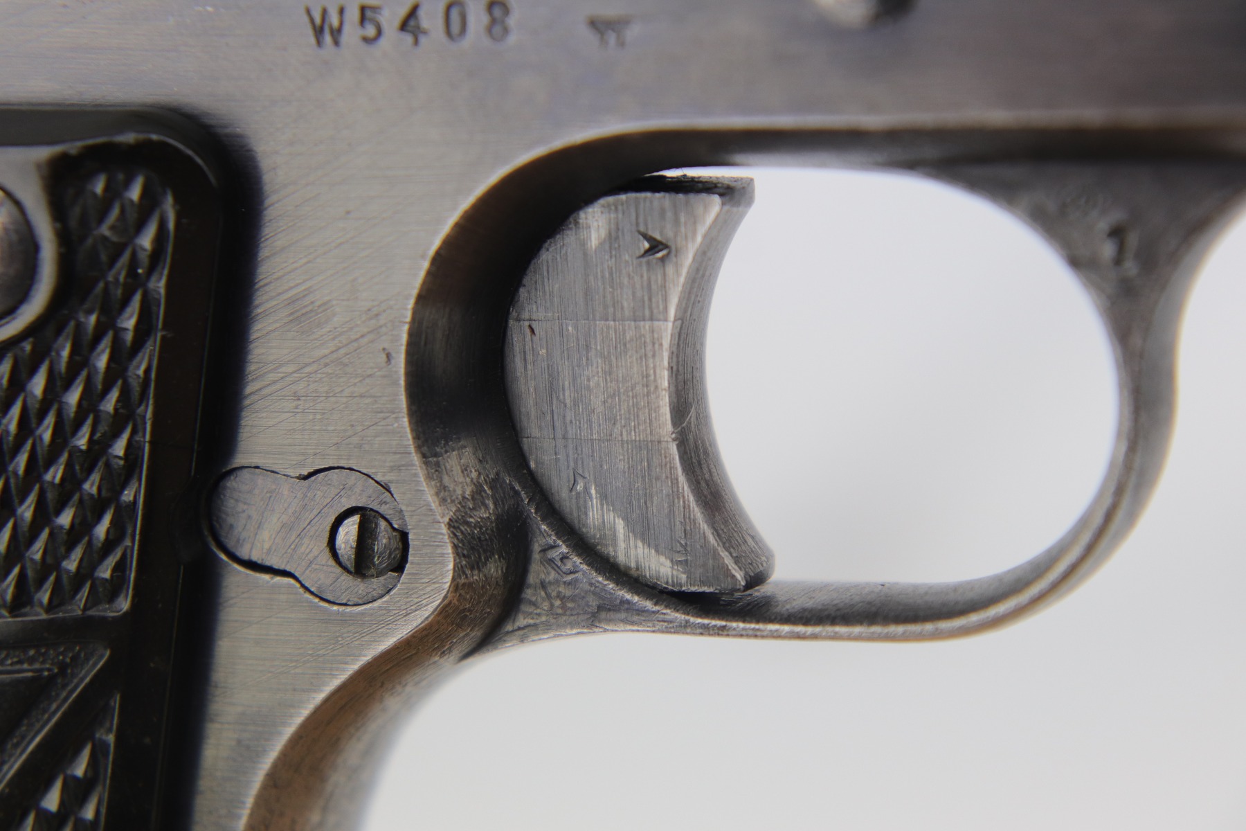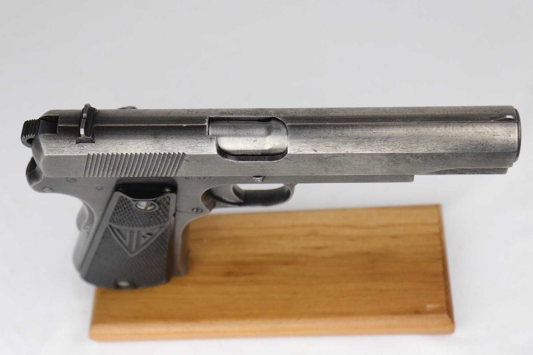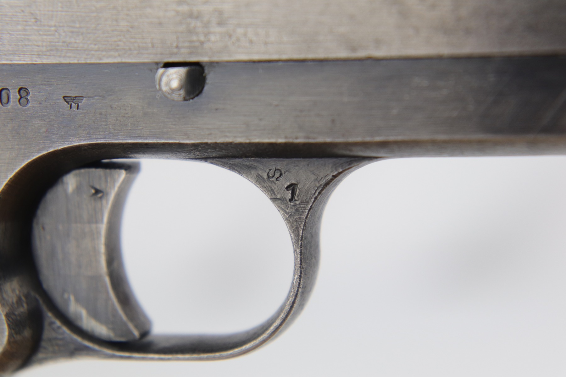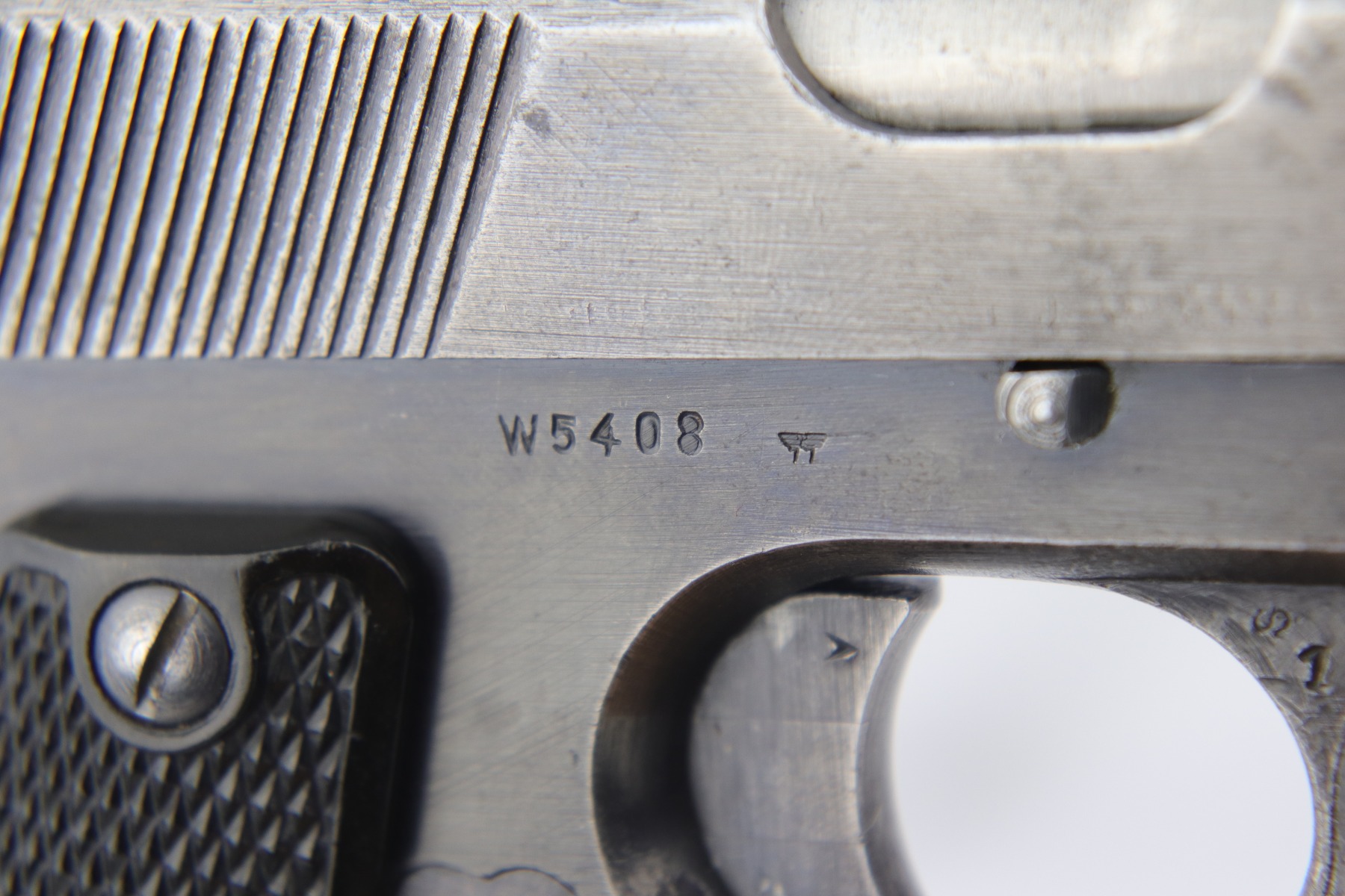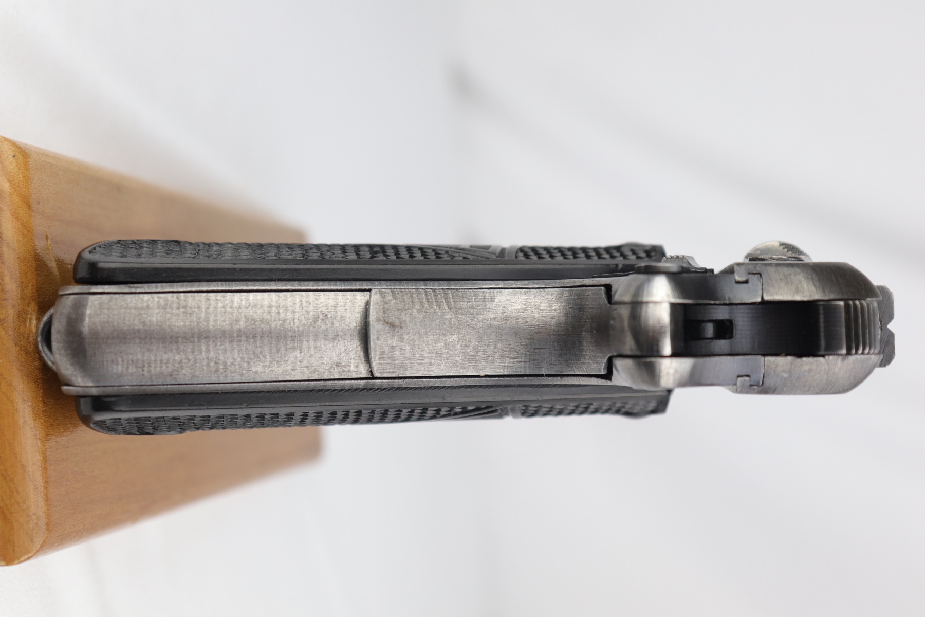 12/18/18 – This is an original Nazi Radom VIS 35 rig with holster and spare magazine. The gun is all matching but the finish is thoroughly thinned throughout. Excellent black grips. Bore is shiny with strong rifling. BOTH magazines are waffen marked and in good condition. The holster shows a fair amount of age and wear, with a couple small holes in the top/back. It has an internal ‘bnz’ ink stamp with 1944 date.