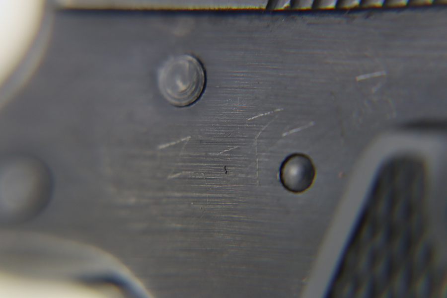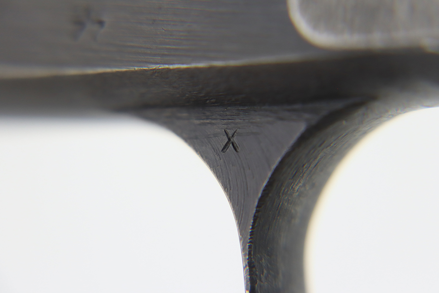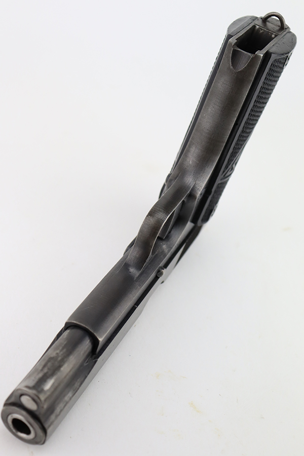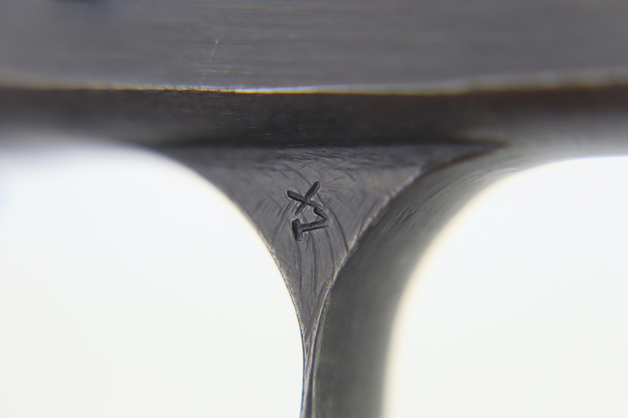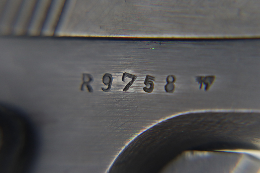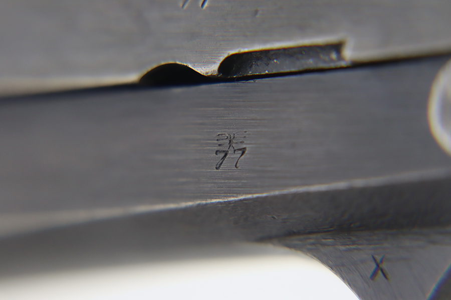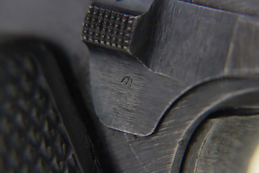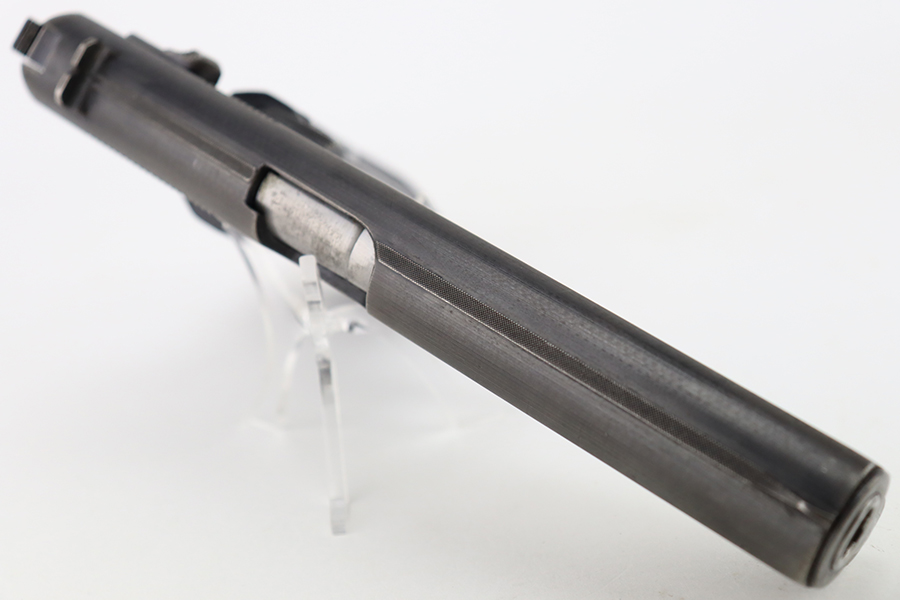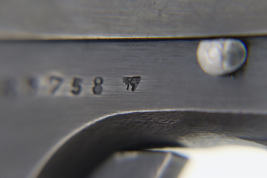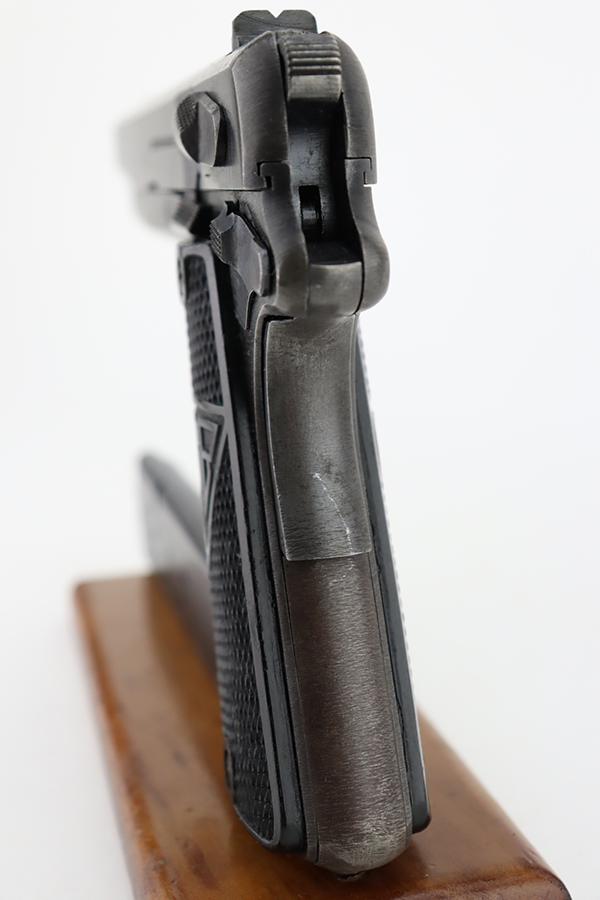 1/26/24 – This is a very nice example of a Radom VIS 35 issued to the German military during WW2. It is all matching with the proper “Waffen 77” and “Eagle 623” military acceptance proofs. This is an earlier variation with 3 levers. It has retained somewhere between 85-90% of its original finish. There is general high edge wear and some thinning on the grip straps. The date “3-7-13” is very lightly scratched onto the right side of the frame. Fitted with very nice period-correct black bakelite grips. Comes with a waffen proofed magazine. Mint bore.