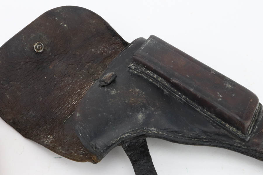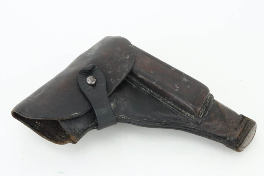 6/14/24 – This is a nice example of a Radom VIS 35 issued to the German military during WW2. It is all matching with the proper “Waffen 77” and “Eagle 623” military acceptance proofs. This is an earlier variation with 3 levers. It comes as a rig with a fairly worn period-correct holster (replaced belt loop). The gun has lost the majority of its high polish finish with some areas of light spotty oxidation here and there. Fitted with very nice period-correct black bakelite grips. Comes with an un-proofed magazine. Very nice bore with great rifling.