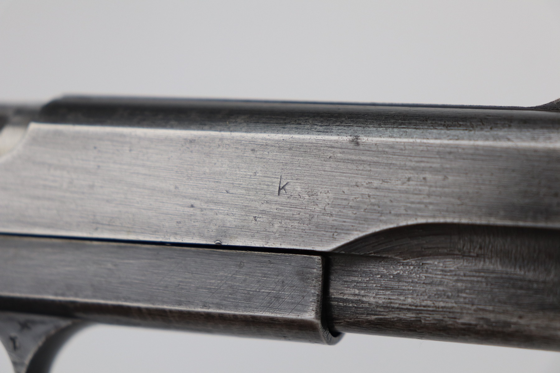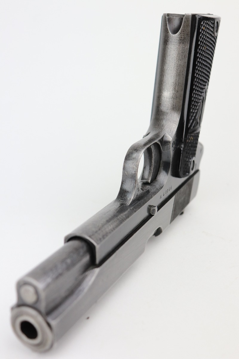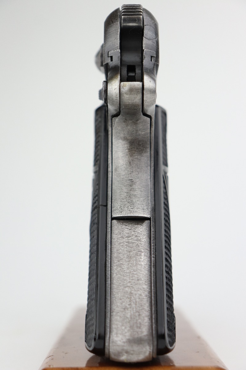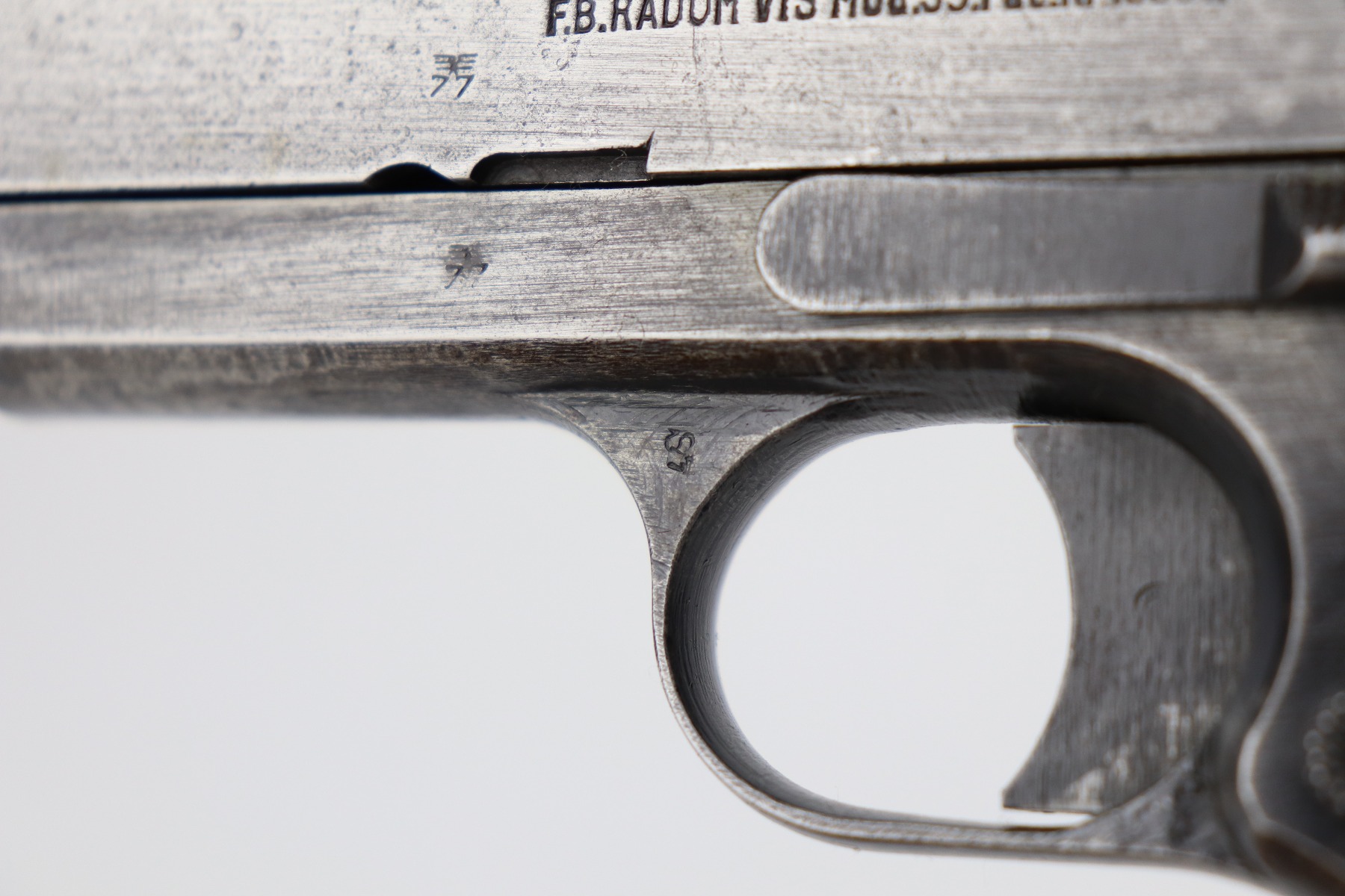 3/23/21 – This is an example of a Radom VIS Model 35 issued to the Nazi military during WW2. It is all matching and has the proper “Eagle 77” military proofs. It has lost almost all of its original bluing, only retaining about 15%. There is just a little bluing left on the frame. It comes with nice grips – hairline crack in the left panel. Also comes with a waffen-proofed magazine. The bore has good rifling with very minor pin-pricking in the grooves.