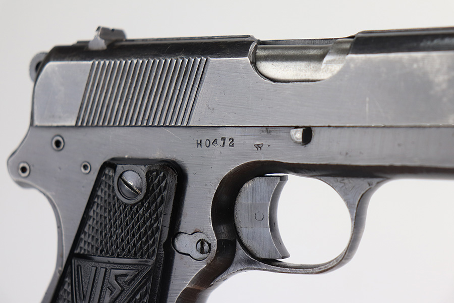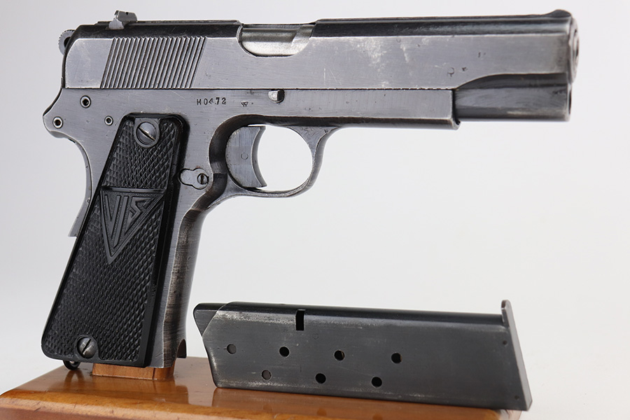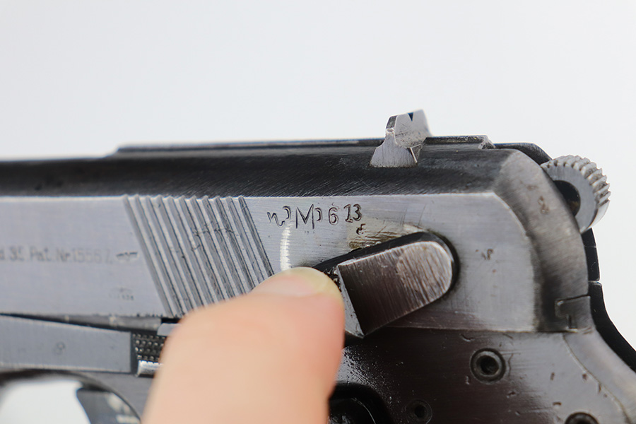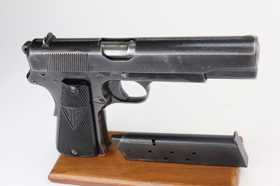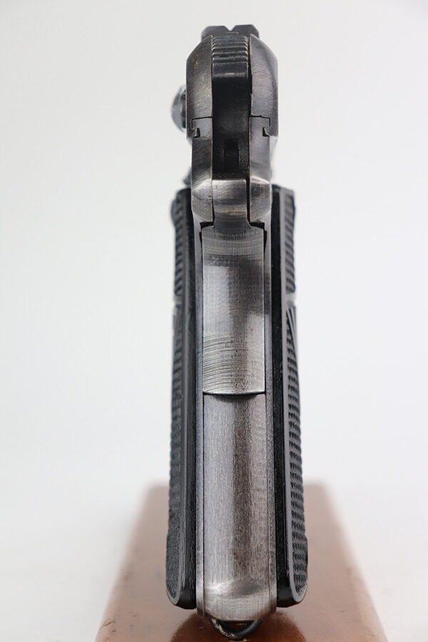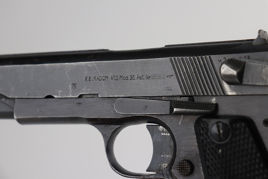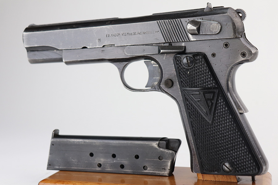 6/17/21 – This is a very nice example of a Radom VIS 35 issued to the Nazi military during WW2. The gun is all matching and has the proper Nazi military proofs. It has retained about 92-93% of its original military finish. There is minor thinning on both straps and minor wear around the high edges of the slide. There is a small area of spotty wear on the right side of the slide and a few very light scratches on the left side of the slide. Comes with excellent grips and a waffen-proofed magazine. Excellent bore – shiny with strong rifling.