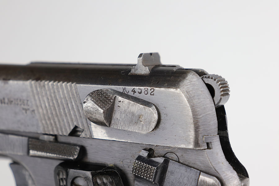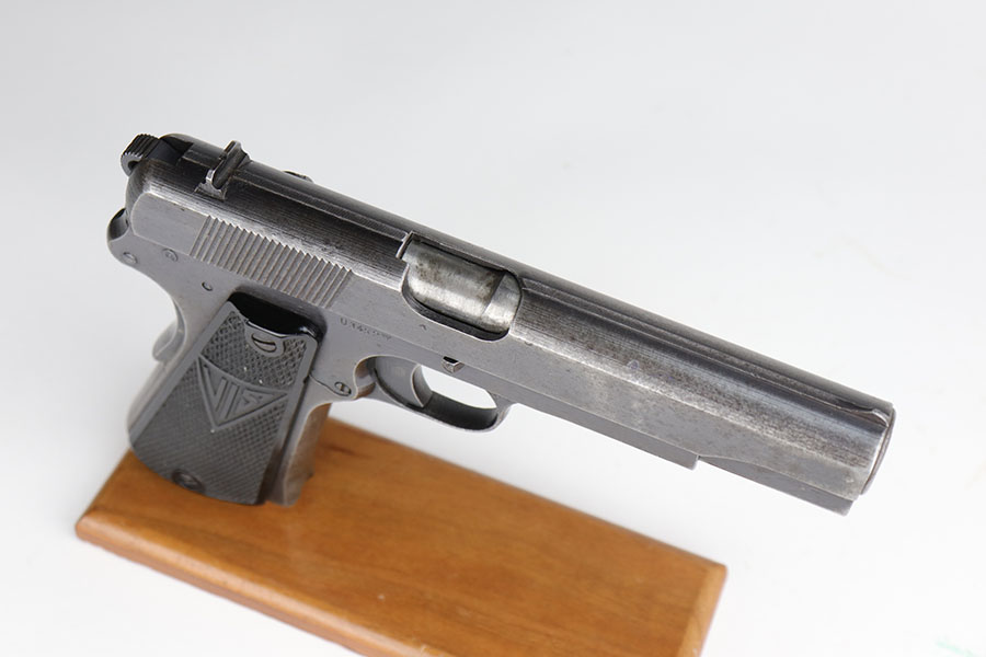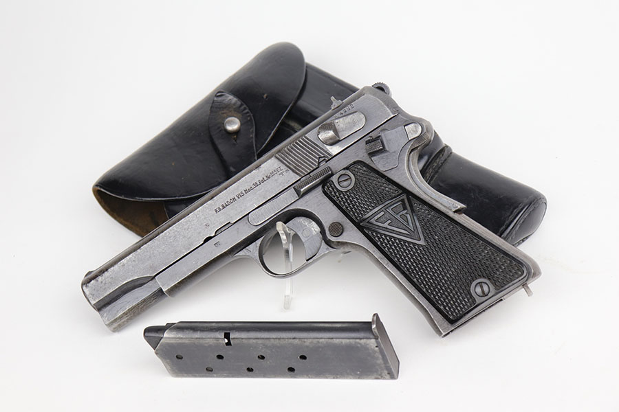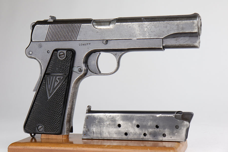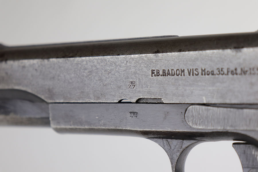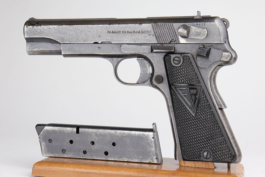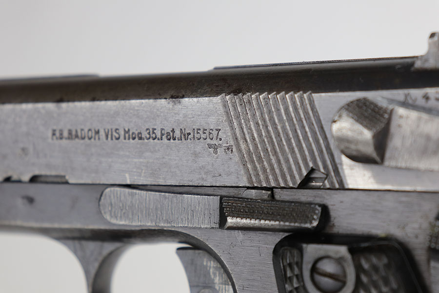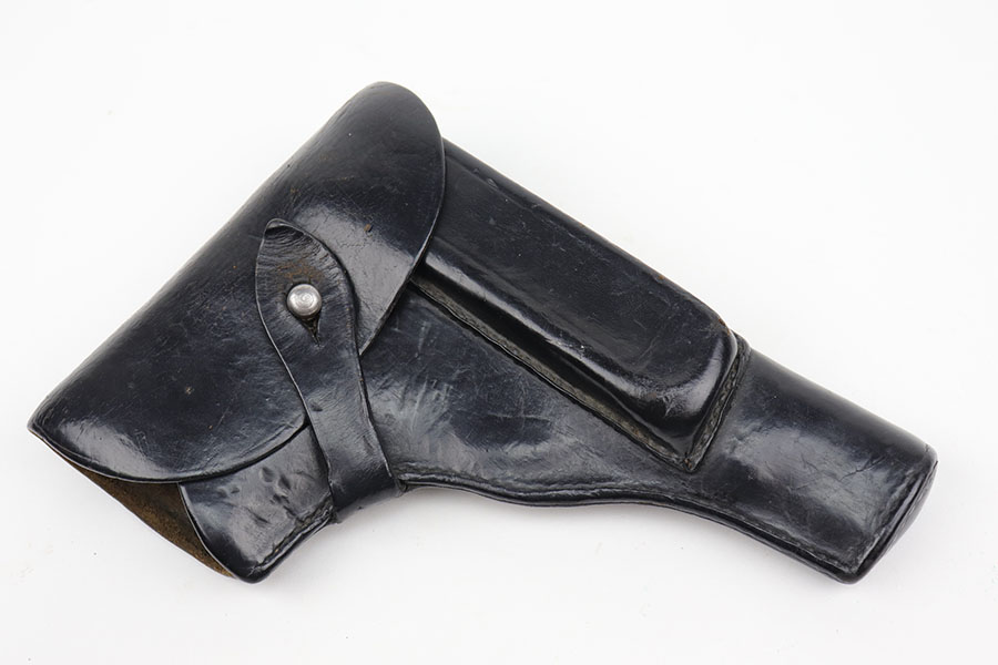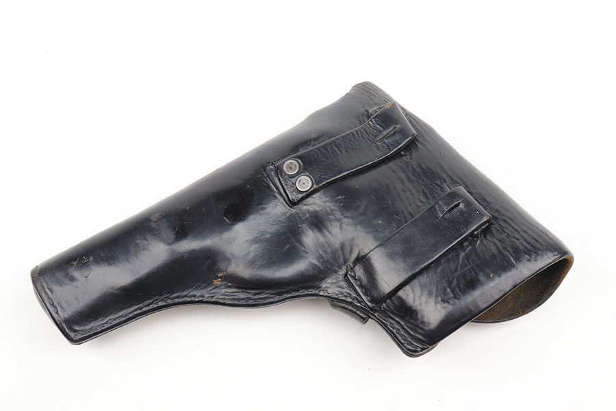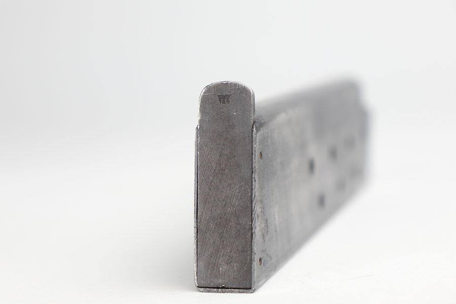 4/30/21 – This is a matching and original Radom VIS Model 35 that was issued to the German Army and comes with original holster. Matching slide, frame and barrel. The original finish is obviously thin or worn in most areas, and there’s some freckling on the front strap and forward portion of the left side of the slide. Nice black plastic grips with no major cracks or chips. Minty bore, so this one would make a great shooter. Magazine has waffenamt on base. Holster is in decent shape with no holes or tears and is unmarked.
