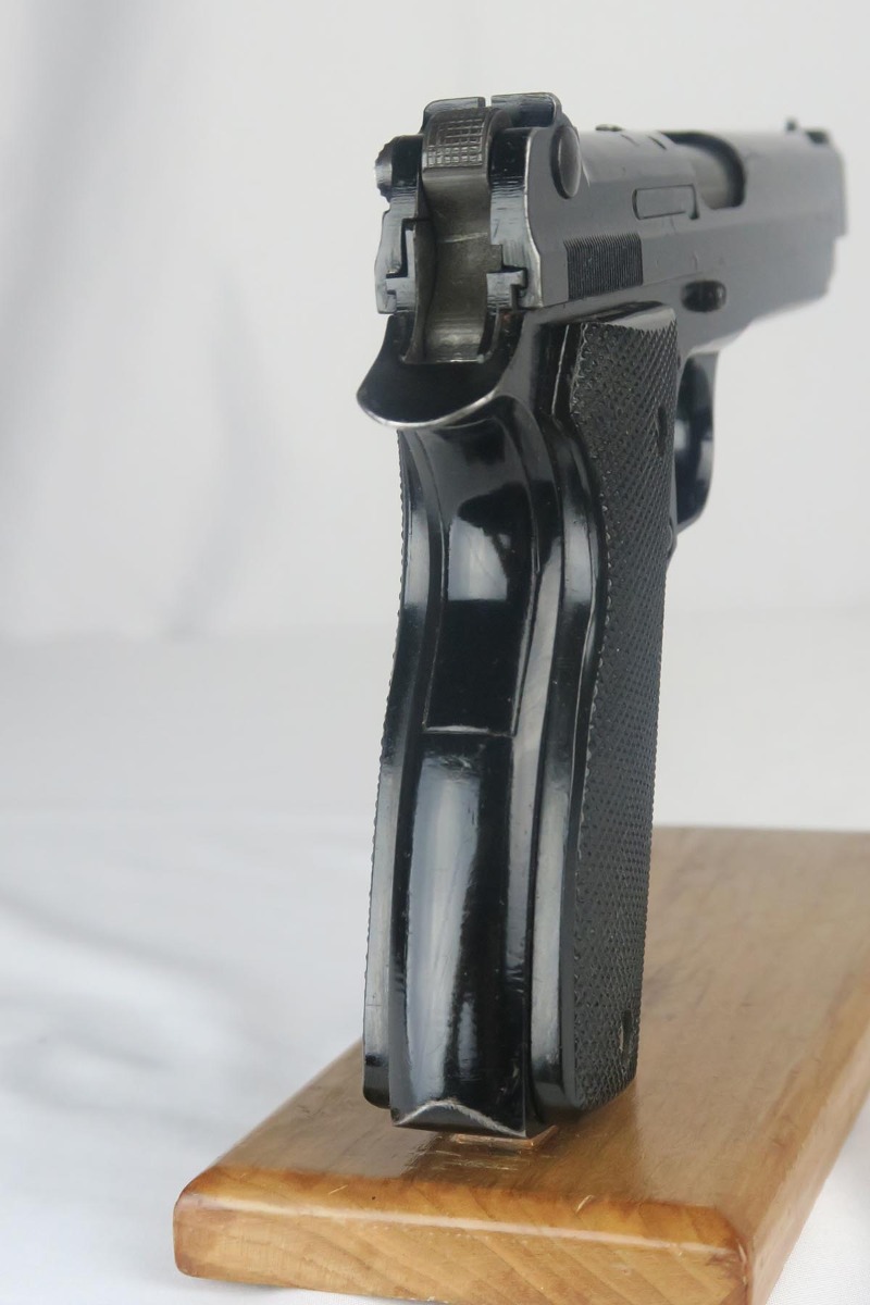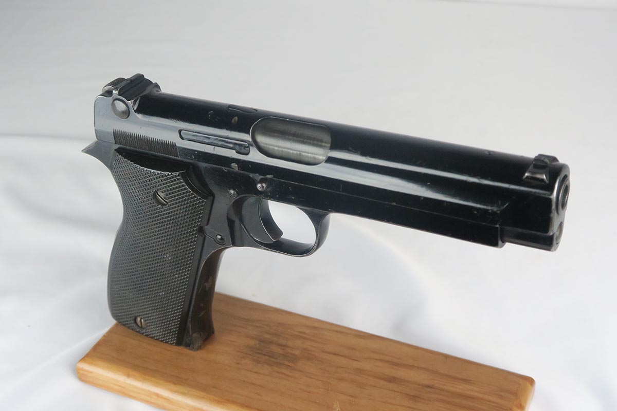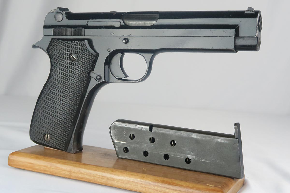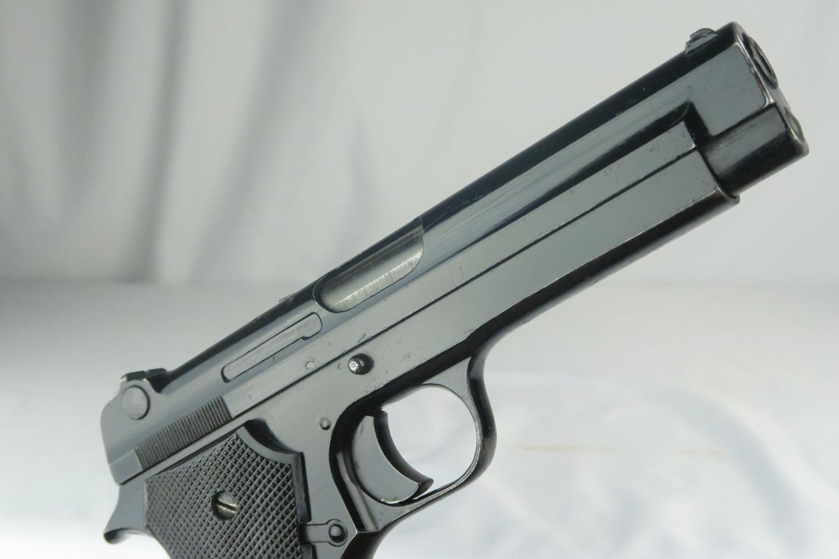 1/9/18 – This is a M1935A manufactured by SACM (Societe Alsacienne Construction Mecanique) in Cholet, France. It is Nazi-marked E/WaA251 on the left side of the slide, making this the more common 2nd variation model of these pistols. Overall, they remain fairly scarce for German Army pistols of that time, with only about ~24,000 produced. The serial dates this one to the earlier end of the range, likely produced somewhere around 1942. The original finish is about 92-94%, with the majority of the wear found on the found strap. All original and correct with a strong bore.