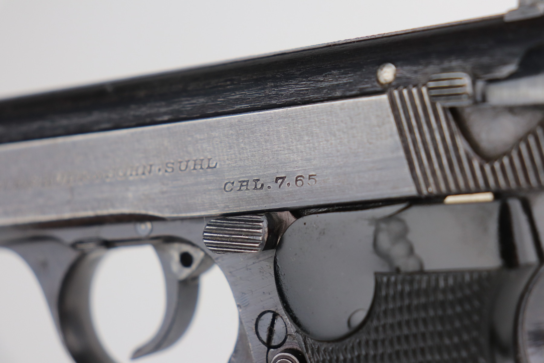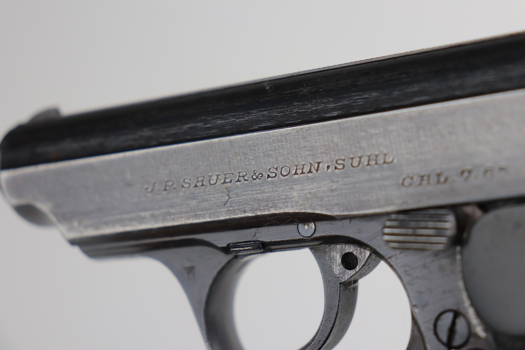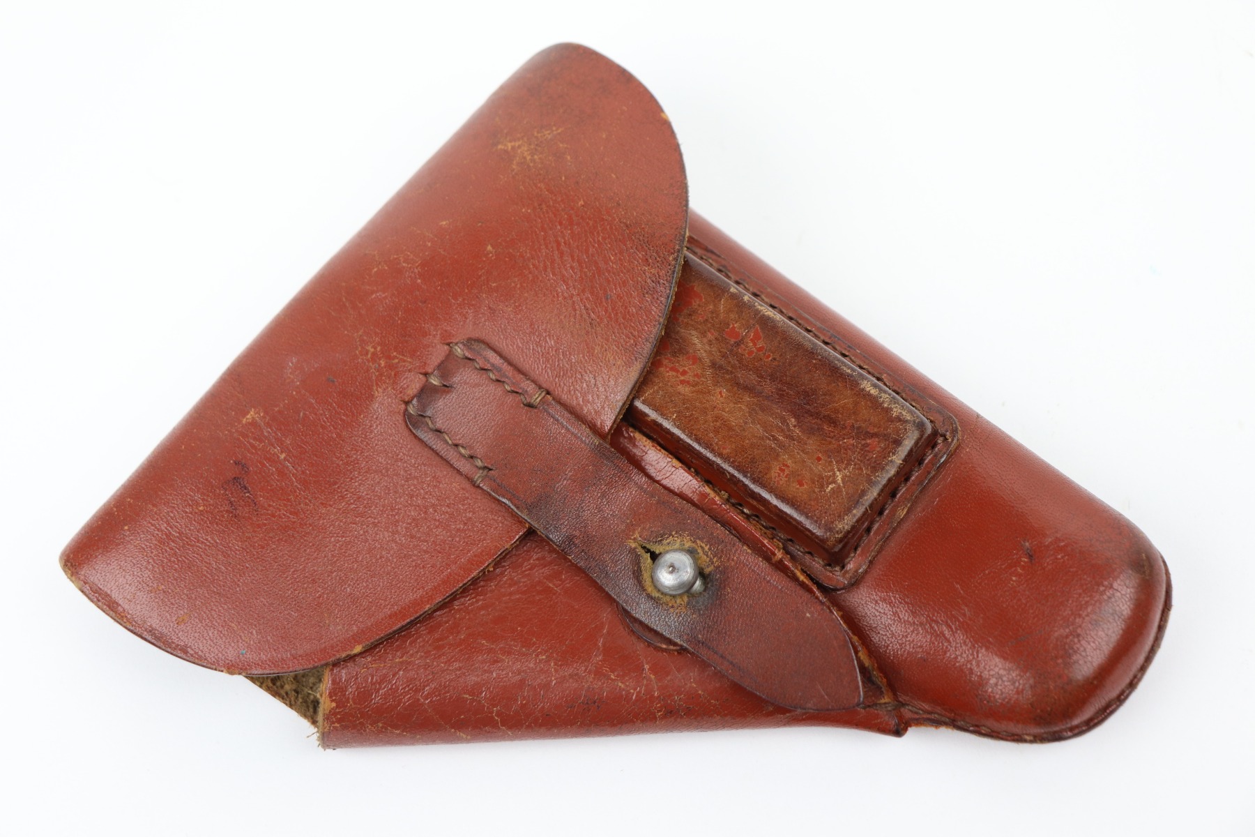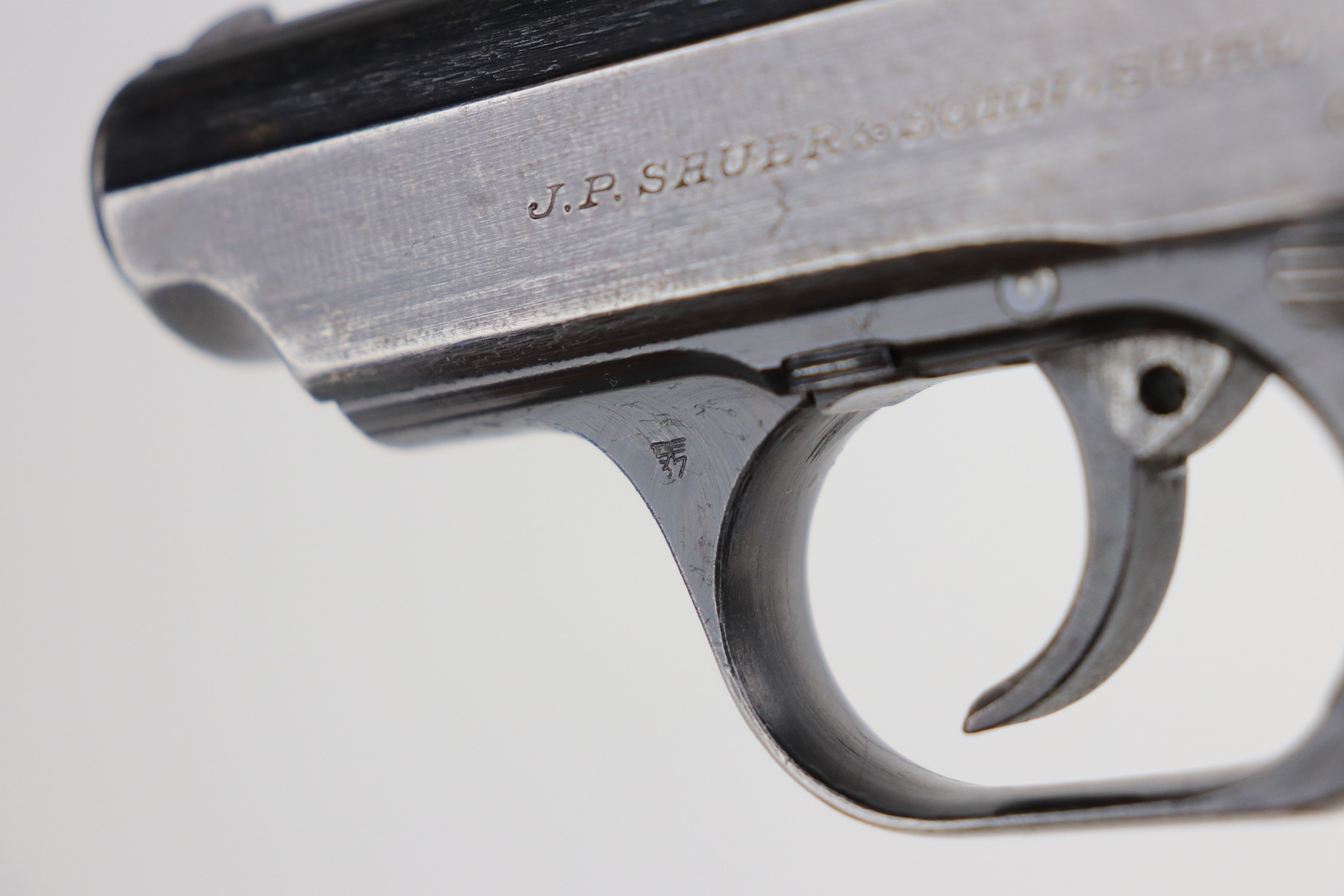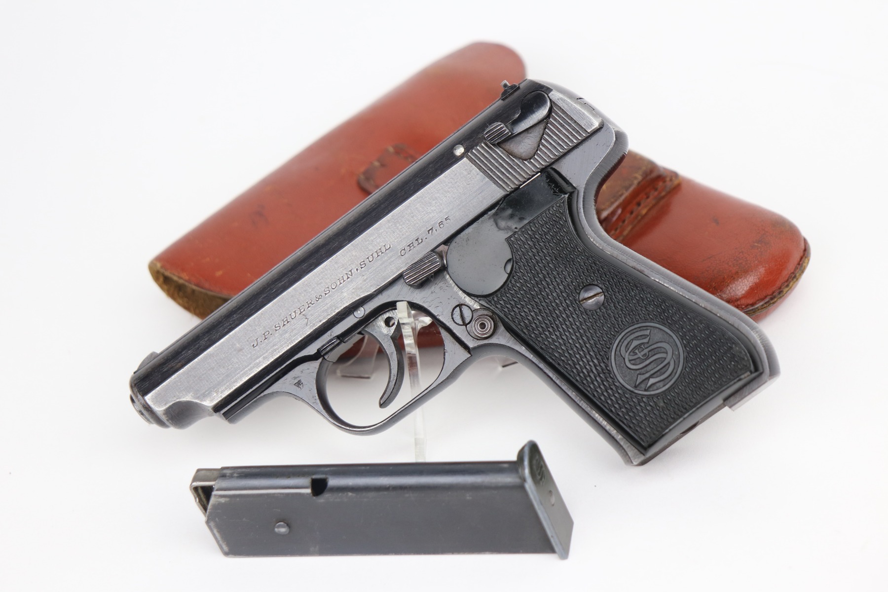 4/28/21 – This is a nice example of a Sauer 38h Rig issued to the Nazi military during WW2. The gun is matching and has the proper “Eagle 37” military proof. The rig comes with an unmarked holster and a proper wartime magazine. The gun has retained roughly 75% of its original finish. There is minor wear on the high edges in general and spotty wear throughout, concentrated on the slide and straps. There is an area of wear on the right side of the slide. Comes with excellent grips. The bore is excellent – shiny with strong rifling.