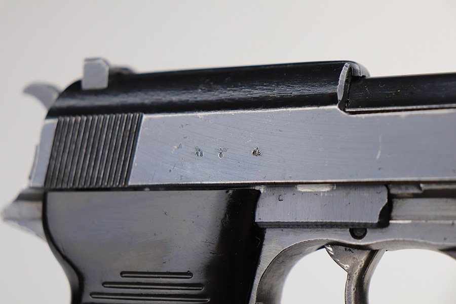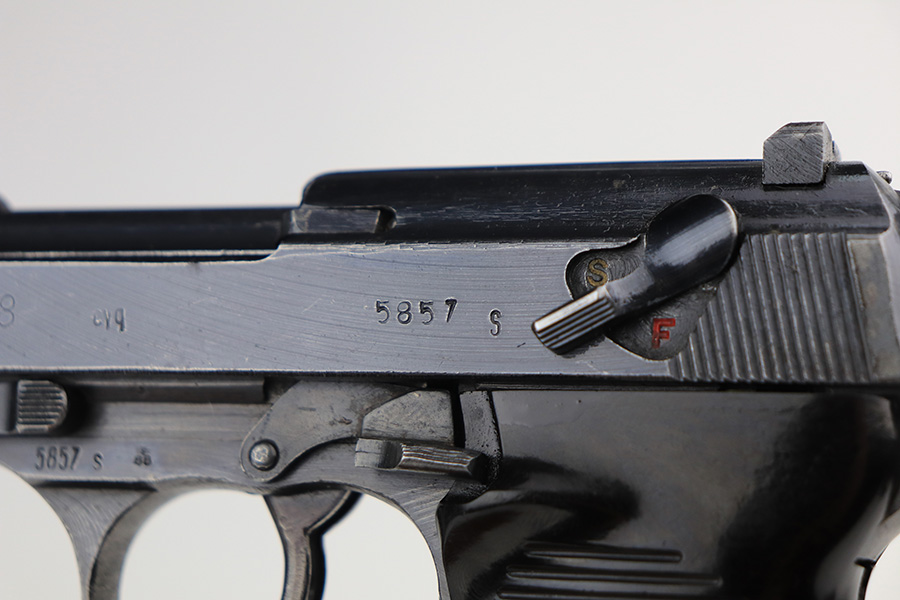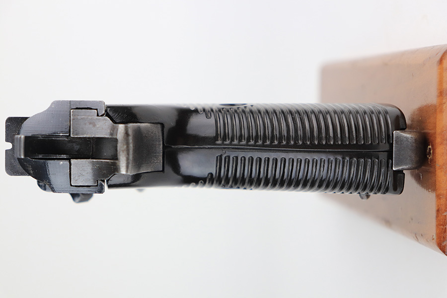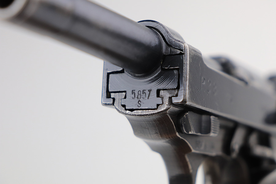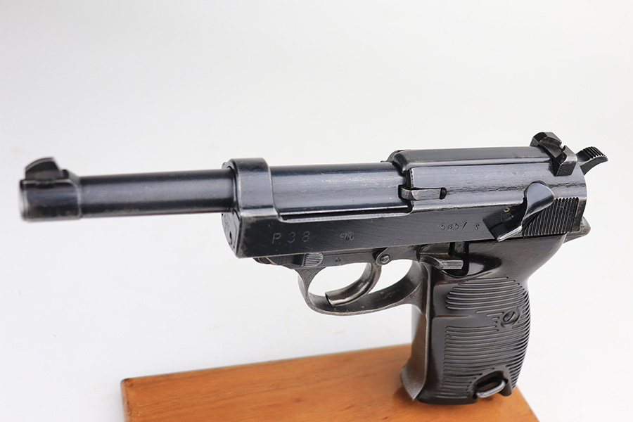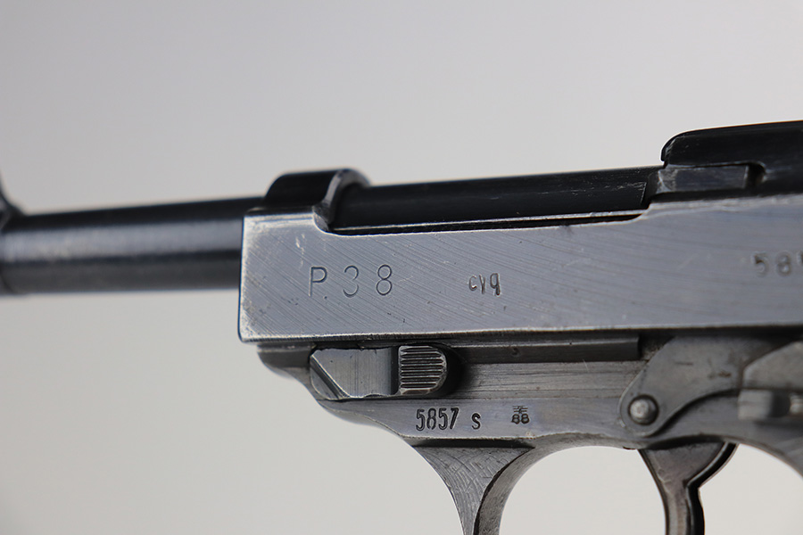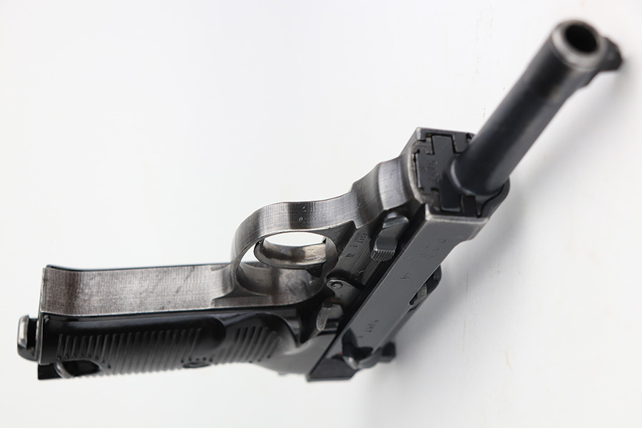 12/23/21 – This is an all matching and original Nazi Spreewerk P.38 from 1944. It has a very nice profile with minor edge wear on the front edges of the slide, but most of the overall finish loss is on the front strap. Excellent bore and good mechanics. Excellent black grips with no cracks or chips. Unmarked magazine.