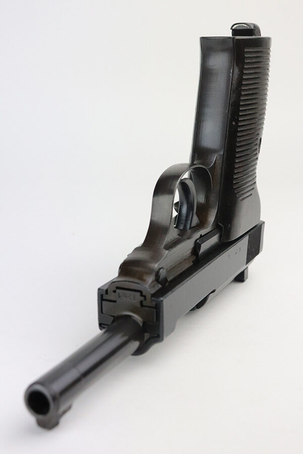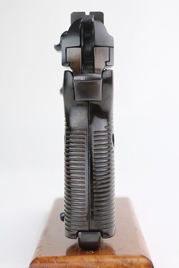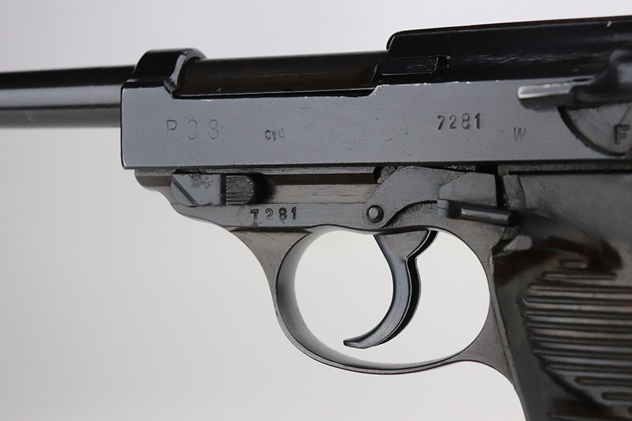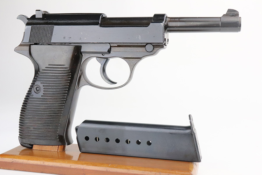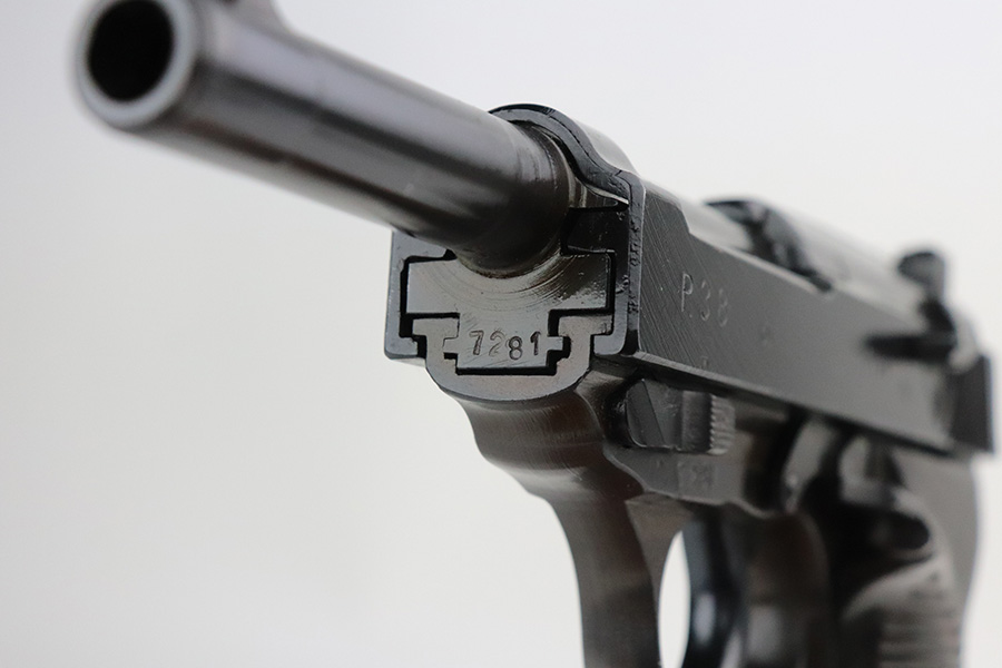 8/2/21 – This is a very nice example of a Spreewerk P.38 that was originally issued to the Nazi military in 1944. It is all matching and has the proper “Eagle 88” military proofs. It was then reworked by the East Germans after the war, as evidenced by the East German proof on the left side of the frame. The barrel is a replacement, as it is marked “Crown N” and is numbered to match. It comes with a matching magazine that we assume was done when it was reworked. Possibly a police-issue. When it was reworked, it was refinished. It has retained virtually all of its new finish with some very tiny handling marks here and there. Mint bore. De-cocker is functional.