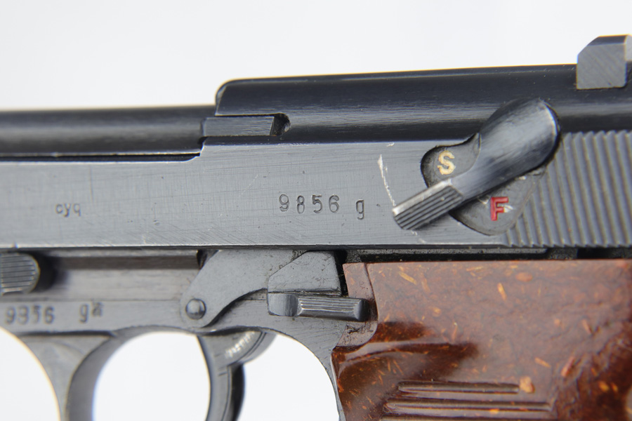 1/25/19 – This is a very nice Spreewerke P.38 that was manufactured in September of 1943. All matching and original, the bluing rates at 96-97% with majority of the thinning on the front strap or near the muzzle. Minty bore and beautiful, bright red grips.