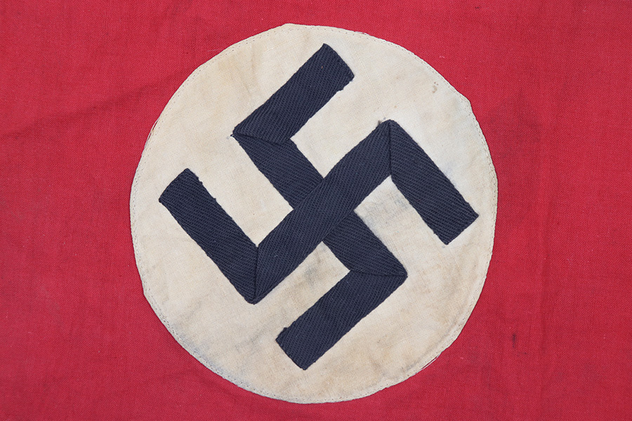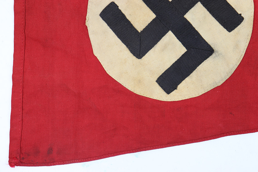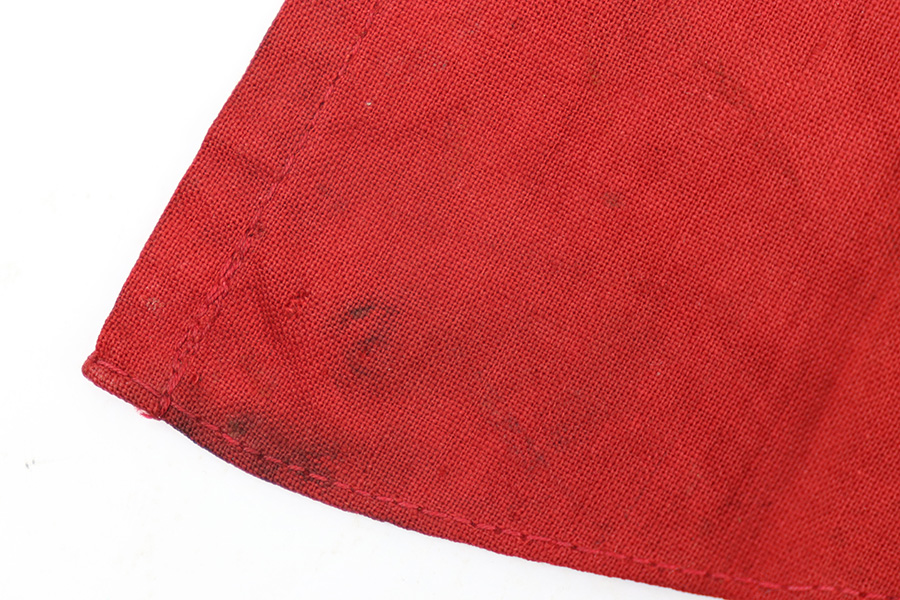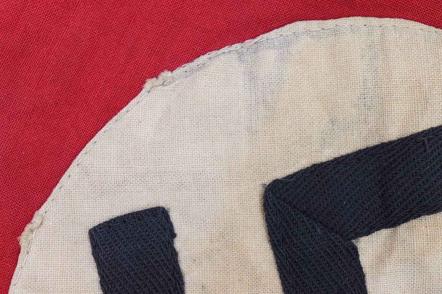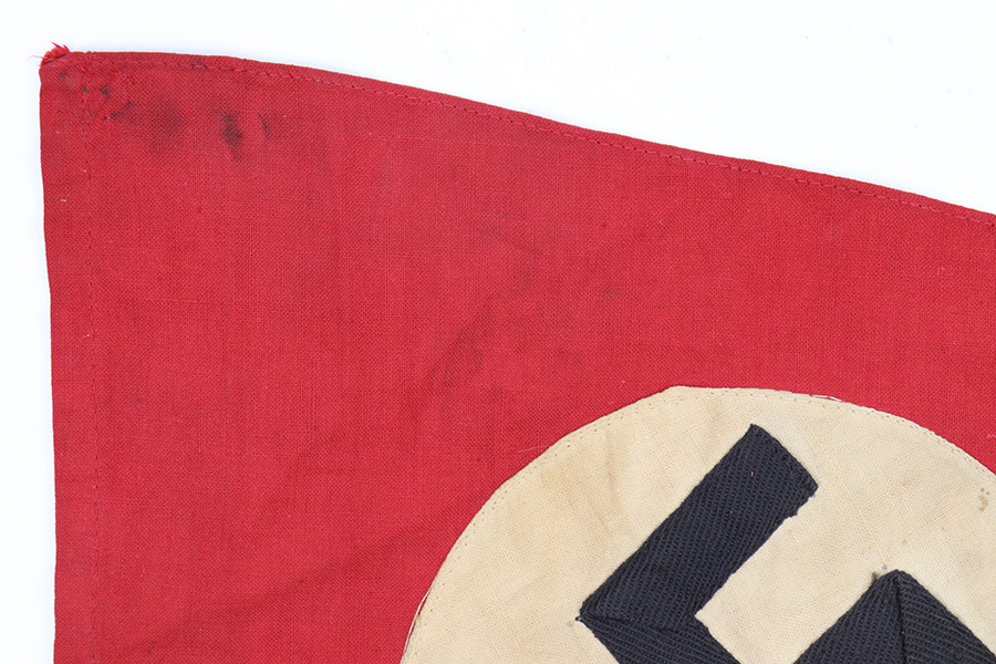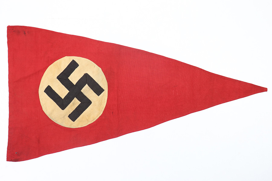 10/14/22 – This is an original WW2 German Vehicle Pennant flag. The flag is double sided with a sewn-on white circle and sewn-on swastika. Great condition with some natural wear but no major stains or issues. Excellent stitching throughout. Measures about 20 inches long.