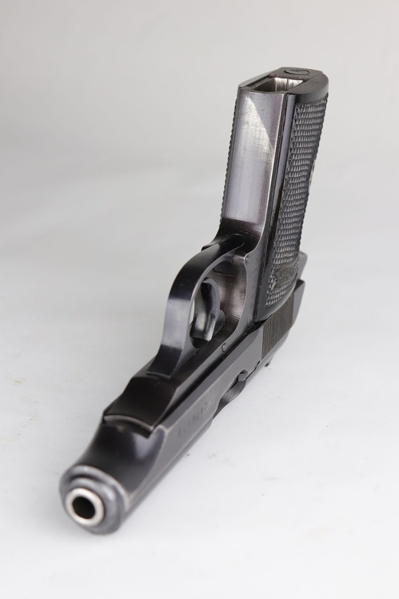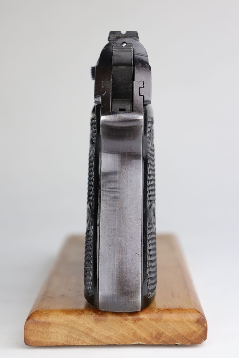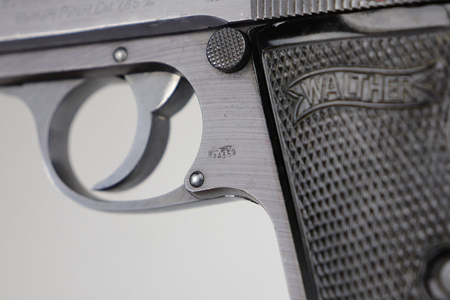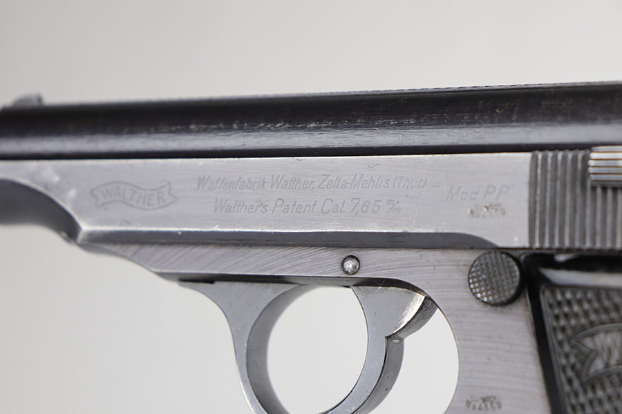 4/24/20 – This is an original Nazi Army Walther PP pistol, manufactured in 1943. The left side of the frame and slide are “Eagle 359” waffenamt. The gun is excellent condition. The original bluing rates about 92%. There is some thinning on the back strap, a mark on the front strap, wear on the high edges, and a few marks on the left and right side of the slide. The grips are original and excellent. It comes with a period-correct, wartime Walther magazine. The bore is minty – shiny with strong rifling.