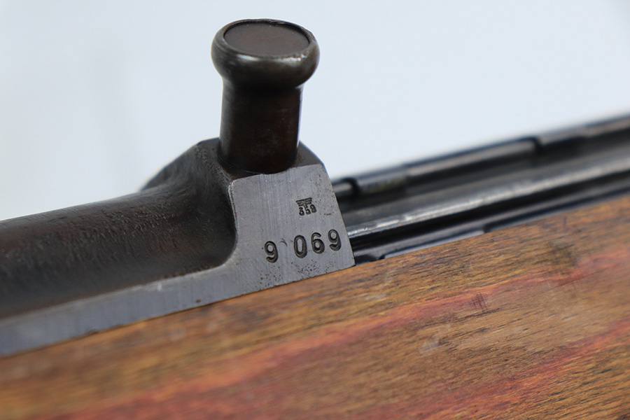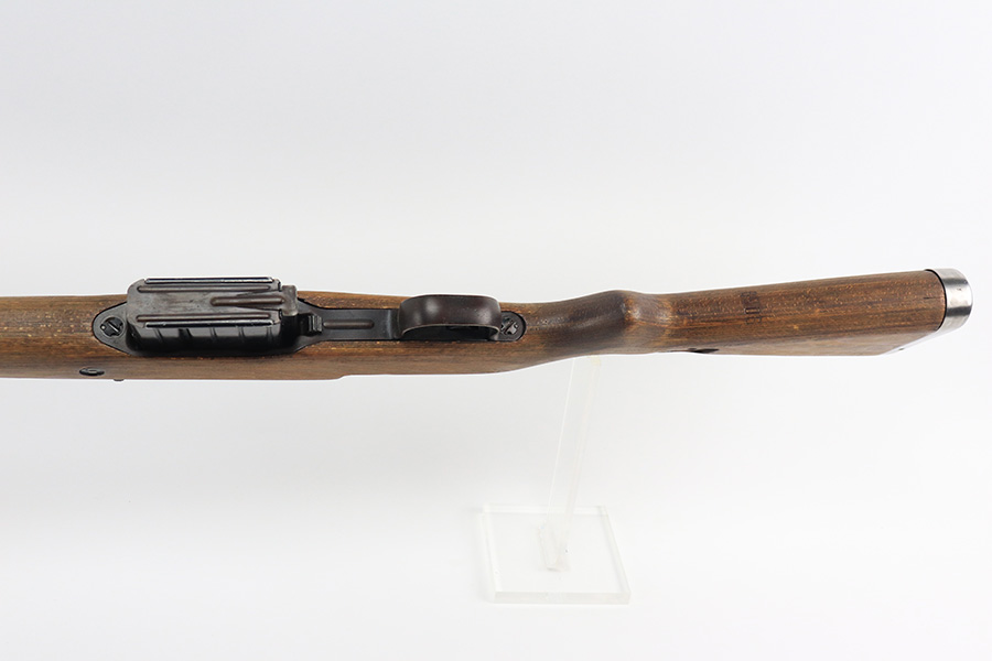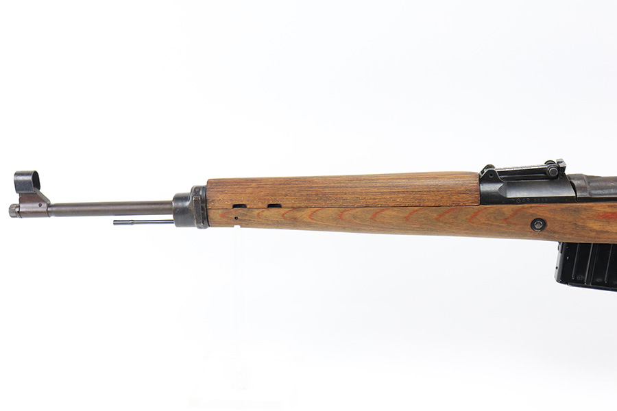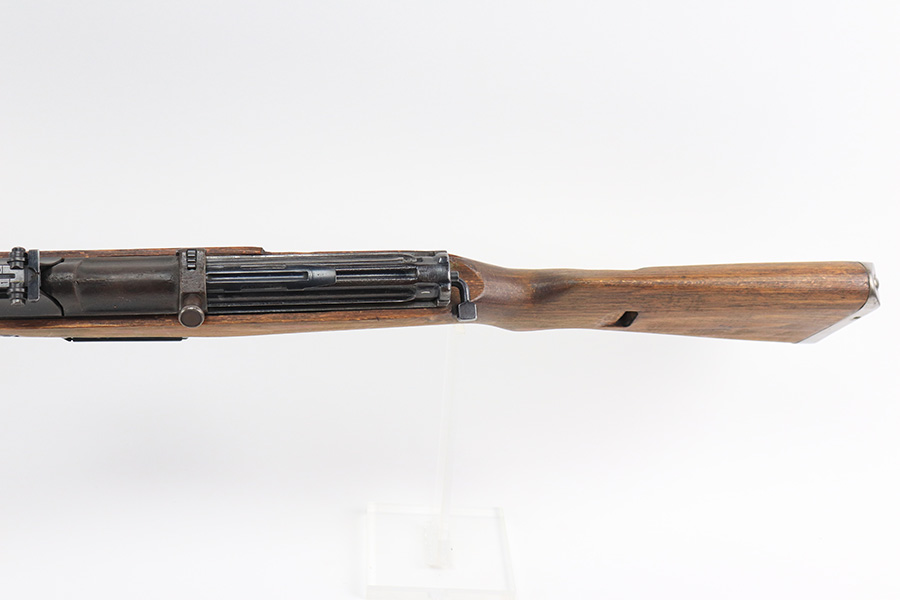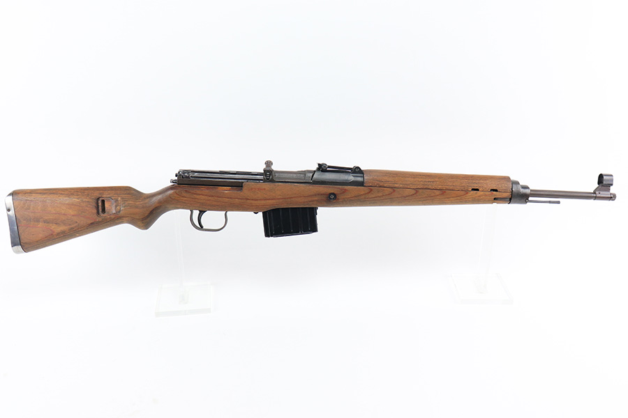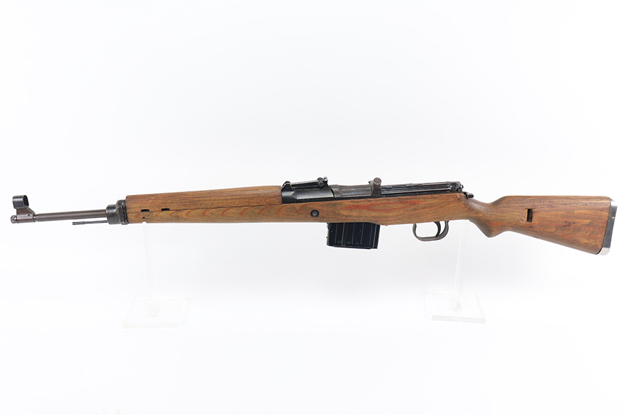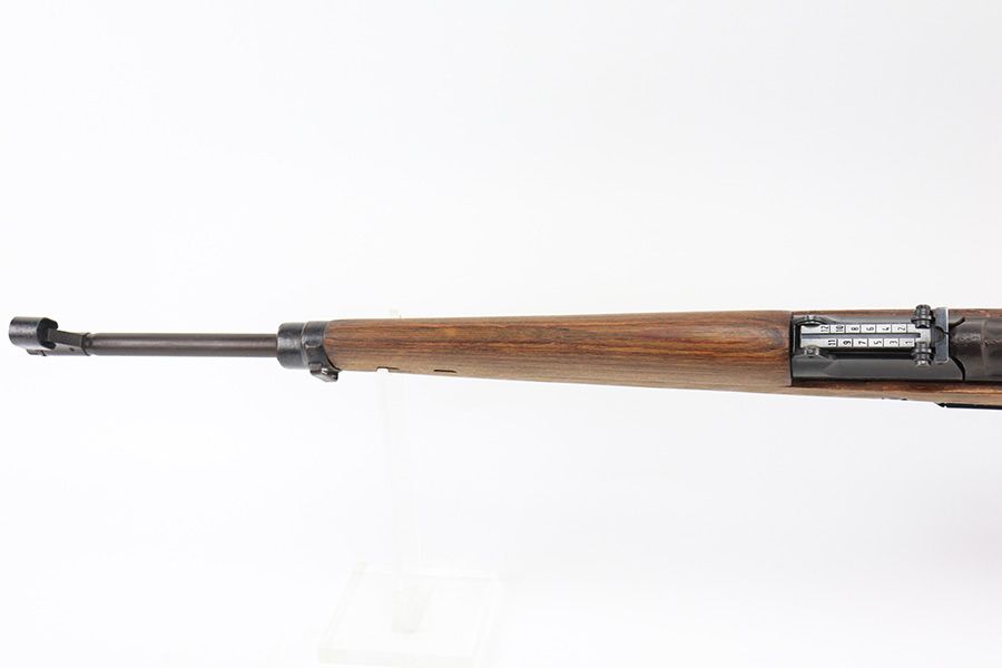 12/9/21 – This is an all matching and original Nazi G.43 rifle that was made in 1944 at the Walther factory. These are getting harder to find in all original configuration, and are one of our more highly requested rifles. Matching serials on bolt, receiver and stock. Waffenamt on right side of stock, though it is faint and may indicate the stock was sanded at some point. Nice finish on the metal parts throughout, but patina on the bolt, barrel and trigger guard. Original but painted magazine that is ‘gcb’ maker marked. Comes with cleaning rod and sight hood. Stock is in excellent condition. Strong, shiny bore.