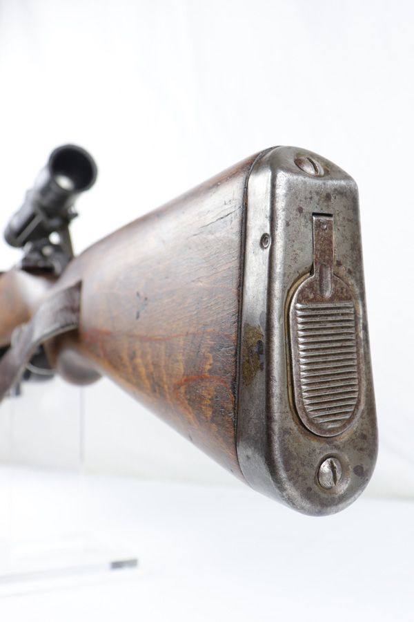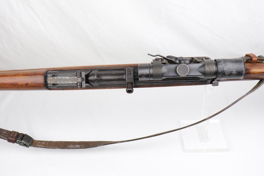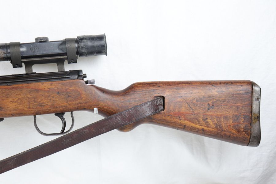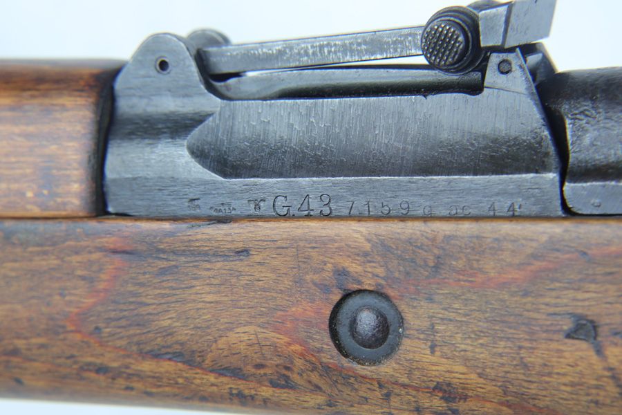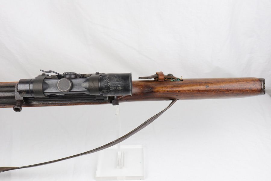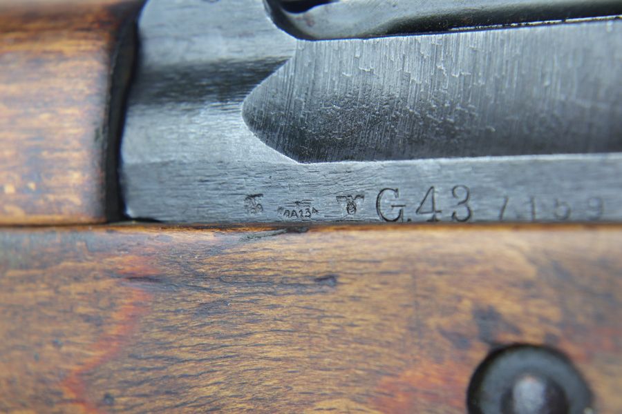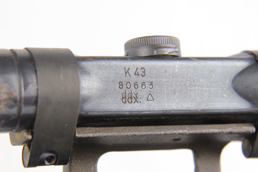 10/28/21 – This is a very nice Walther G43 sniper rifle, marked ac 44 on the receiver. All numbered parts are matching, including the stock. The rifle is all original and correct, with multiple proper waffen proofs on the stock, receiver and scope mount. Rifle has proper cleaning rod and site hood present. Original magazine is K43 marked with maker ‘aye’ and WaA843 markings on left side. The mount is original and has Walther WaA359 proofs. Scope is WW2 original, with nice, clear optics. Marked K43, then ddx. The stock is in very good, original condition no major cracks or chips, and has never been sanded. It is clearly serialized to the gun and has a strong waffen stamp. The bore has strong rifling with only minor frosting. The butt stock is empty. Original sling. No import marks.