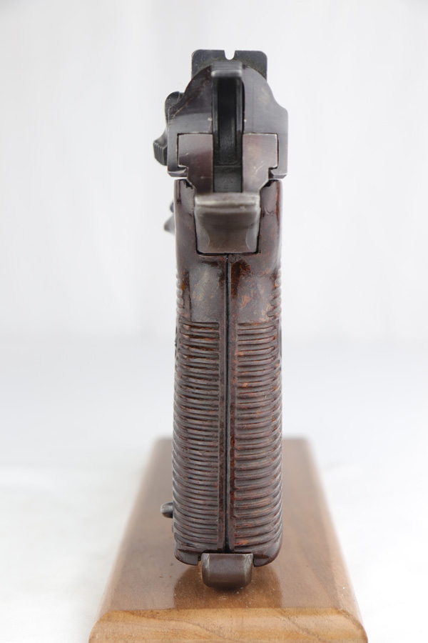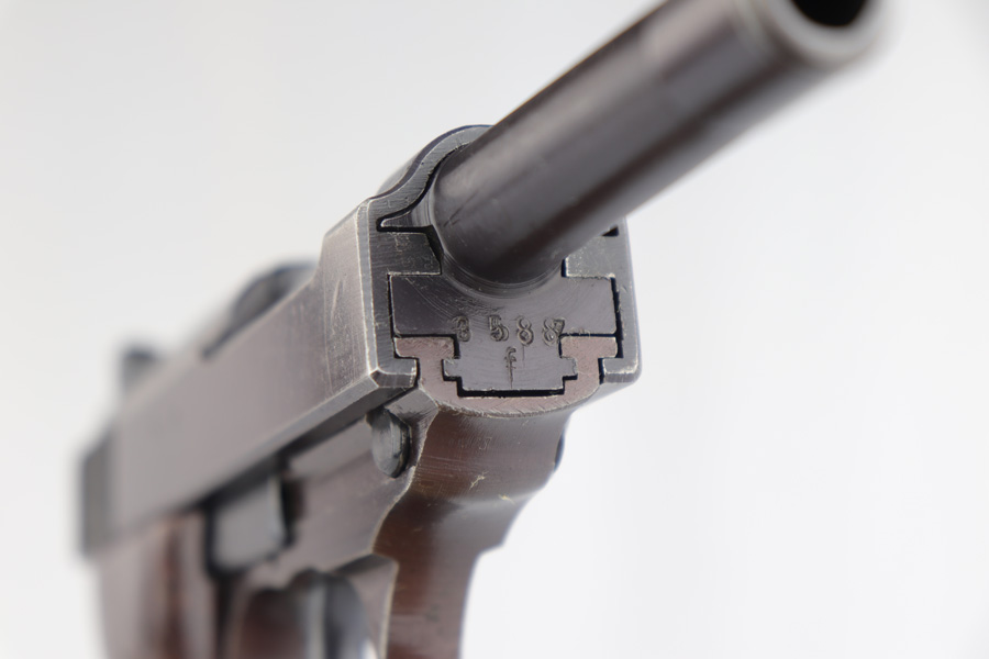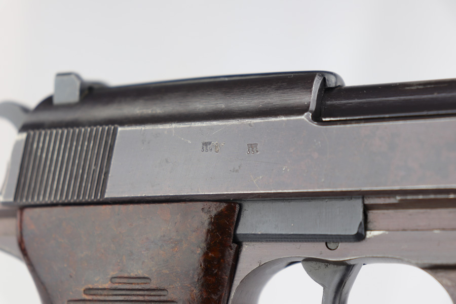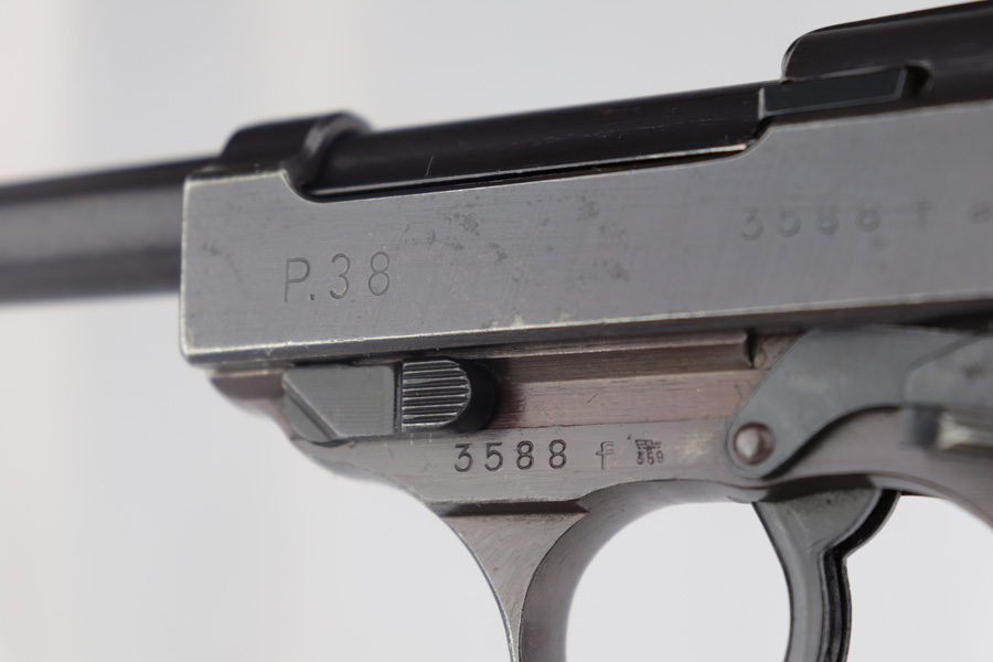 4/3/19 – This is a very nice Walther P.38 from June of 1944. It is all matching and original with about 95% blue remaining, showing minimal wear in the profile view but some thinning of the front strap. Frame has a nice plum hue to it. Excellent bore and grips. Walther magazine.