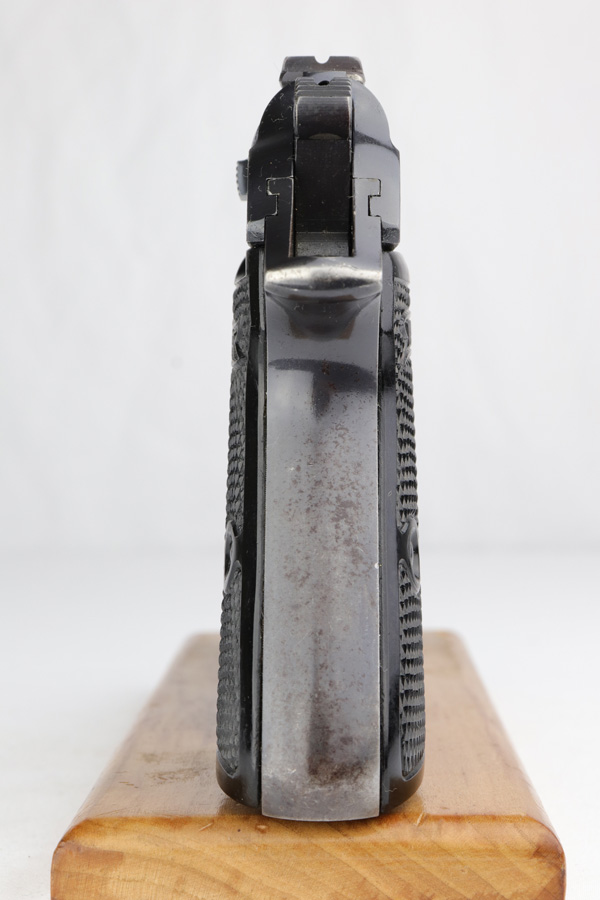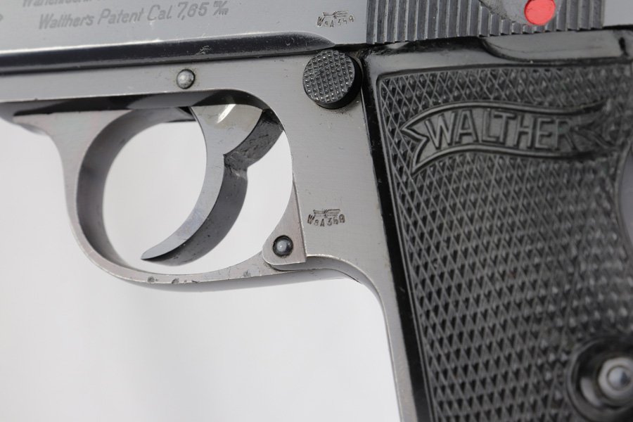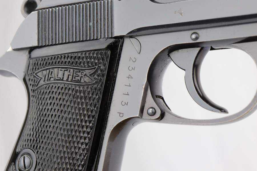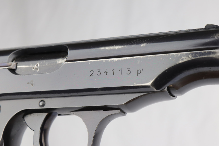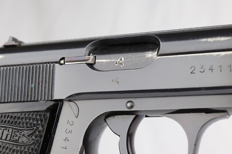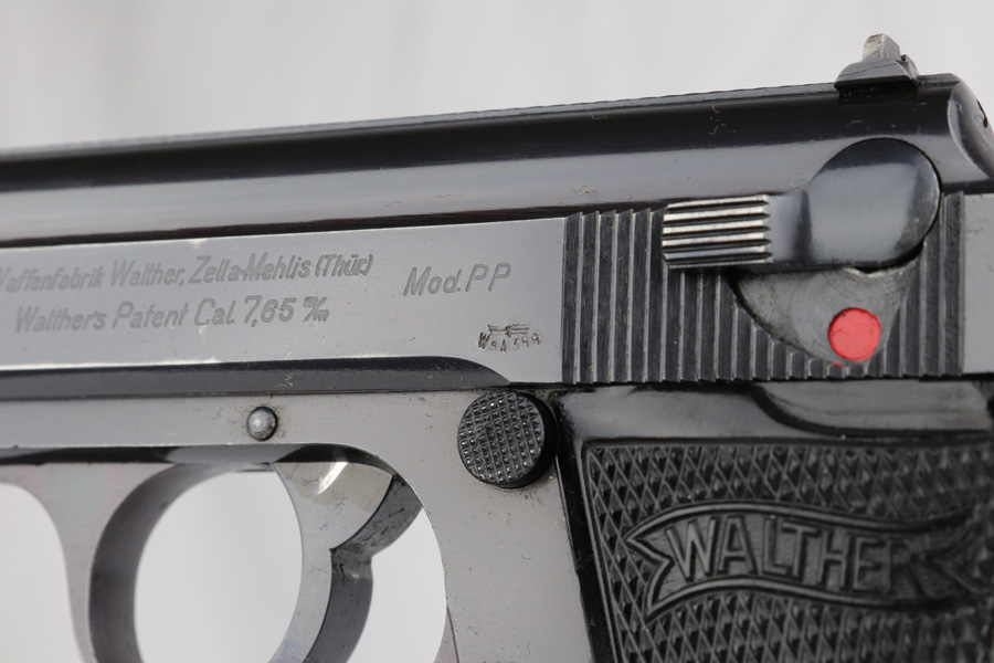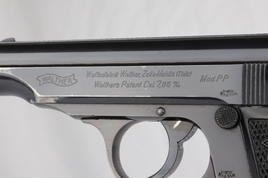 3/12/19 – This is a Luftwaffe contract Walther PP from ~1941. These are distinct in that they are in that they are waffen proofed on the slide and frame, feature high-polish blue and their magazines are numbered on the base plate. They were issued with two numbered magazines, but this one only comes with one numbered magazine “226662” (correct production range, but not matching). The magazine is original but fits tight within the magazine well. The original finish covers about 90-93% of the gun with most of the wear found on the left side of the slide and bottom of the back strap. The gun has matching frame and slide with eagle/N proofs on the slide, barrel and ejection port. Mechanically it is in good condition and has an excellent, shiny bore.