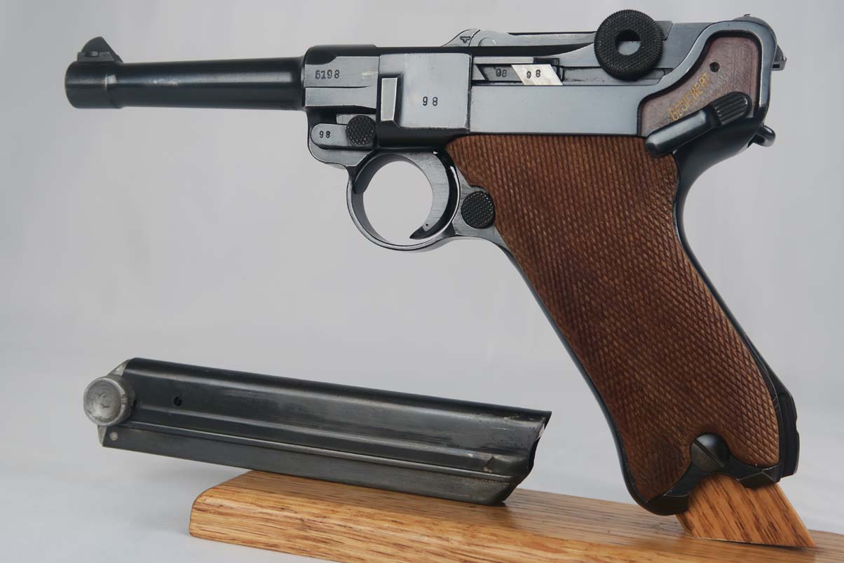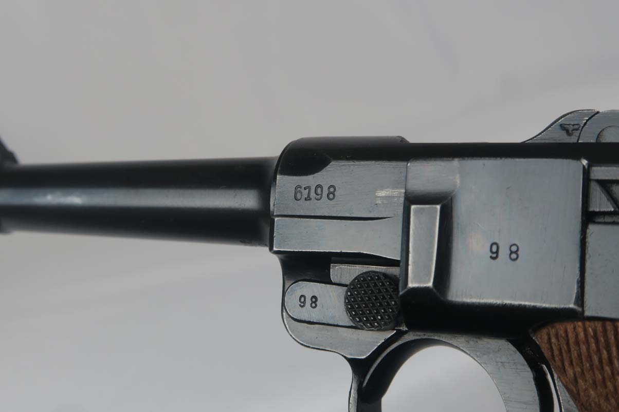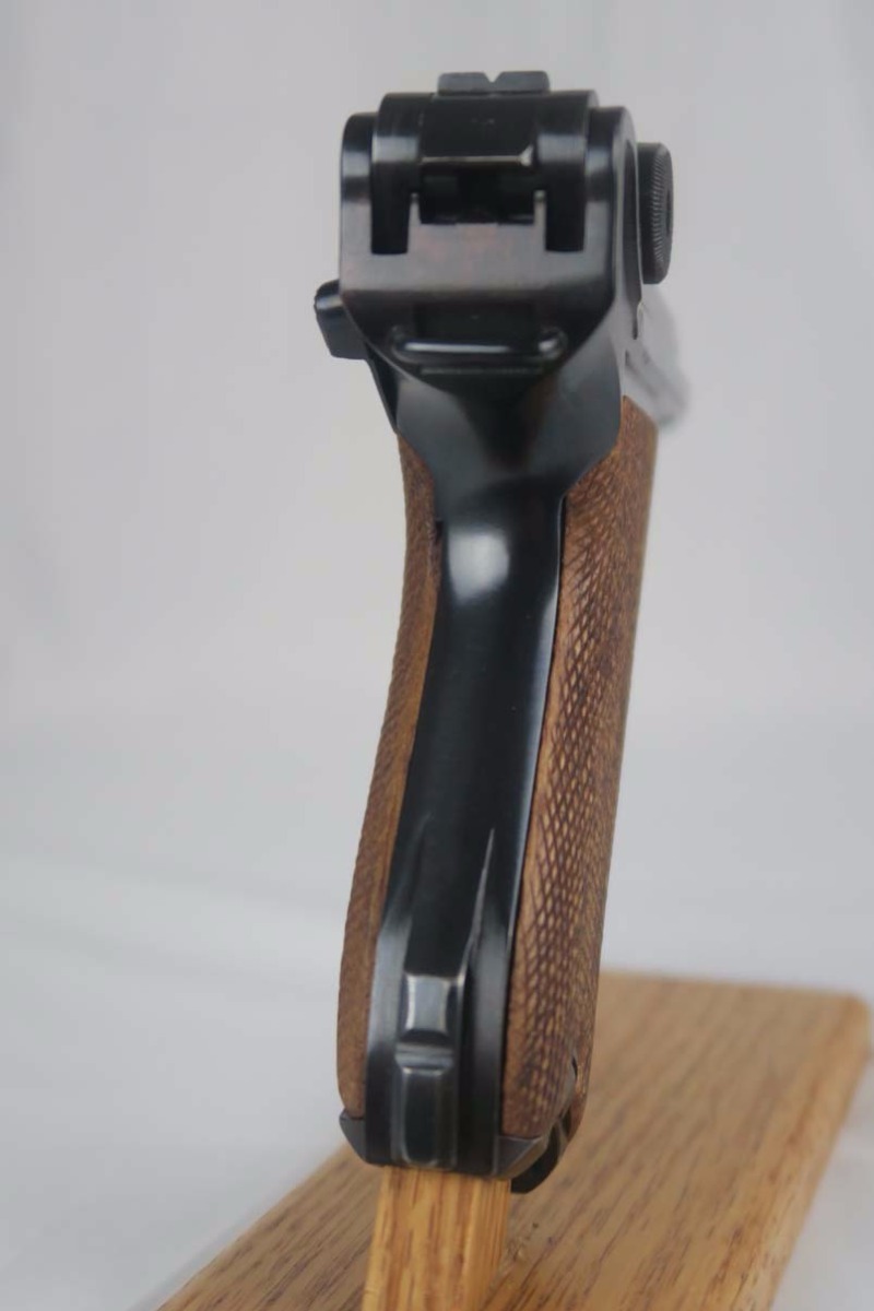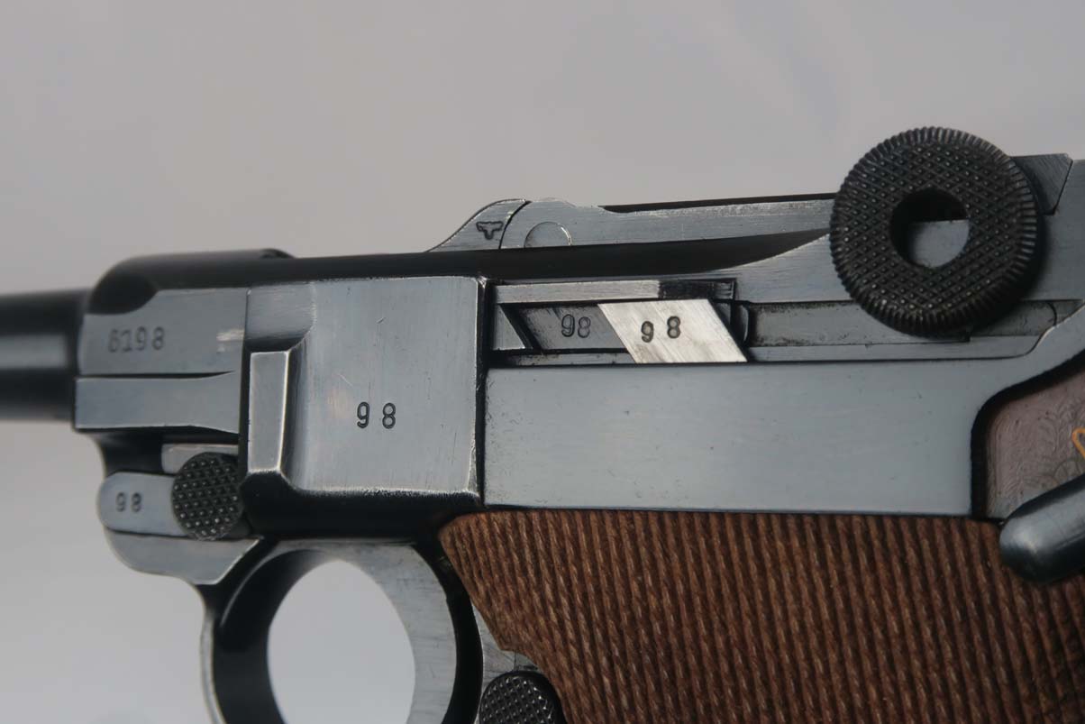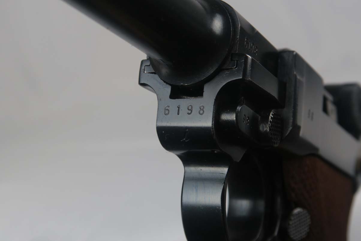 3/6/17 – This is a Nazi luger from 1940. Marked with the 41 Code which indicated it was made by Mauser. All of the numbers on this gun match, including all small parts, the grips and the magazine. The condition of the finish is excellent and I would rate in the 98% range. The grip straps are especially nice being a beautiful dark blue. This gun is not refinished or touched up. The grips are also a beautiful light wood and numbered as well as Eagle 655 proofed to match the gun. The bore is strong but a little cloudy. On a scale from 1 to 10, I would give it a 7. Mechanically excellent. An excellent example of a Nazi wartime military luger!