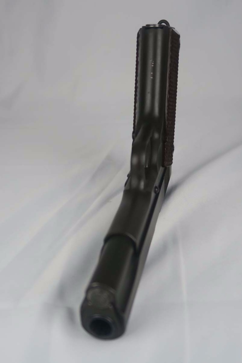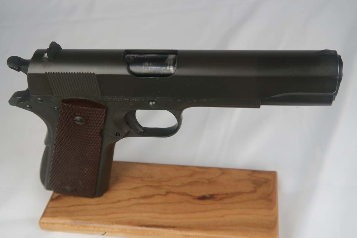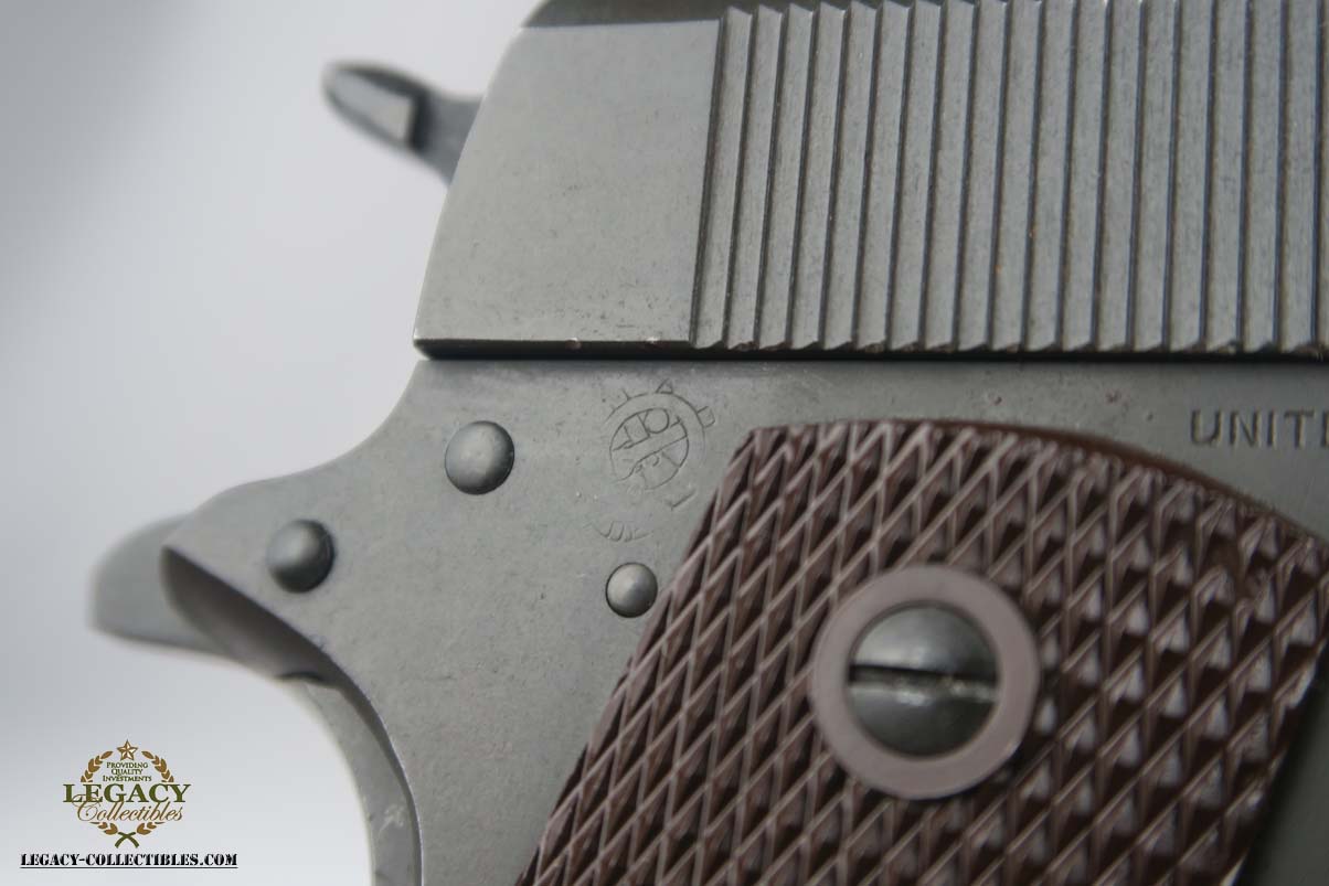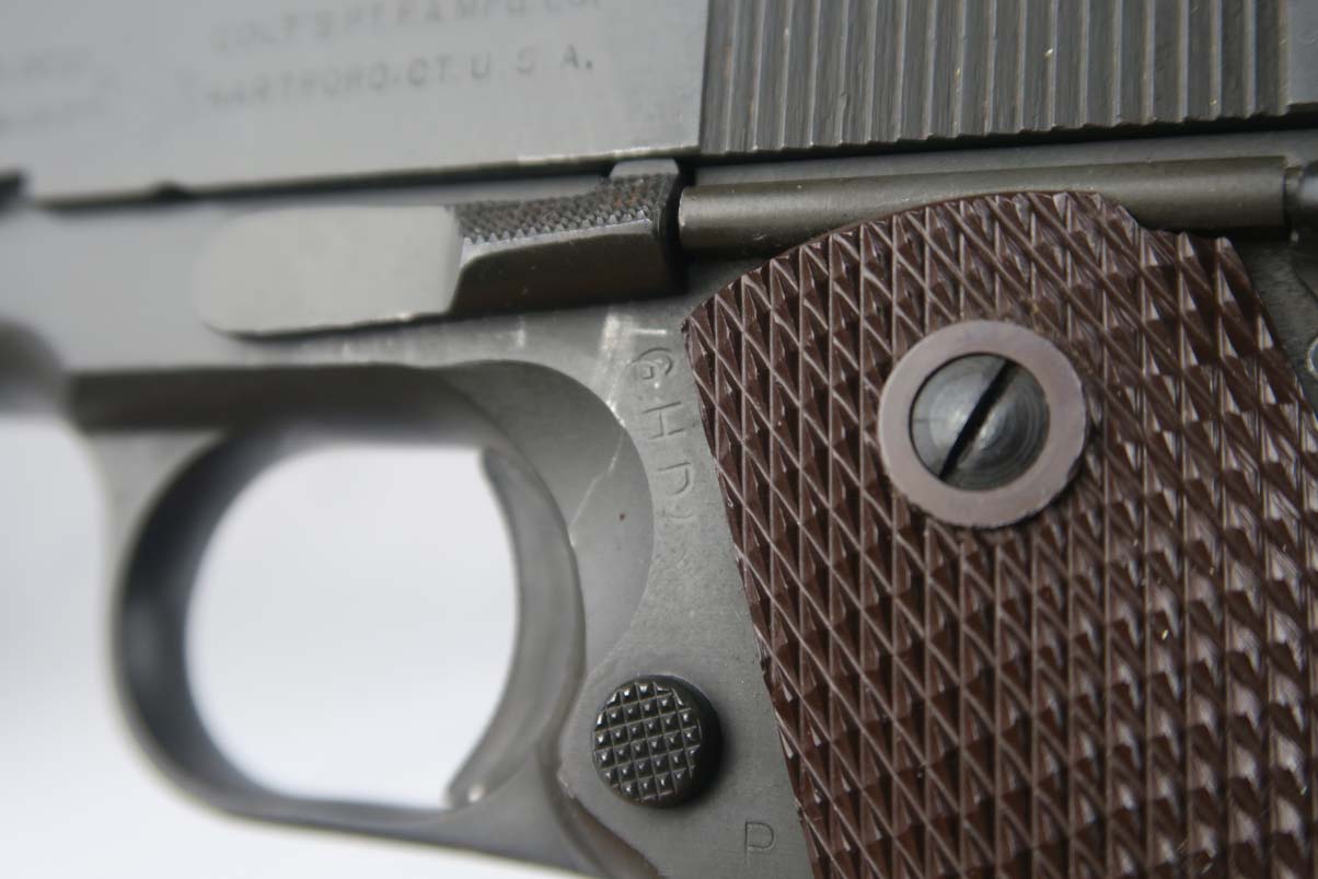 3/8/17 – This is a WWII era Colt M1911A1, dated to a 1944 year of manufacture by serial.  If it weren’t for the couple of dings on the front strap, I would be calling this a mint-condition pistol – it’s gorgeous.  It is properly proofed, including the GHD inspectors mark, P on frame and slide, and crossed cannons cartouche on right side of the frame.  The barrel is also correctly marked for this date (P, Colt .45 auto).  ‘L’ marked magazine and minty grips.  The bore is in very good shape, with just a little frosting but would shoot fine.  Overall, an excellent WWII example for a Colt 1911.